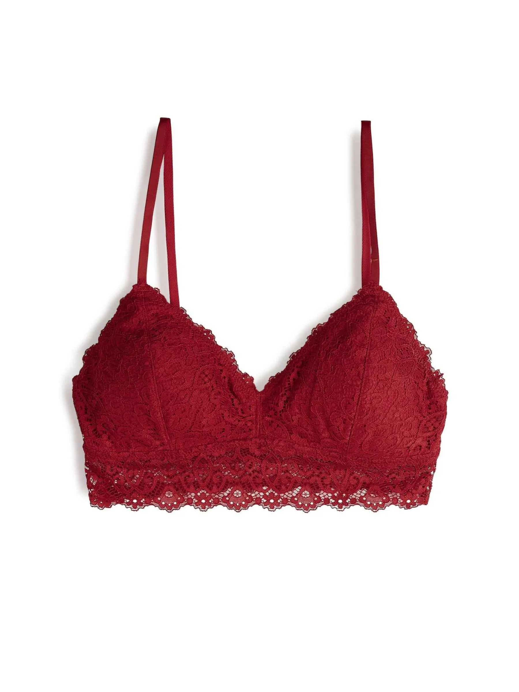 Kolor: burgundyKrój: braletkaTyp: biustonoszPattern style: pojedynczy kolorDetal: wyjmowane wkładkiMateriał: koronkow…