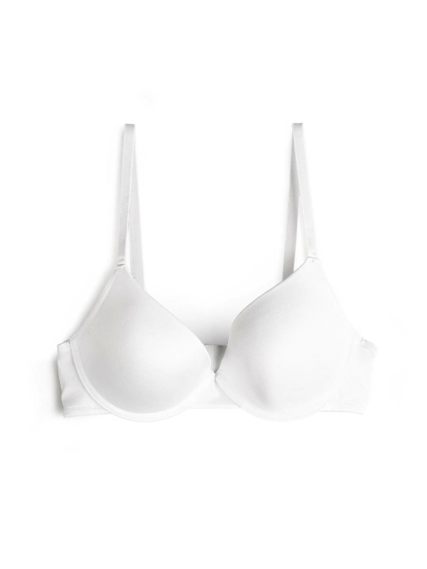 Kolor: białyKrój: plungeTyp: biustonoszPattern style: pojedynczy kolorDetal: z kośćmi, wzmocnionyMateriał: syntetyc…