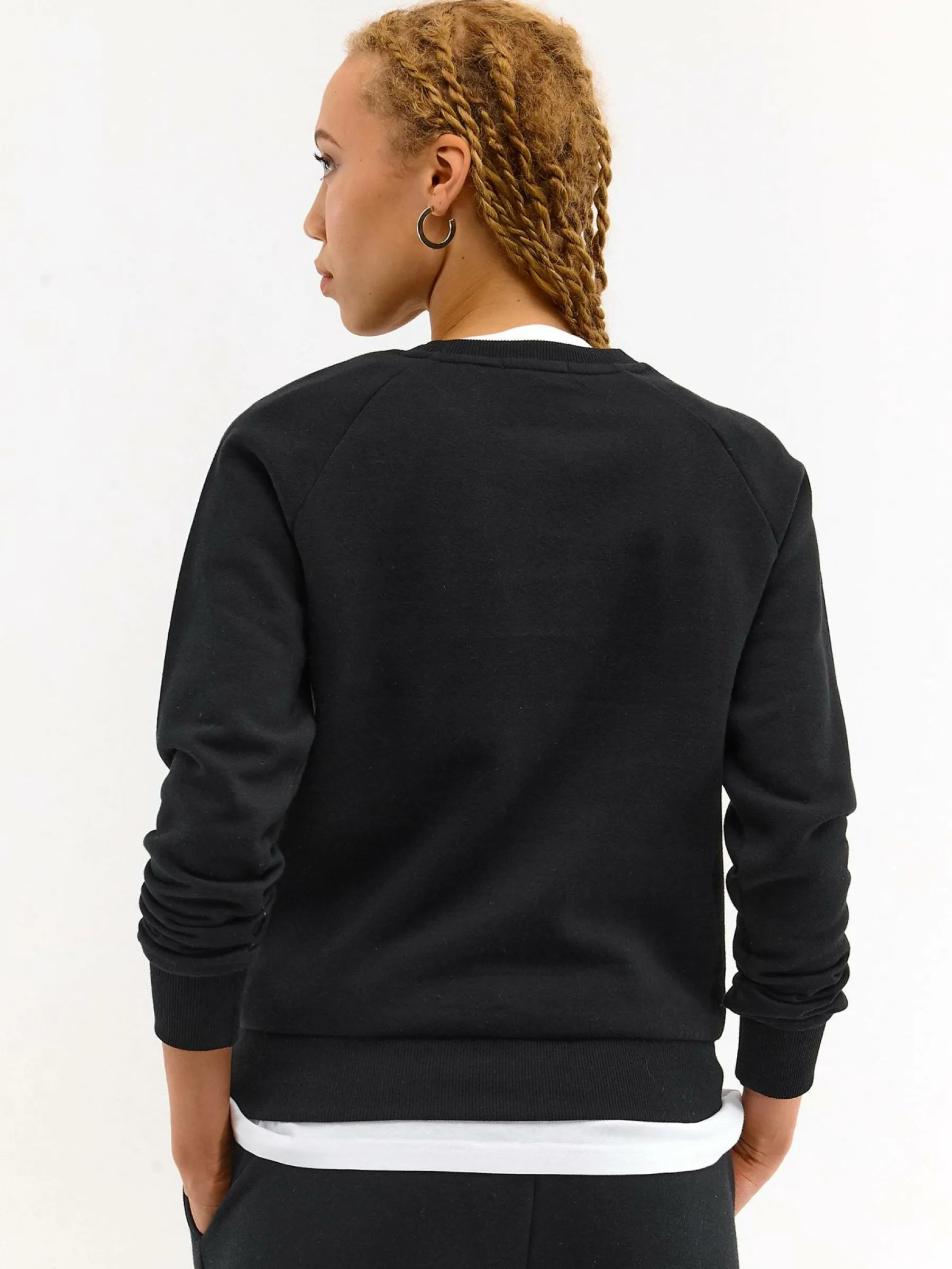 Kolor: czarnyKrój: regularTyp: bluzaRekaw: rękaw raglanowy, długi rękawDługość: krótkiPattern style: pojedynczy …