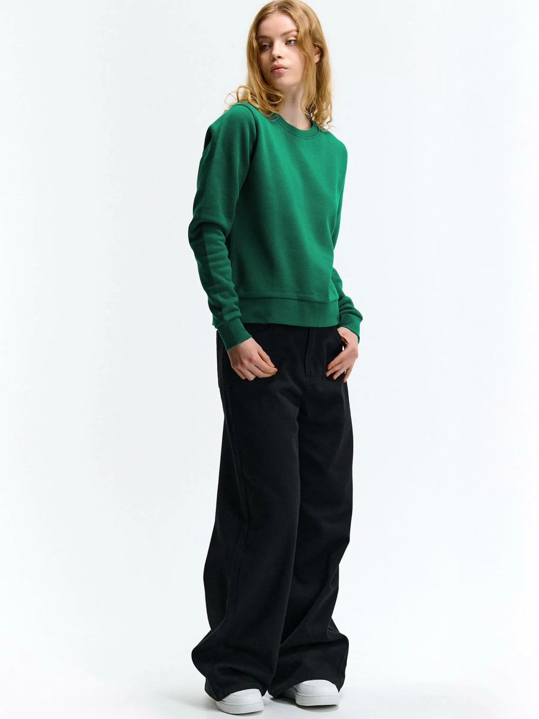 Kolor: zielonyKrój: regularTyp: bluzaRekaw: długi rękawDługość: krótkiPattern style: pojedynczy kolorDetal: nad g…