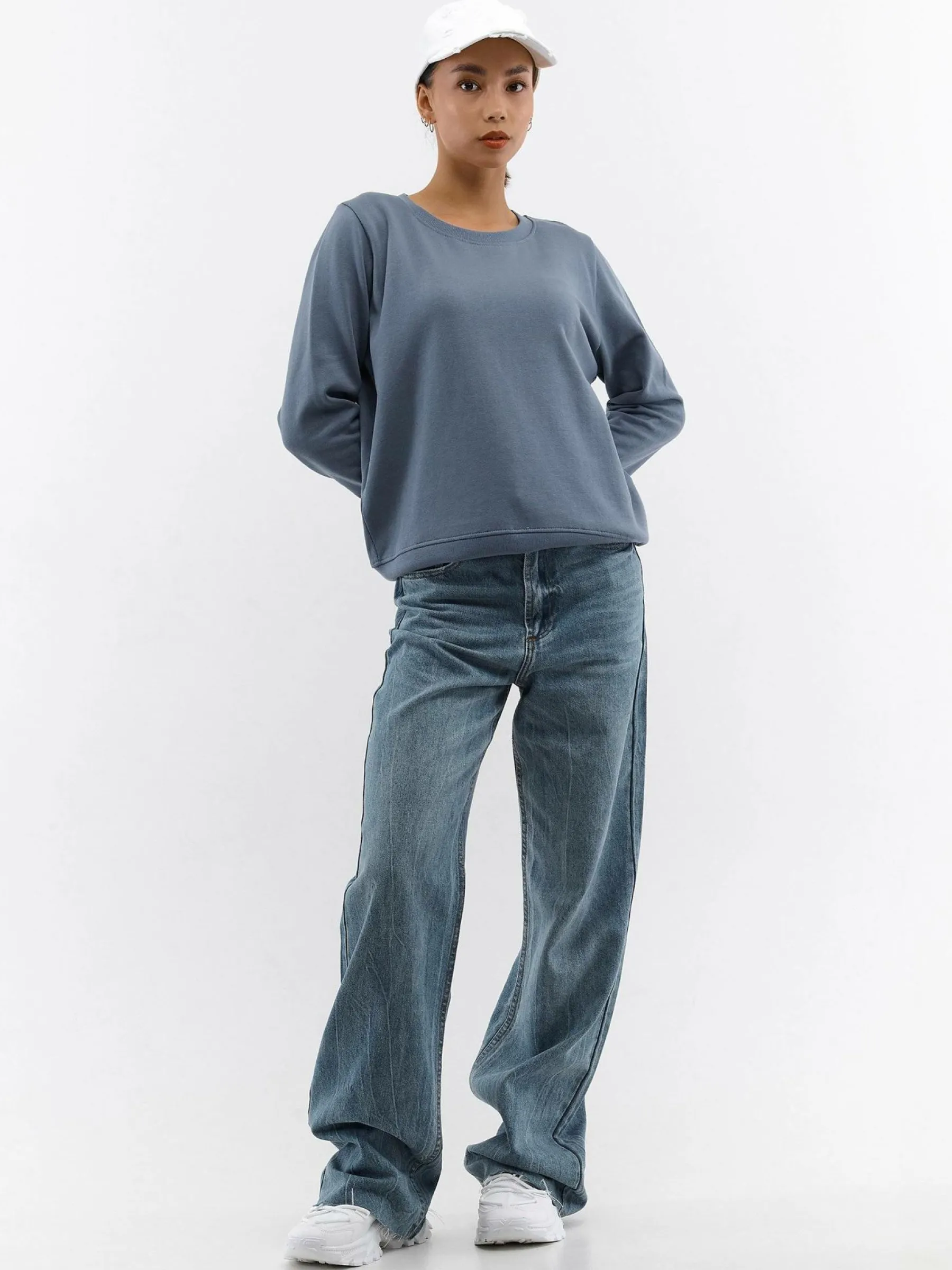 Kolor: niebieskiKrój: regularTyp: bluzaRekaw: długi rękawDługość: krótkiPattern style: pojedynczy kolorDetal: nad…