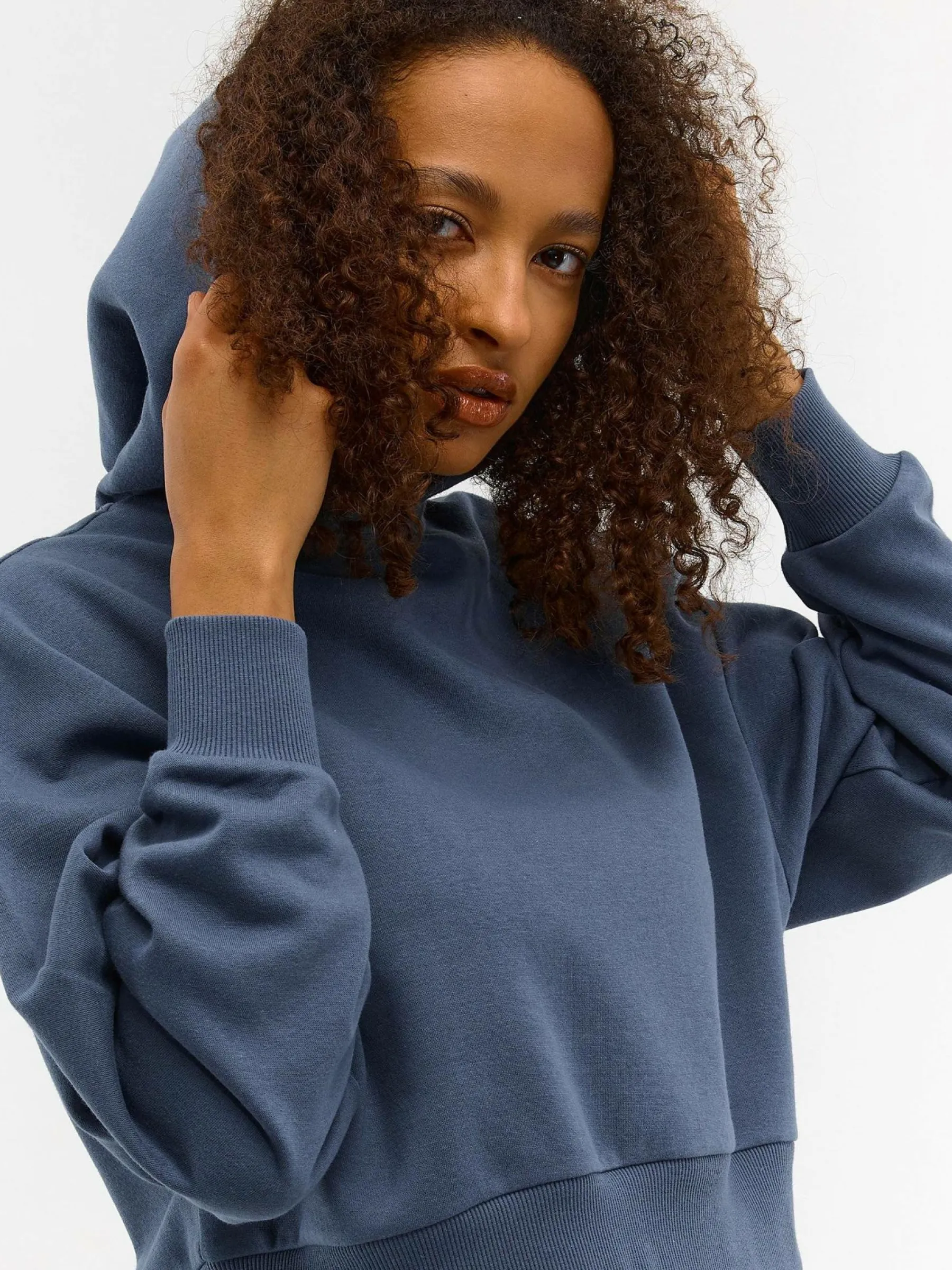 Kolor: niebieskiKrój: podstawowy, oversizedTyp: bluzaRekaw: długi rękawDługość: krótkiPattern style: pojedynczy k…