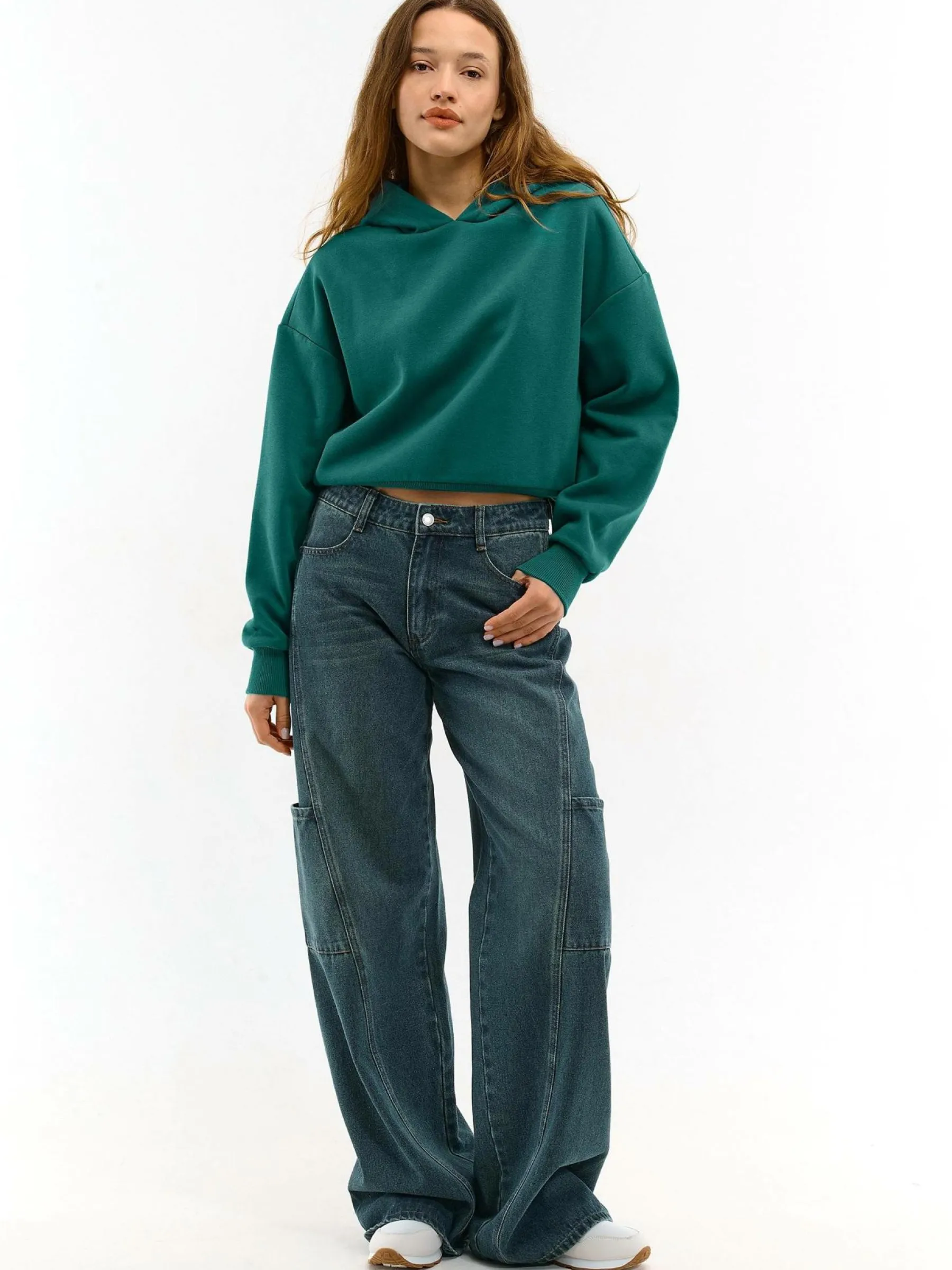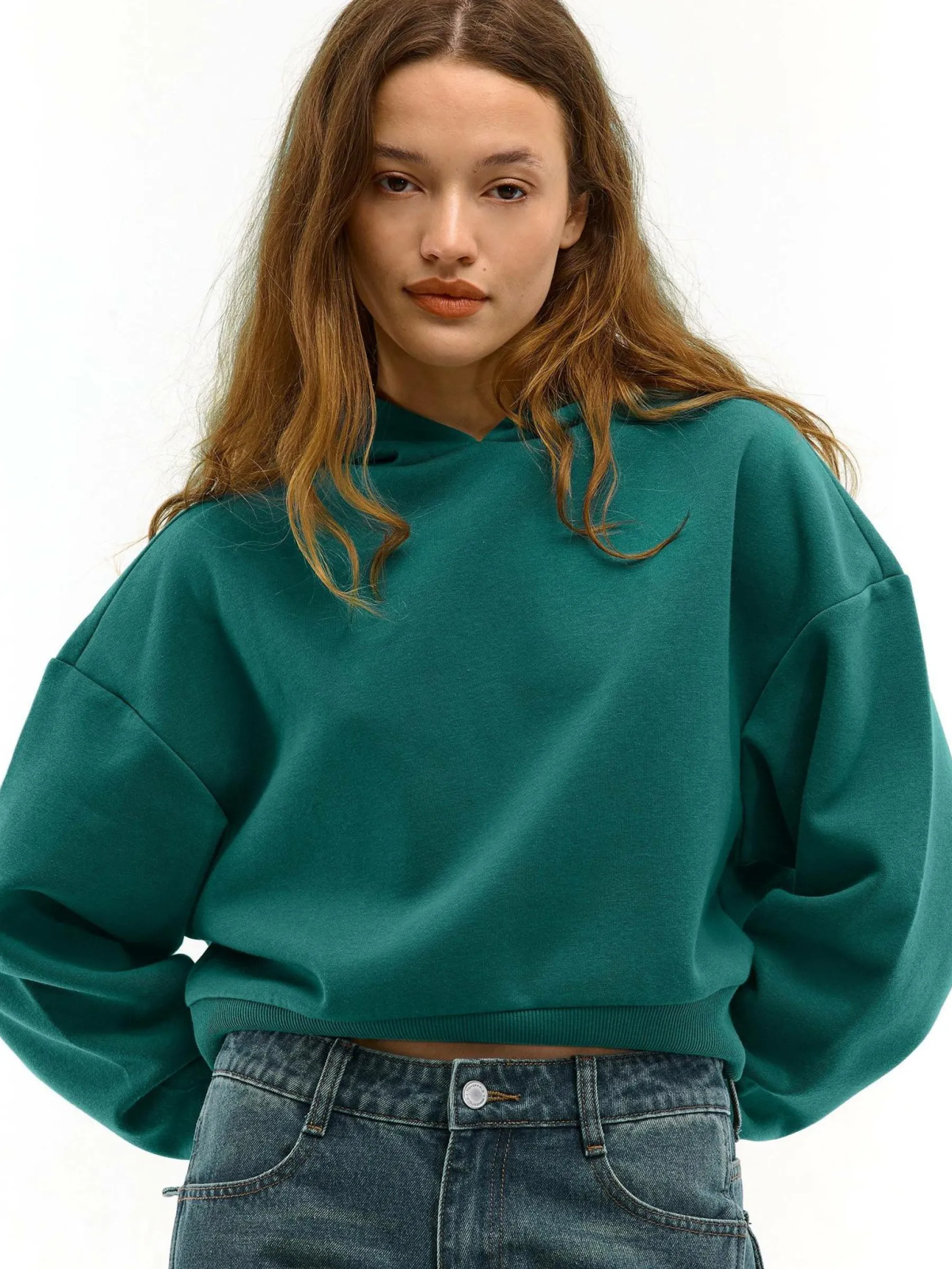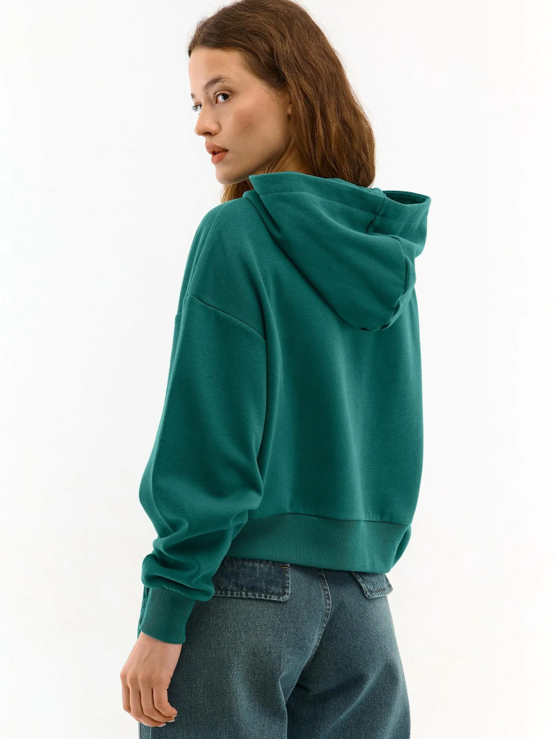 Kolor: zielonyKrój: podstawowy, oversizedTyp: bluzaRekaw: długi rękawDługość: krótkiPattern style: pojedynczy kol…