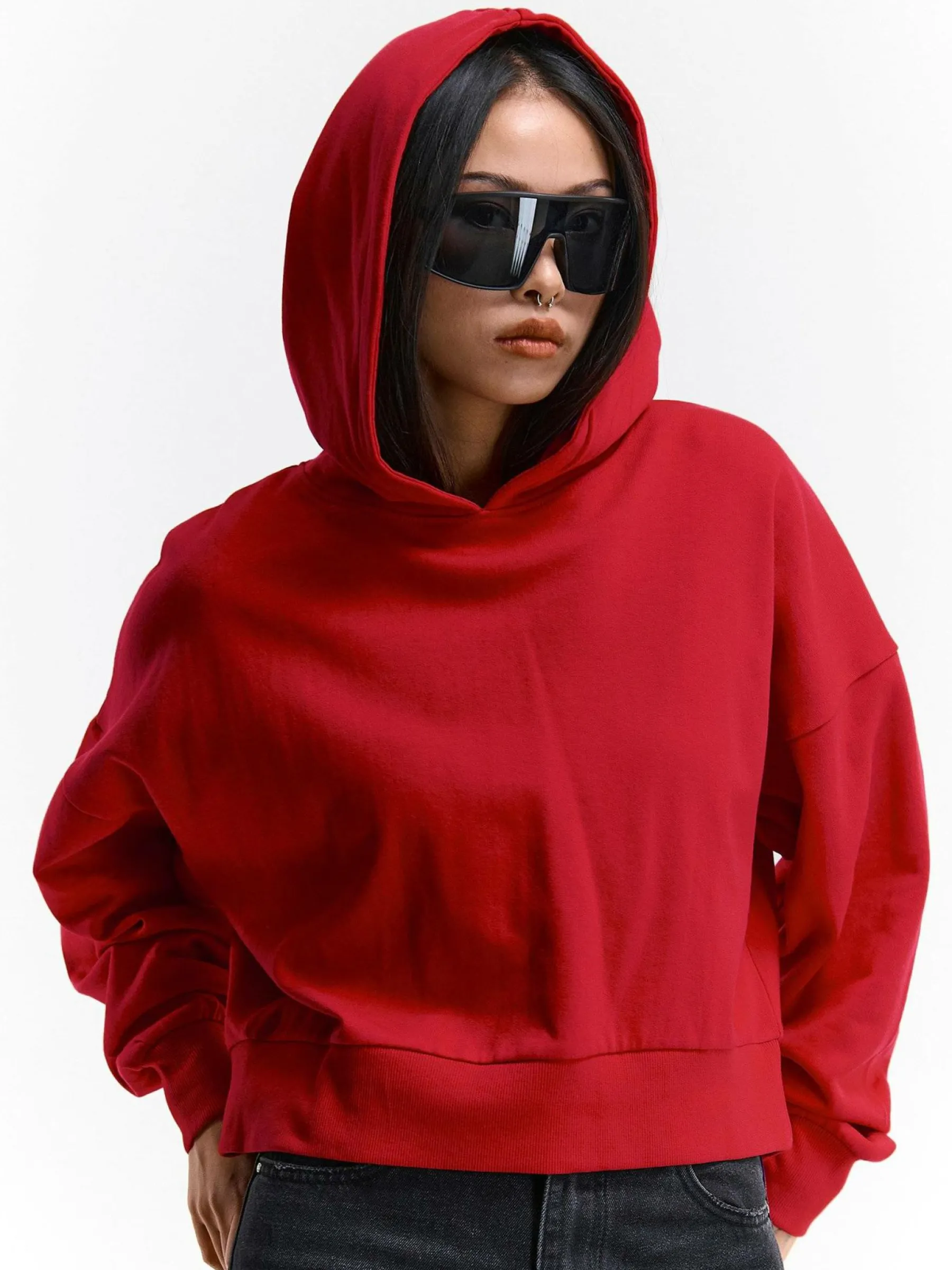 Kolor: czerwonyKrój: regularTyp: bluzaRekaw: długi rękawDługość: krótki topPattern style: pojedynczy kolorDetal: …