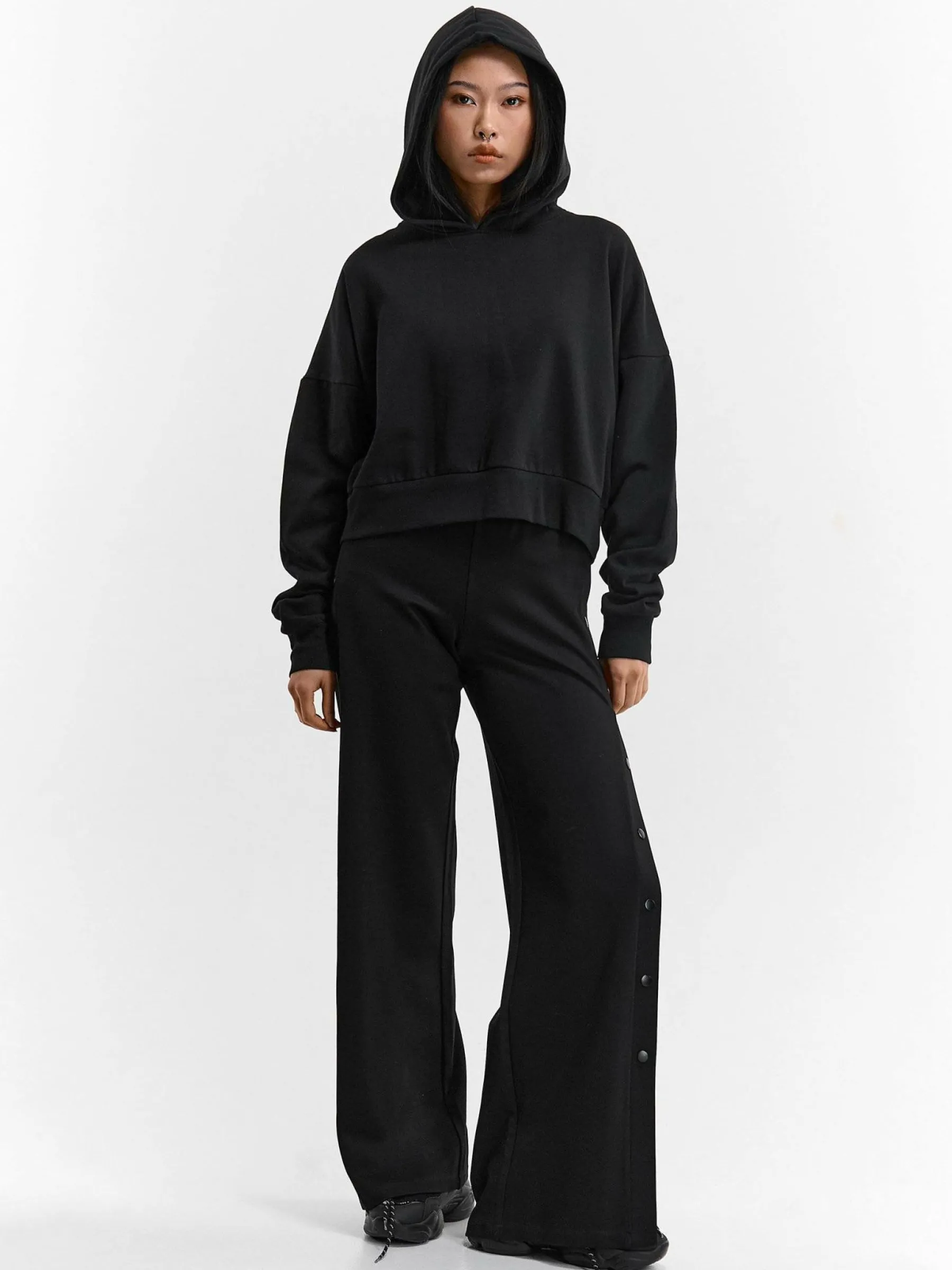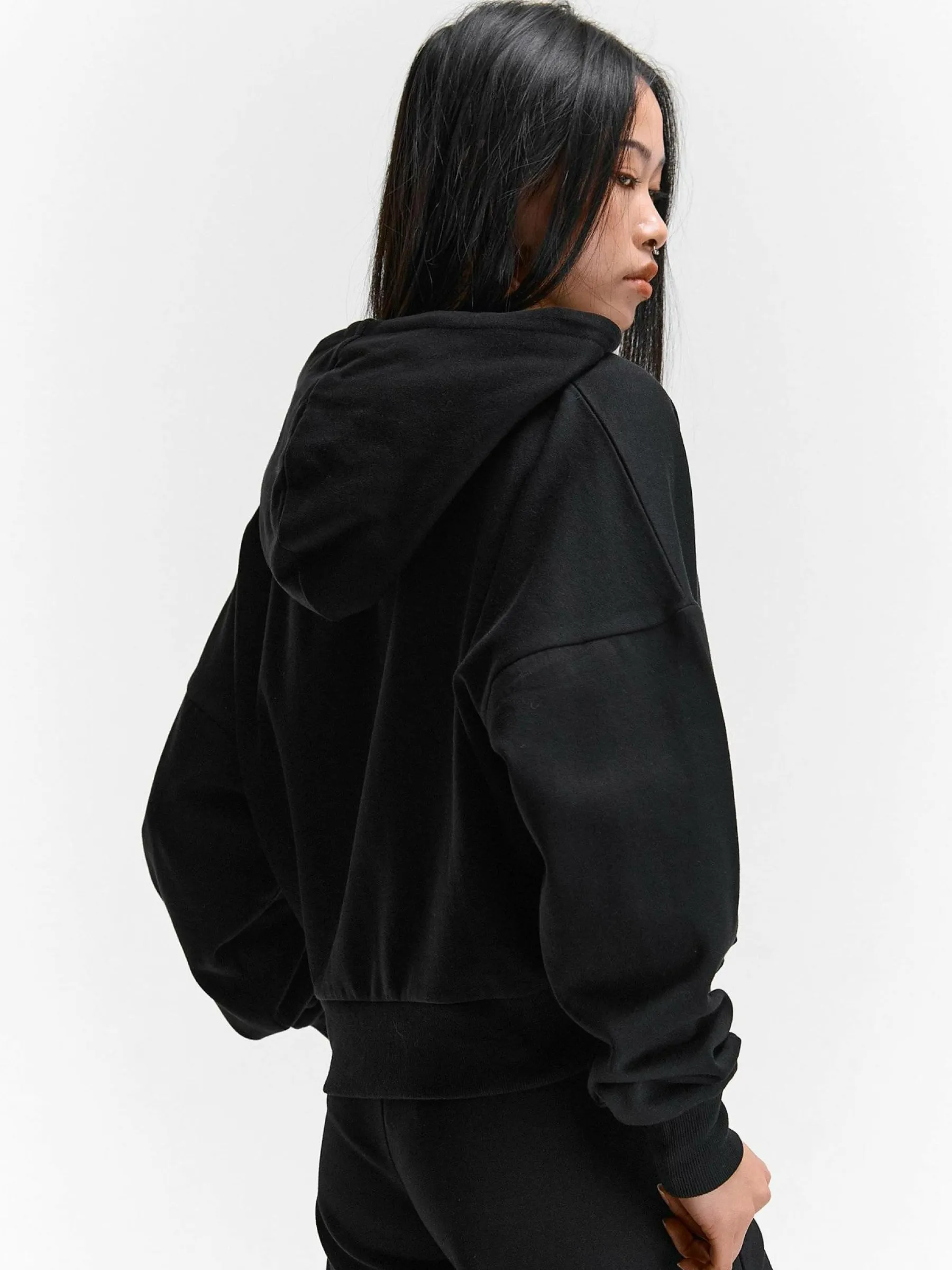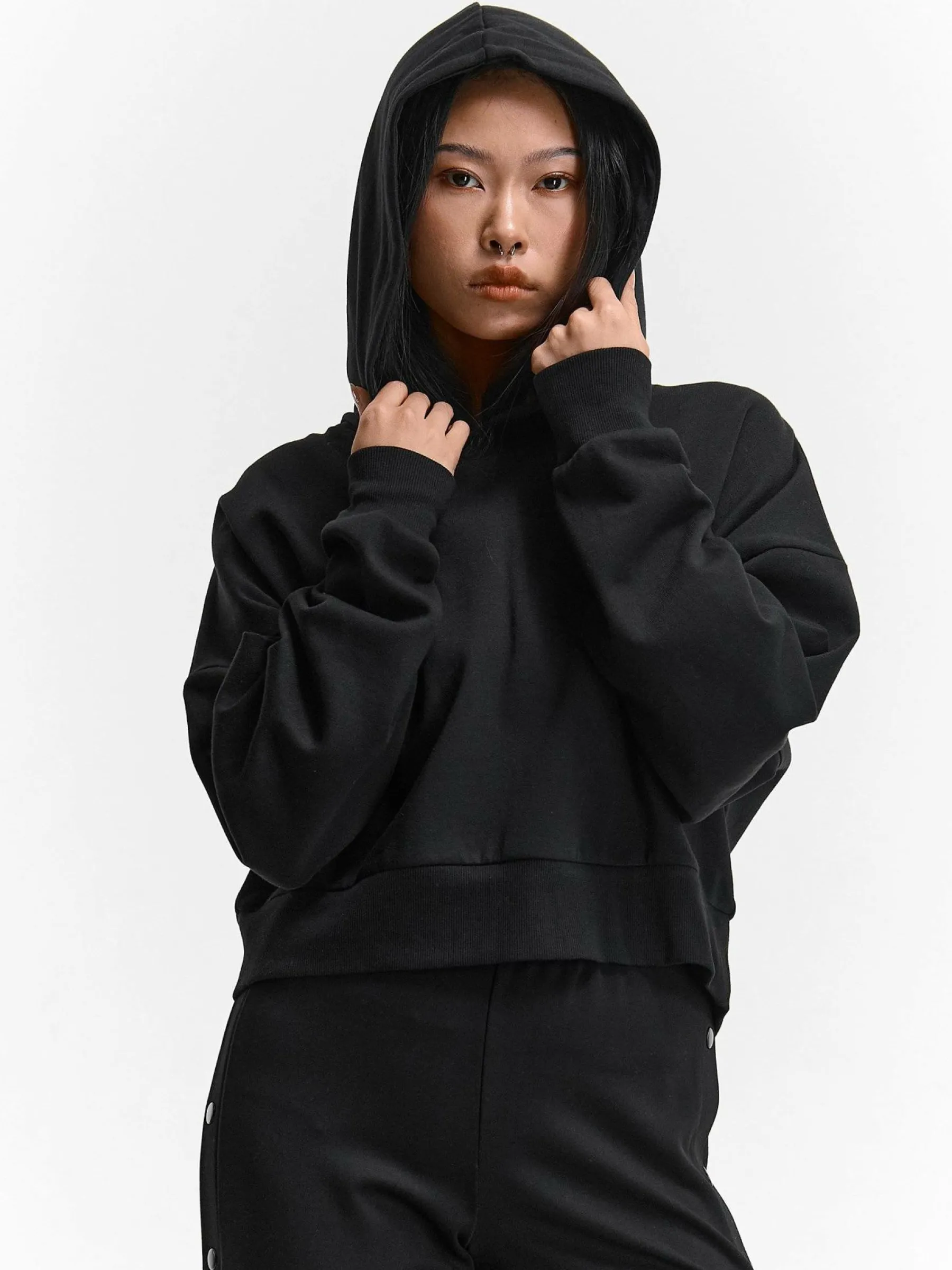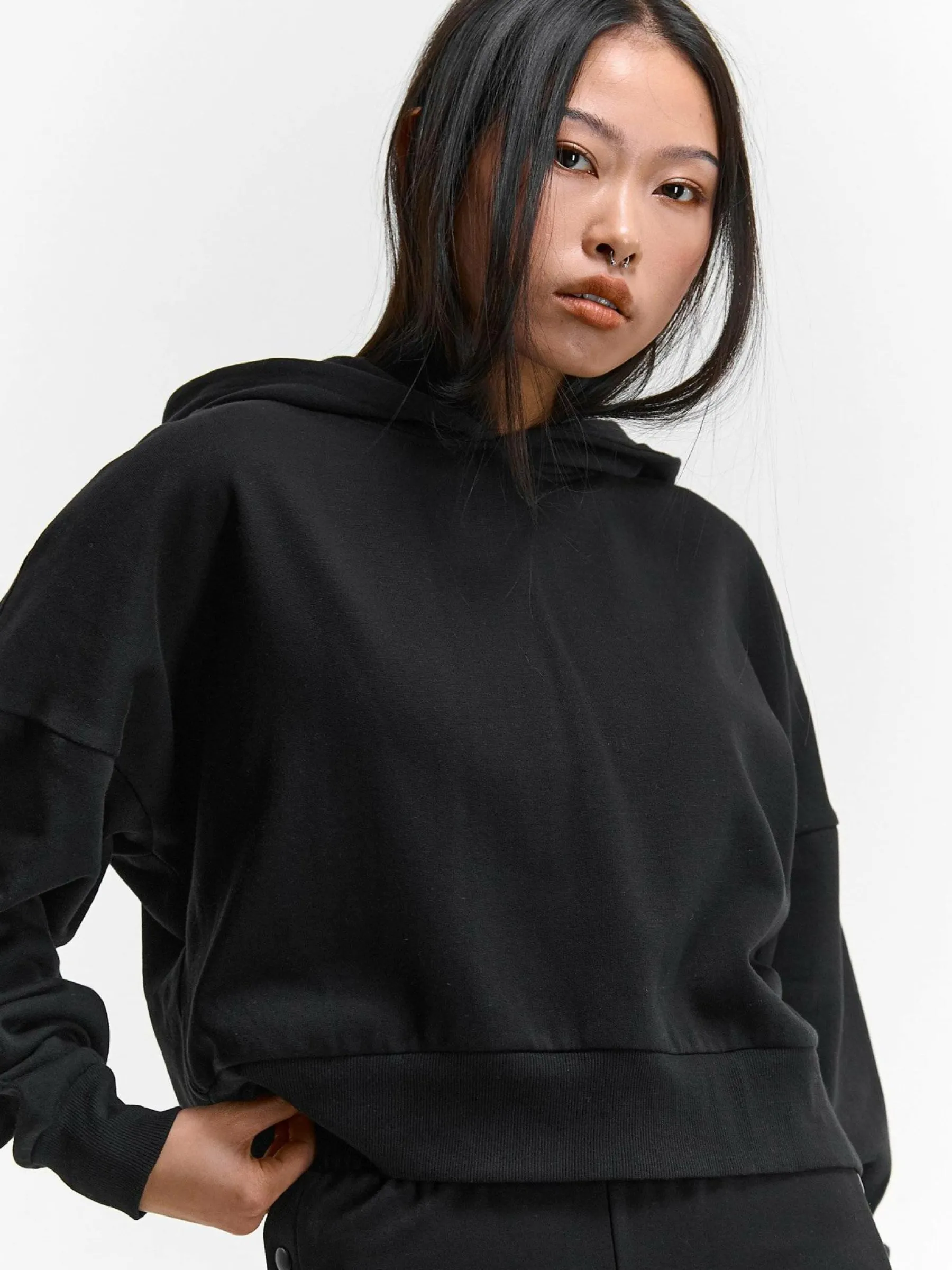 Kolor: czarnyKrój: regularTyp: bluzaRekaw: długi rękawDługość: krótki topPattern style: pojedynczy kolorDetal: bl…