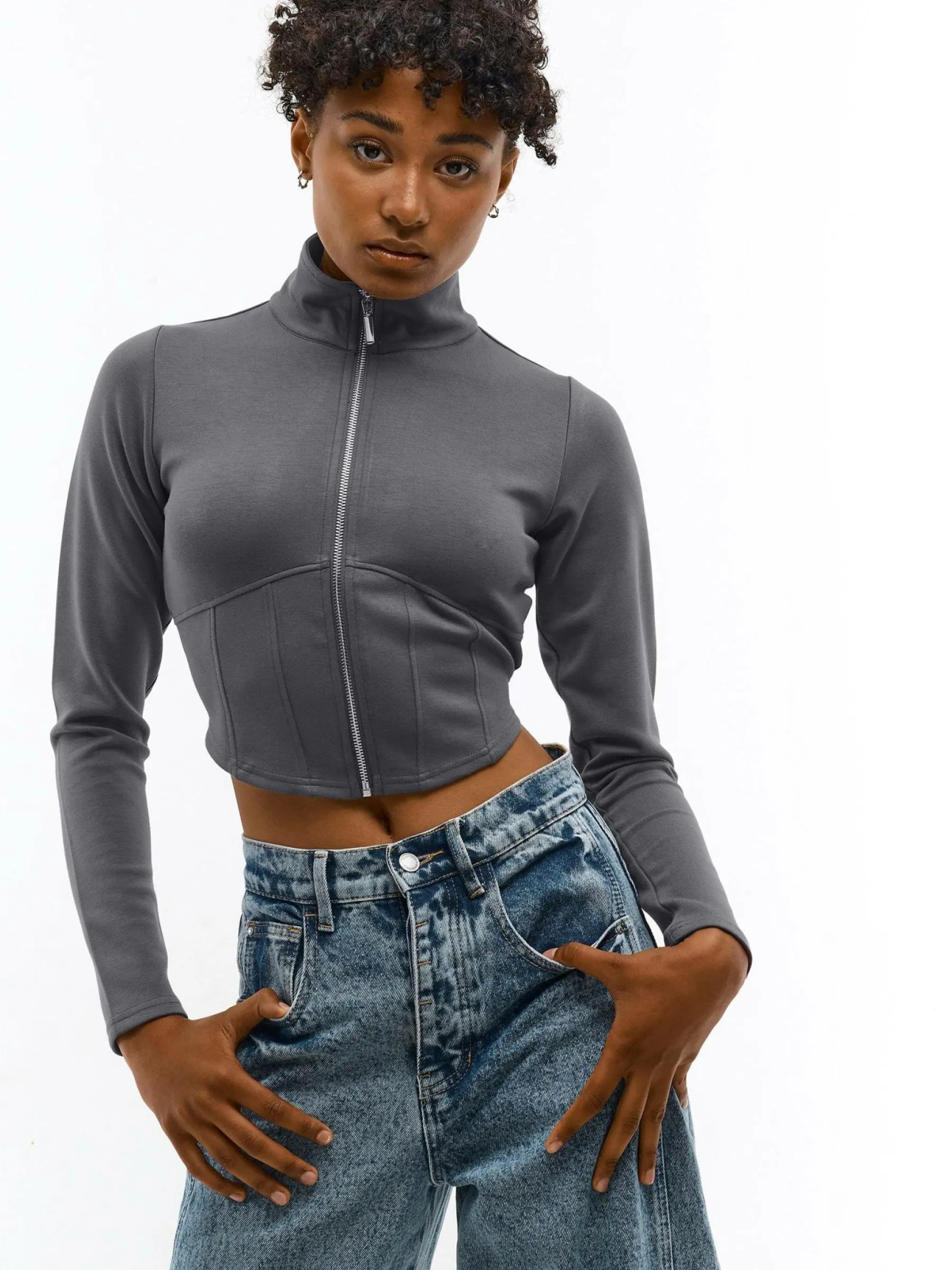 Kolor: szaryKrój: asymetryczneTyp: bluzaRekaw: długi rękawDługość: krótki topPattern style: pojedynczy kolorDetal…