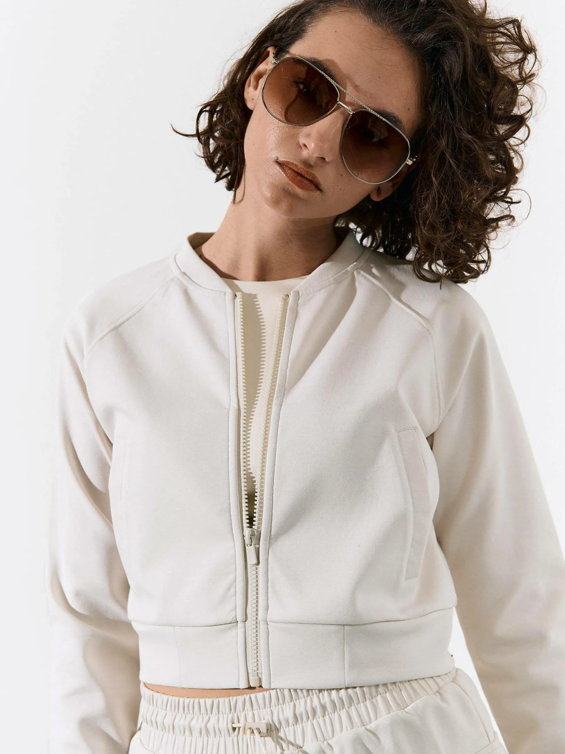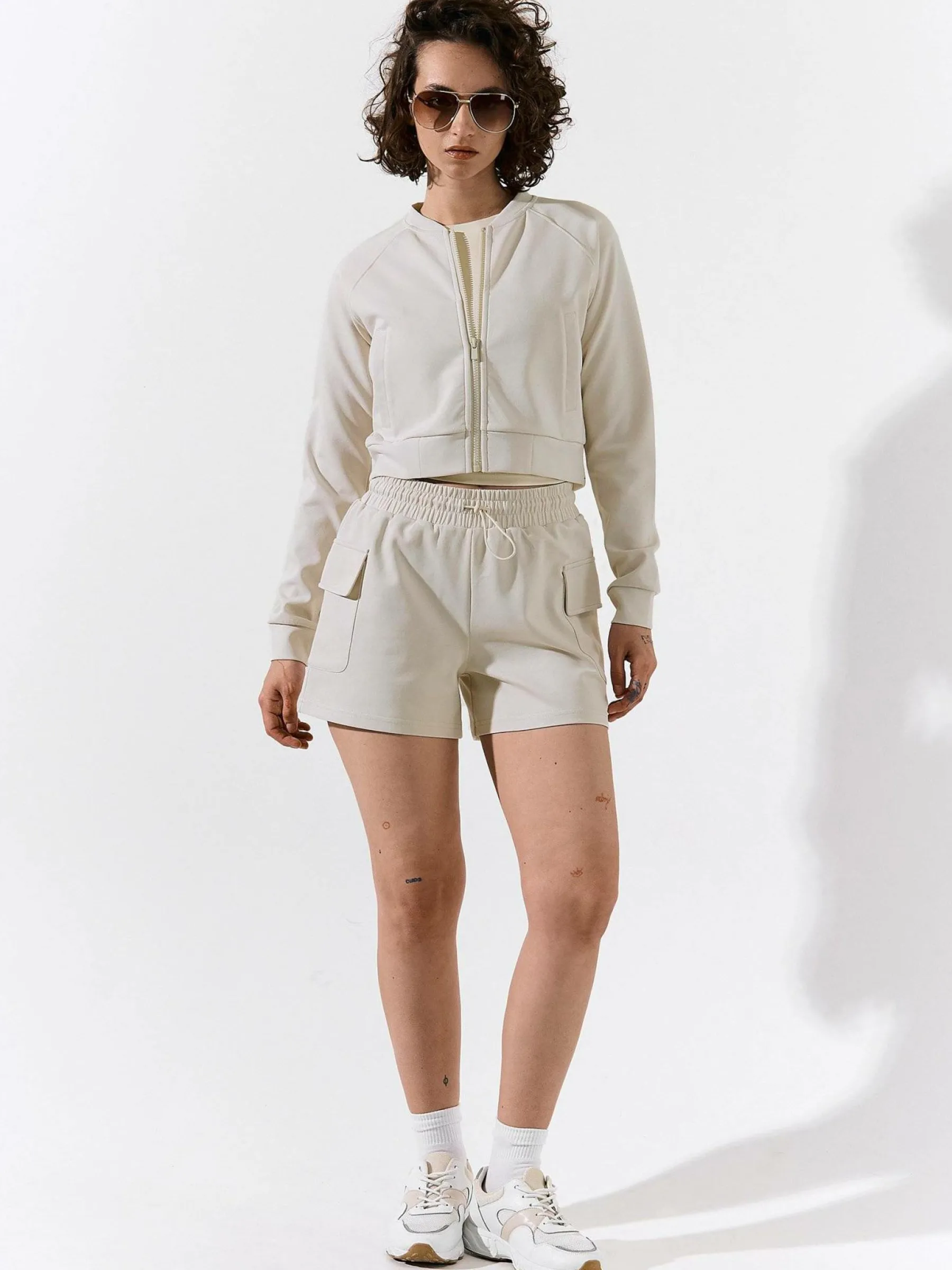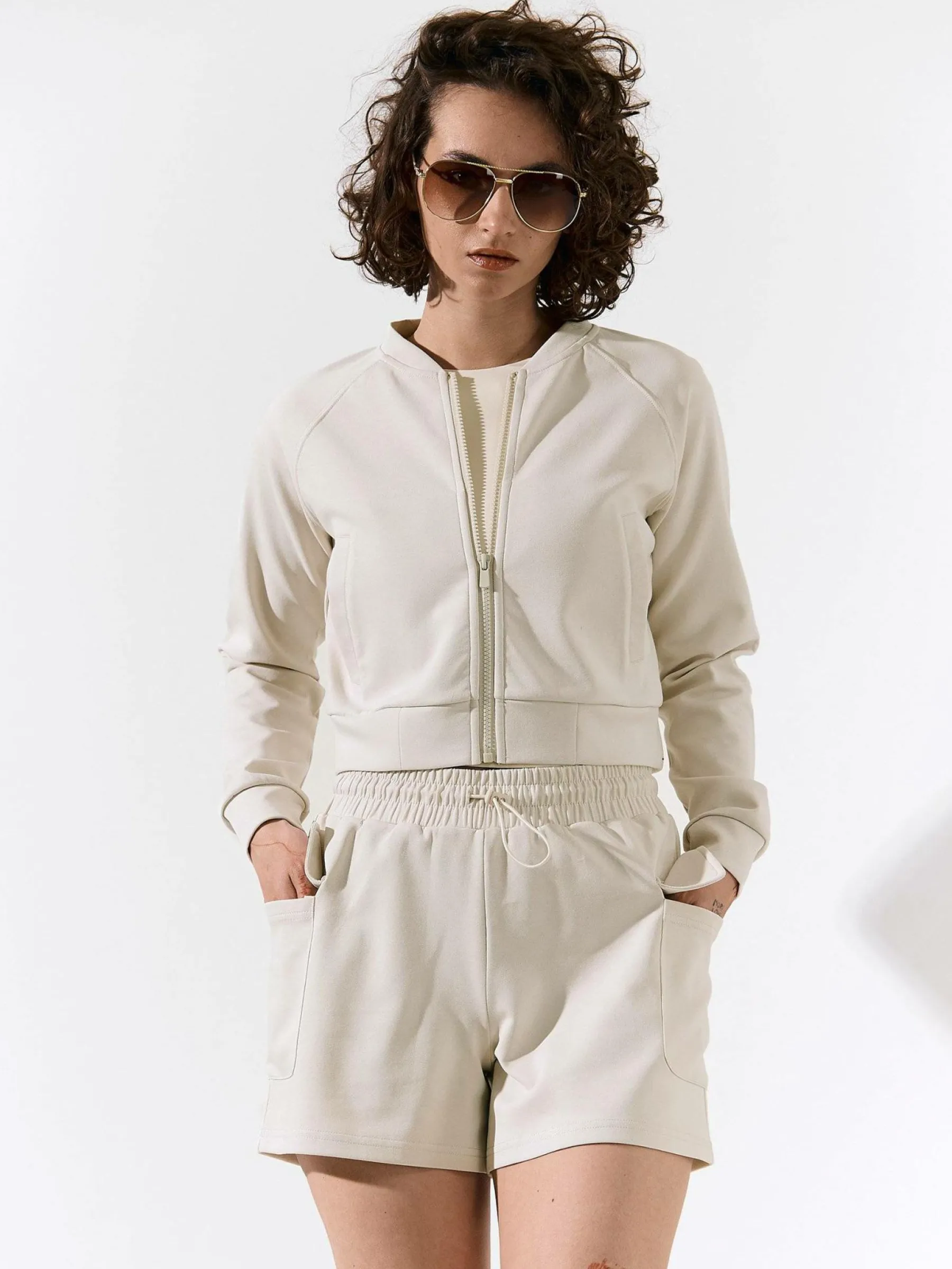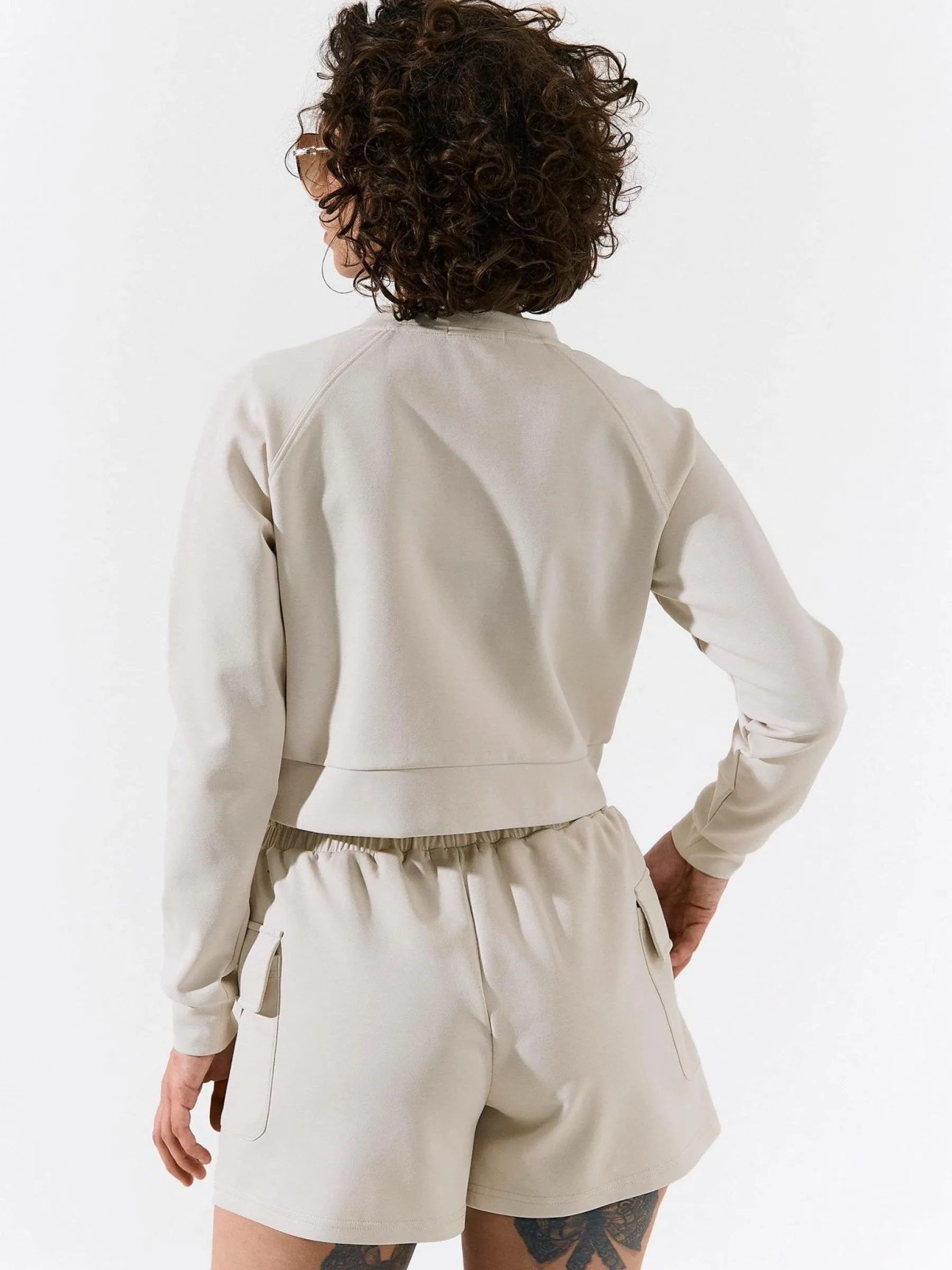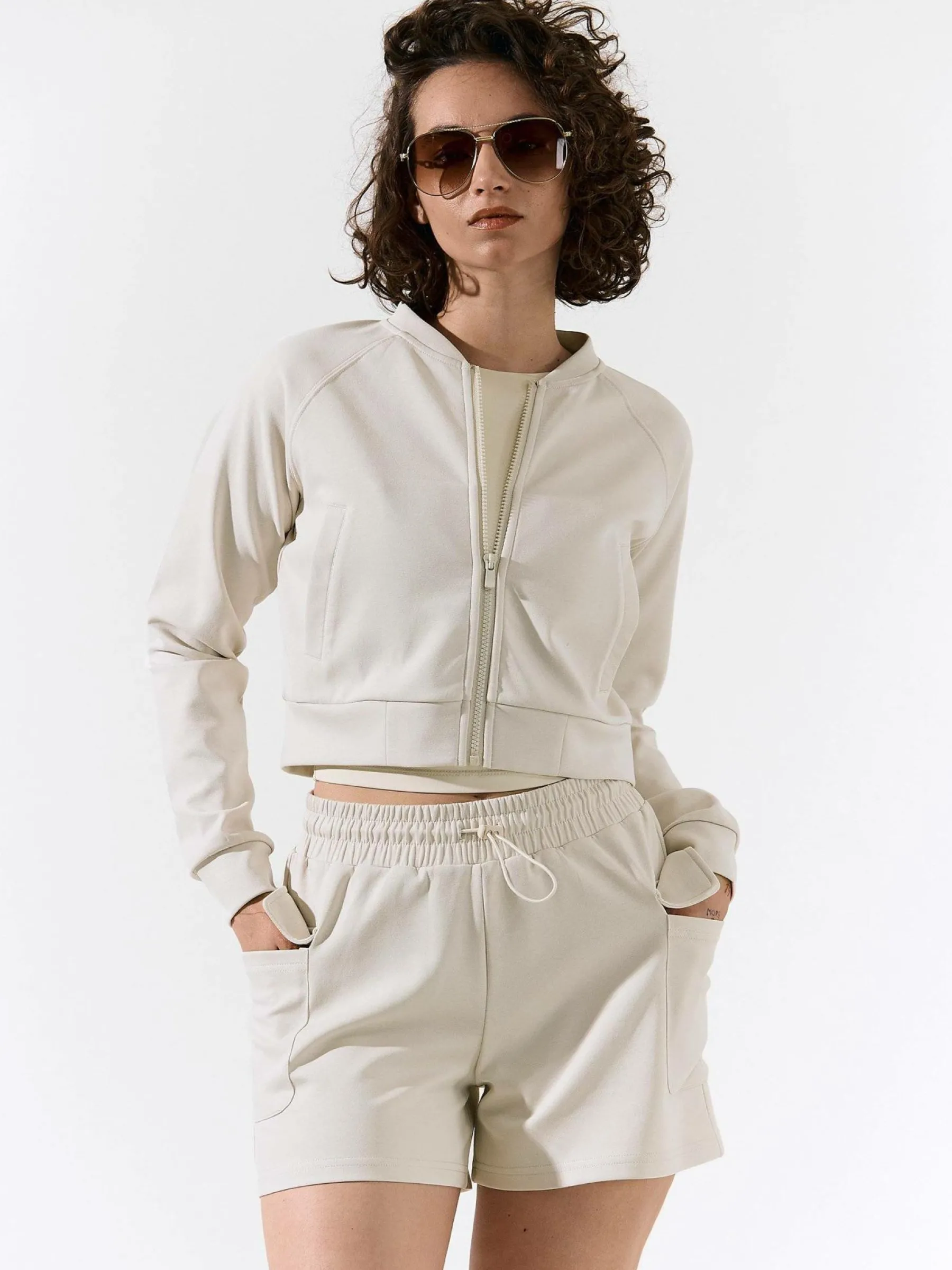 Kolor: beżowyKrój: regularTyp: bluzaRekaw: długi rękawDługość: krótki topPattern style: pojedynczy kolorDetal: n…