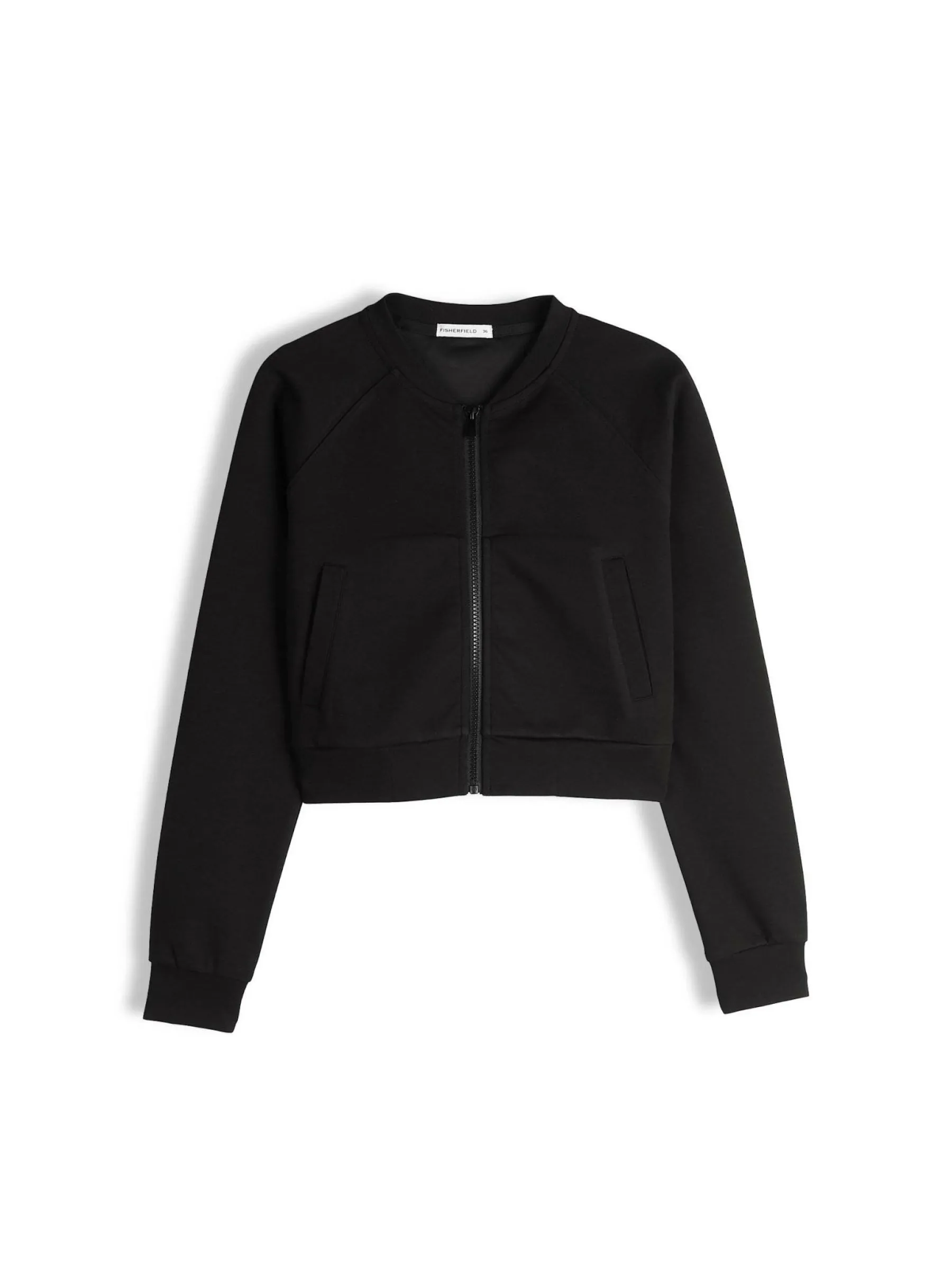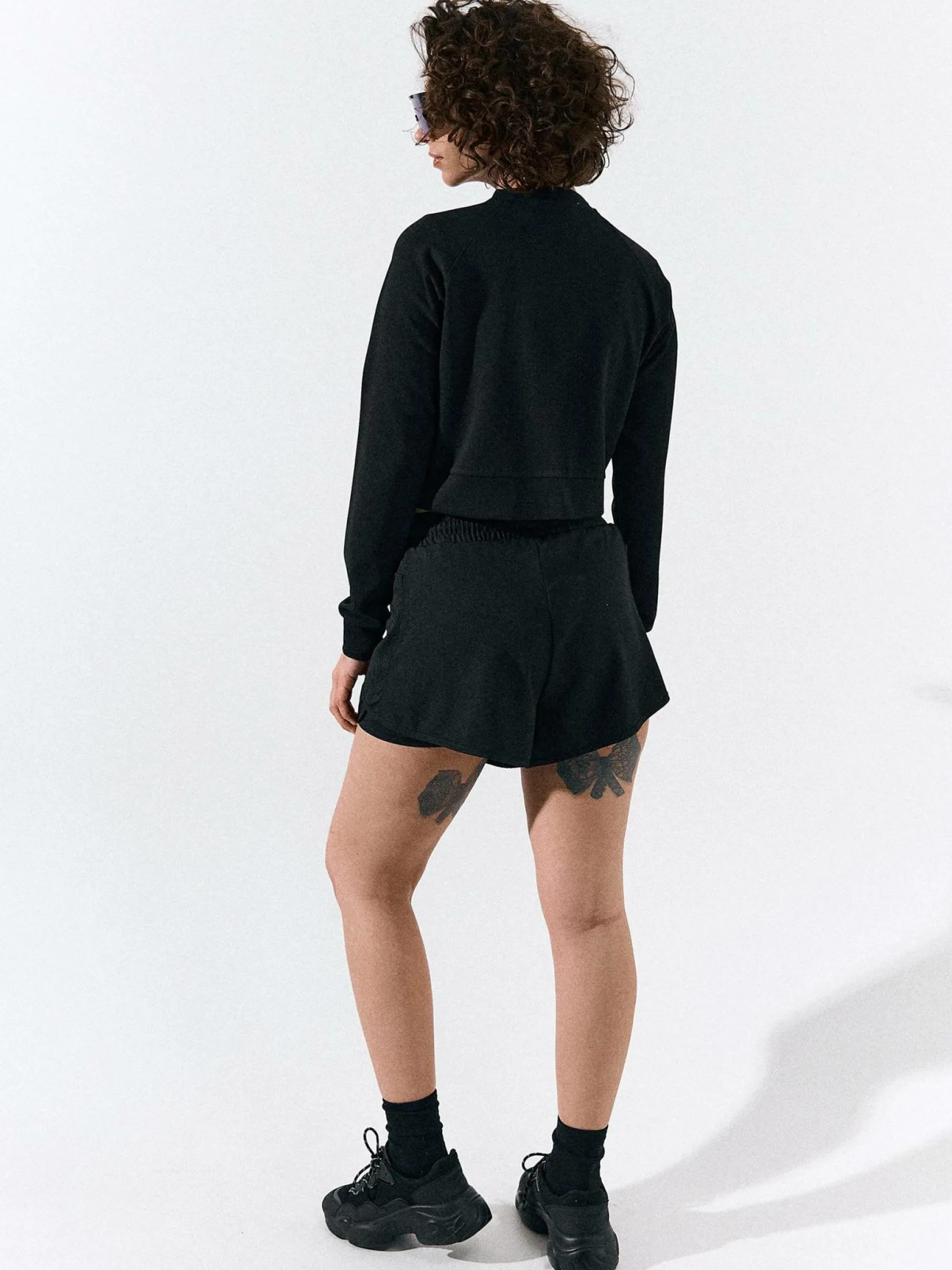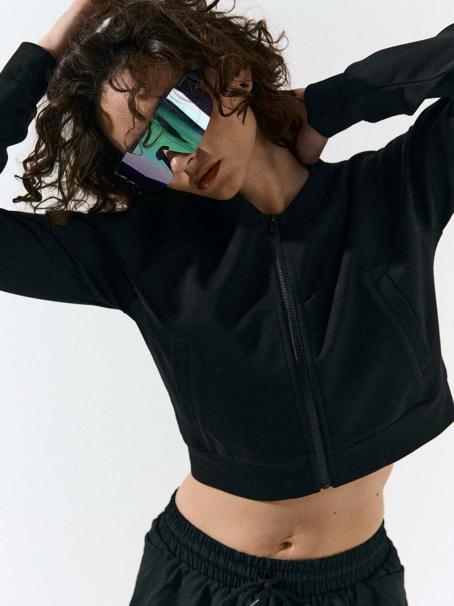 Kolor: czarnyKrój: regularTyp: bluzaRekaw: długi rękawDługość: krótki topPattern style: pojedynczy kolorDetal: na…