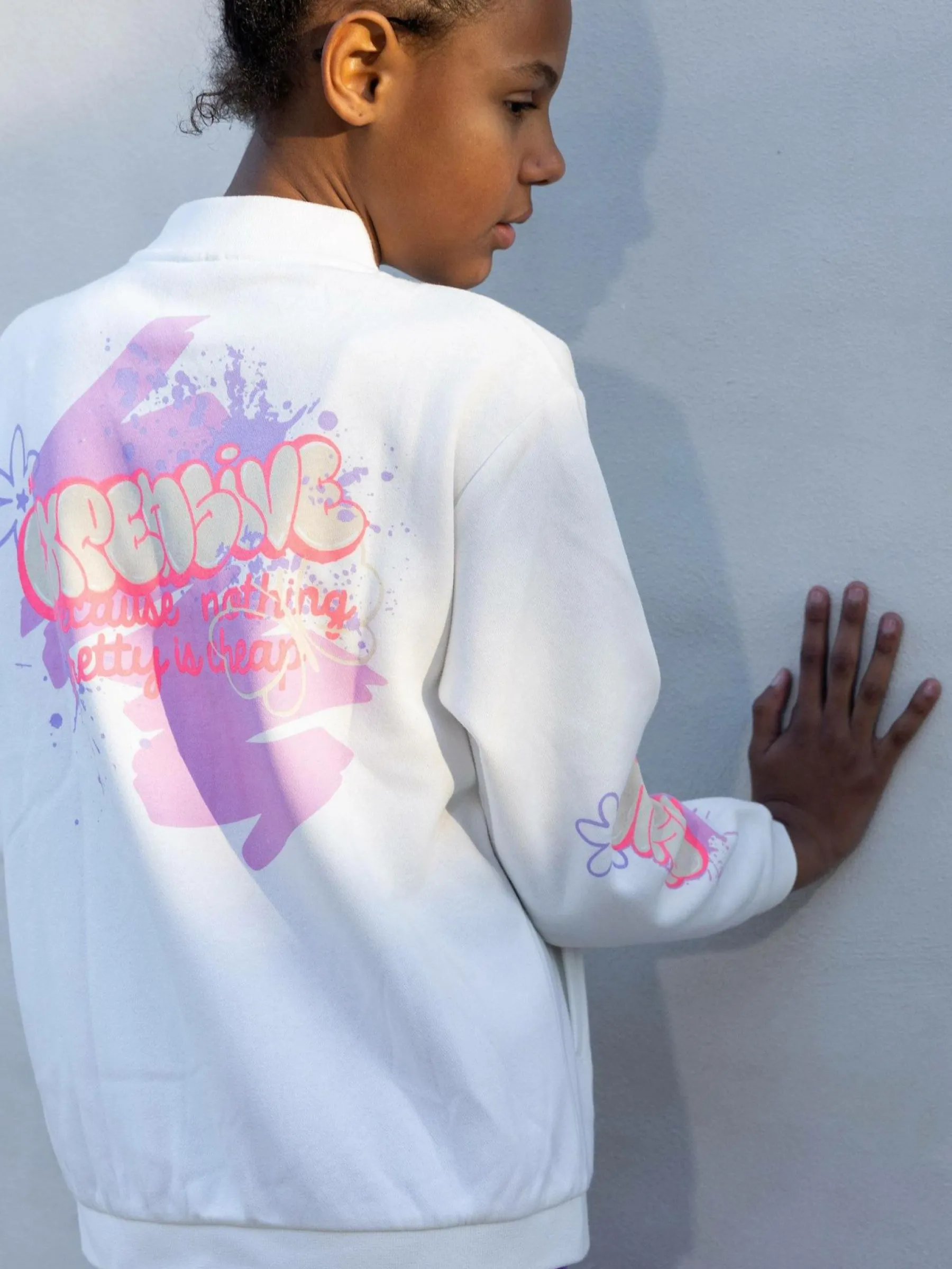 Kolor: białyKrój: regularTyp: bluzaRekaw: długi rękawDługość: krótkiPattern style: z nadrukiemDetal: na snapyMat…