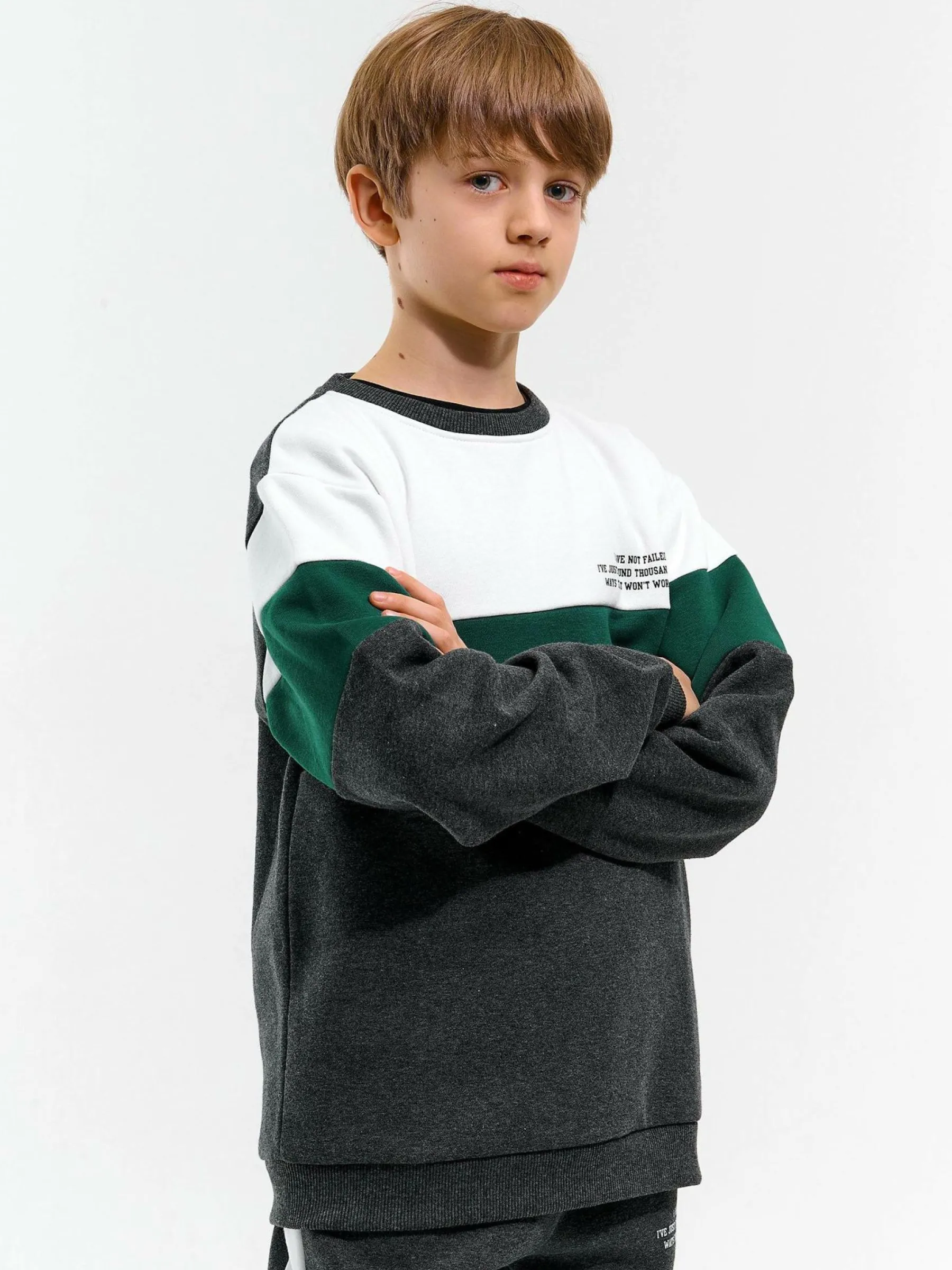 Kolor: szary, zielony, białyKrój: regularTyp: bluzaRekaw: długi rękawDługość: krótkiPattern style: colour blockD…