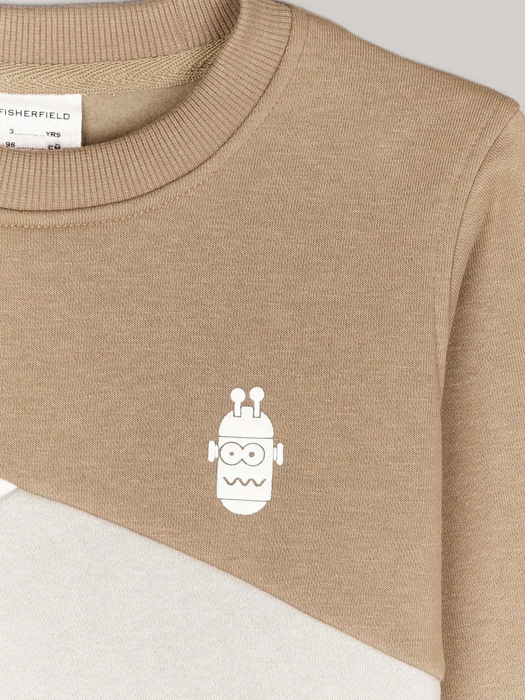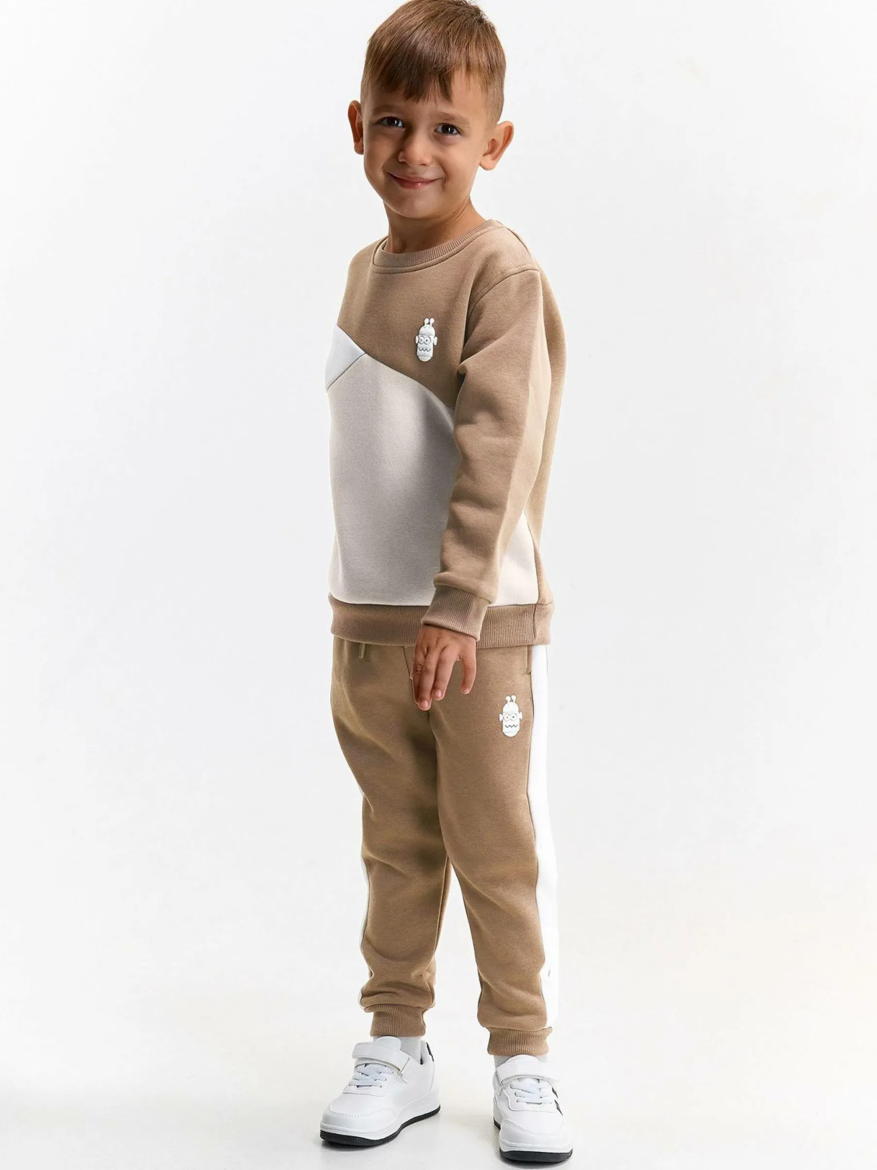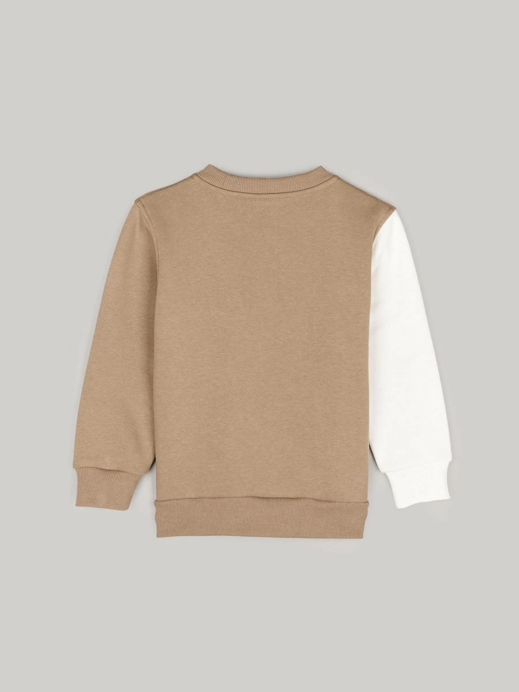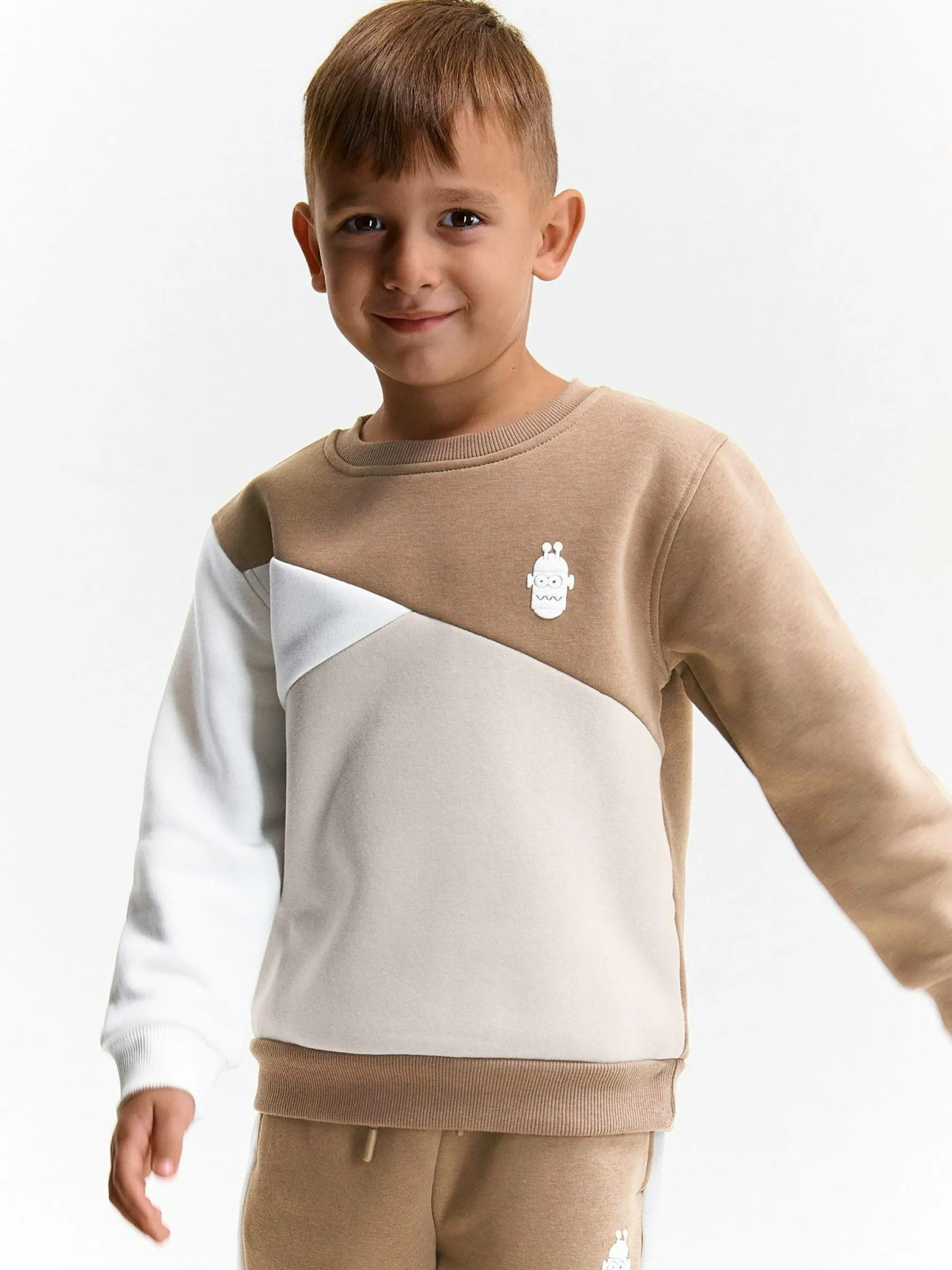 Kolor: beżowy, brązowyKrój: regularTyp: bluzaRekaw: długi rękawDługość: krótkiPattern style: colour block, z na…