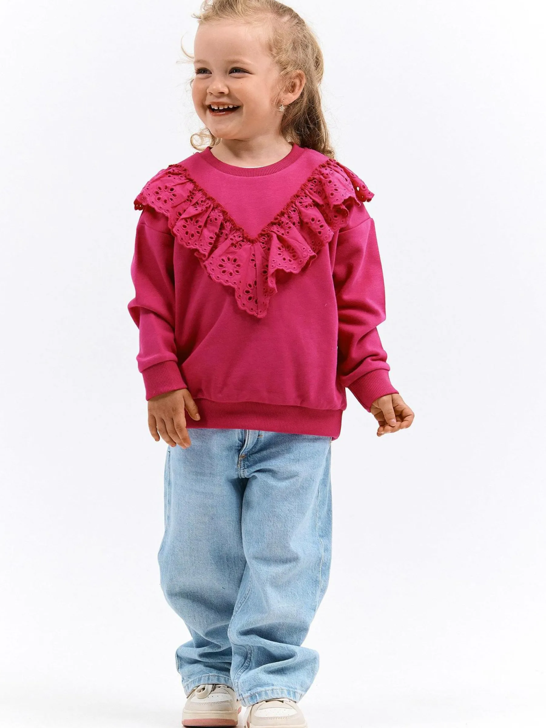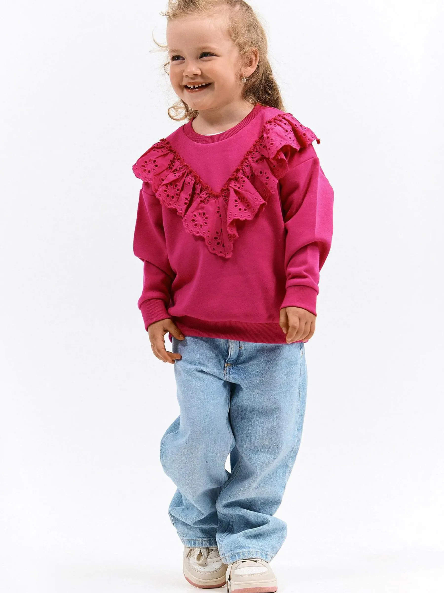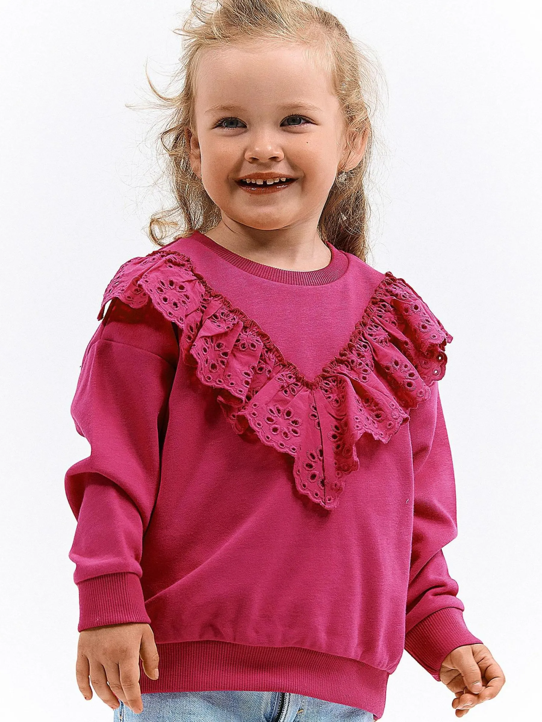 Kolor: różowyKrój: z falbanąTyp: bluzaRekaw: długi rękawDługość: krótkiPattern style: pojedynczy kolorDetal: n…