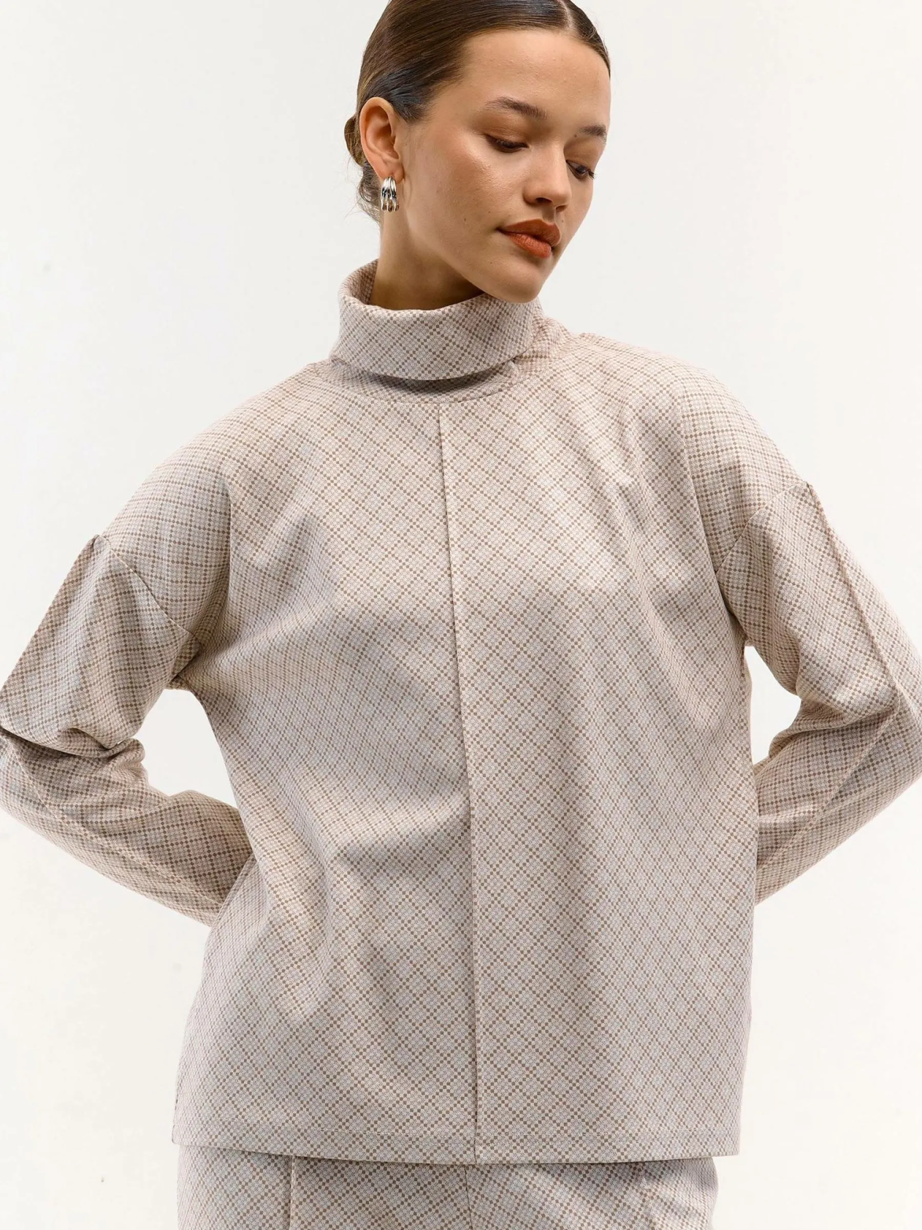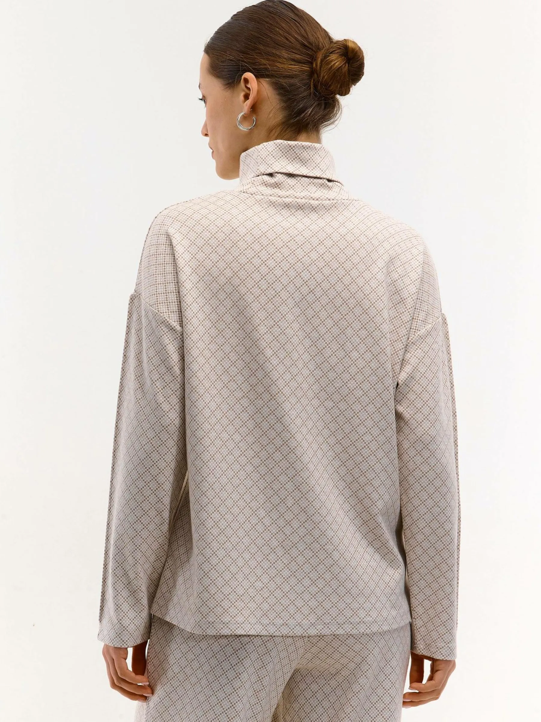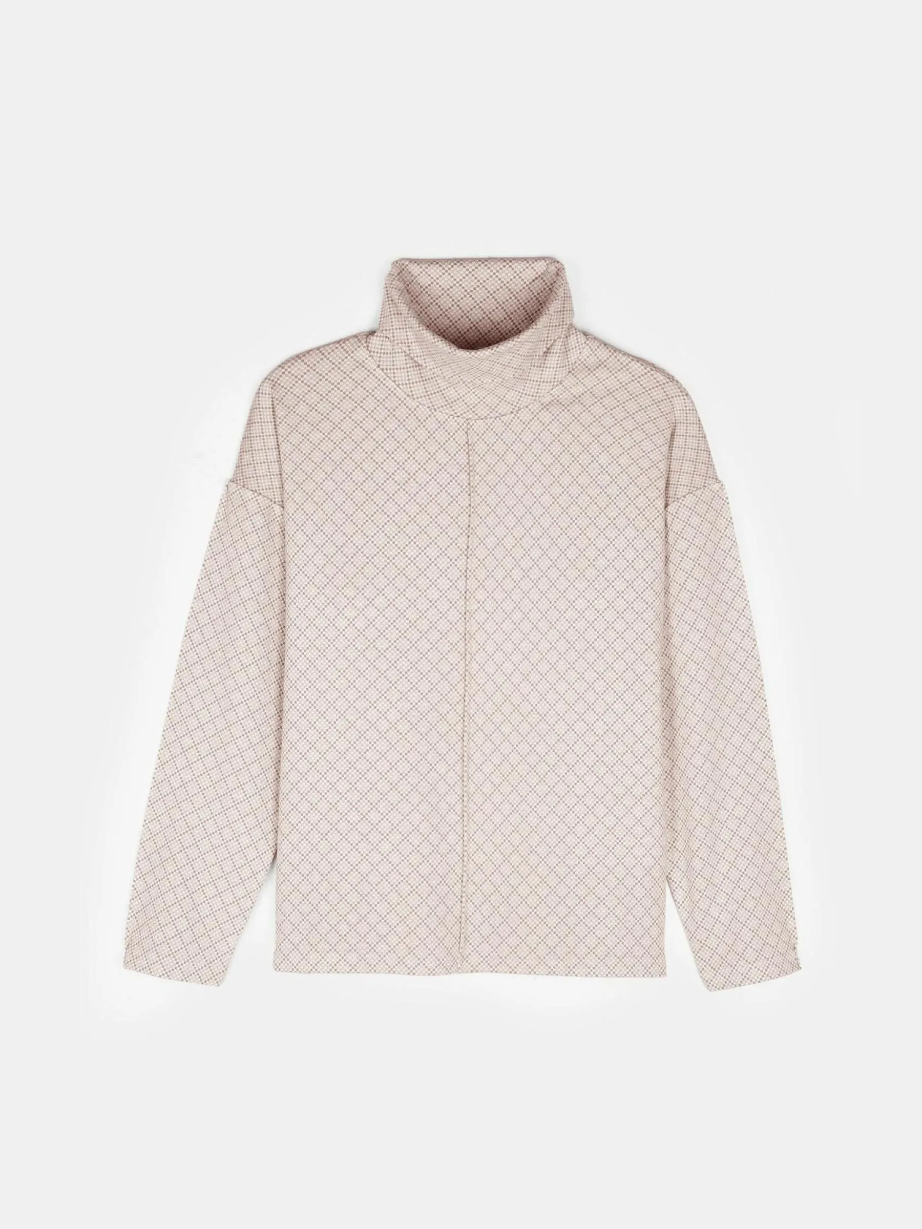 Kolor: beżowyKrój: regularTyp: golf, topRekaw: długi rękaw, rękaw raglanowyDługość: krótkiPattern style: wzorzy…