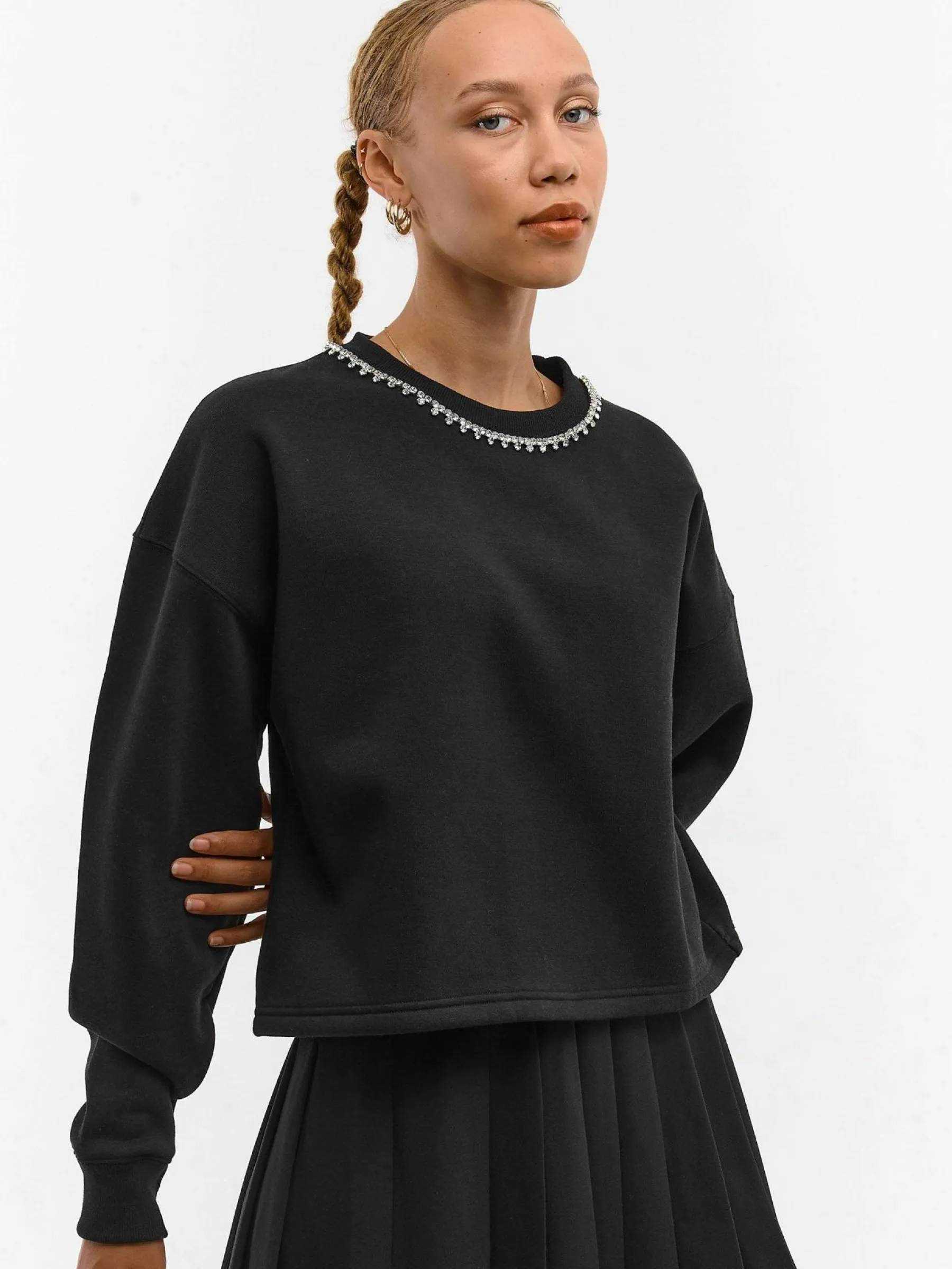Kolor: czarnyTyp: bluzaRekaw: długi rękawDługość: krótkiPattern style: pojedynczy kolorDetal: nad głową, z kamie…