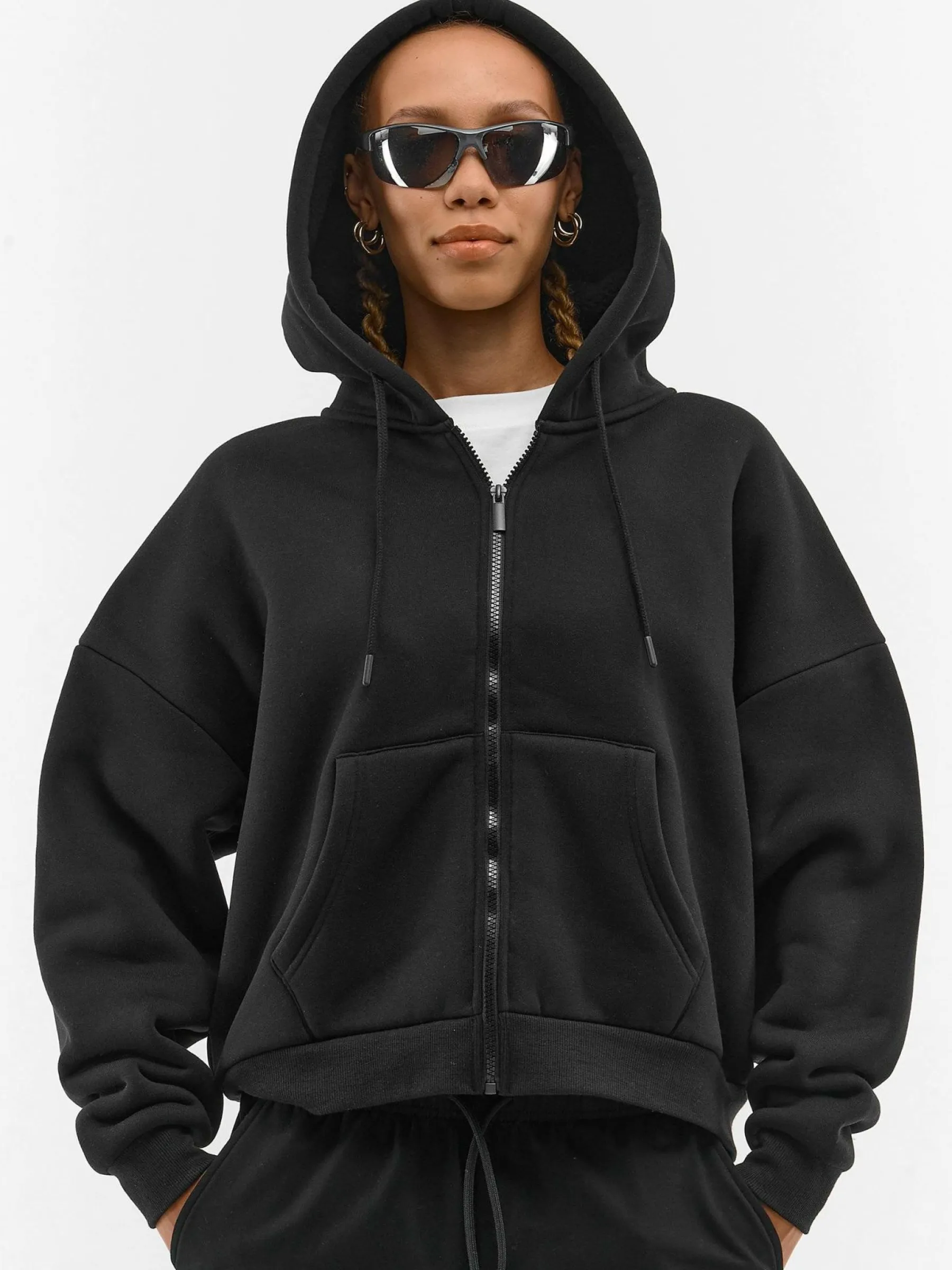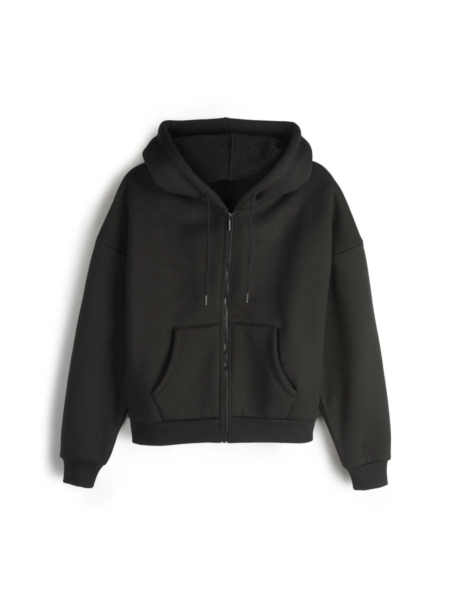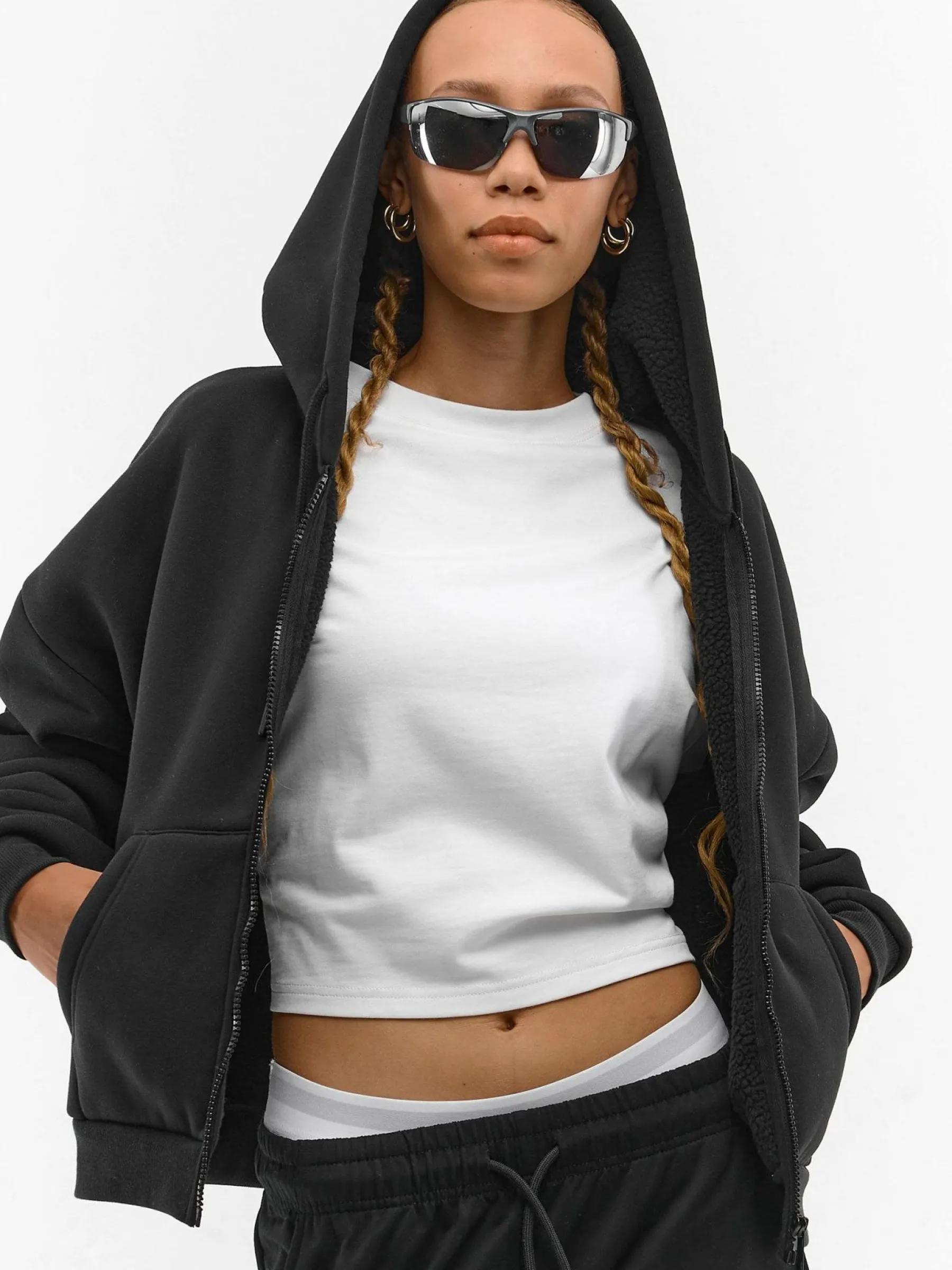 Kolor: czarnyKrój: podstawowyTyp: bluzaRekaw: długi rękawDługość: krótkiPattern style: pojedynczy kolorDetal: blu…