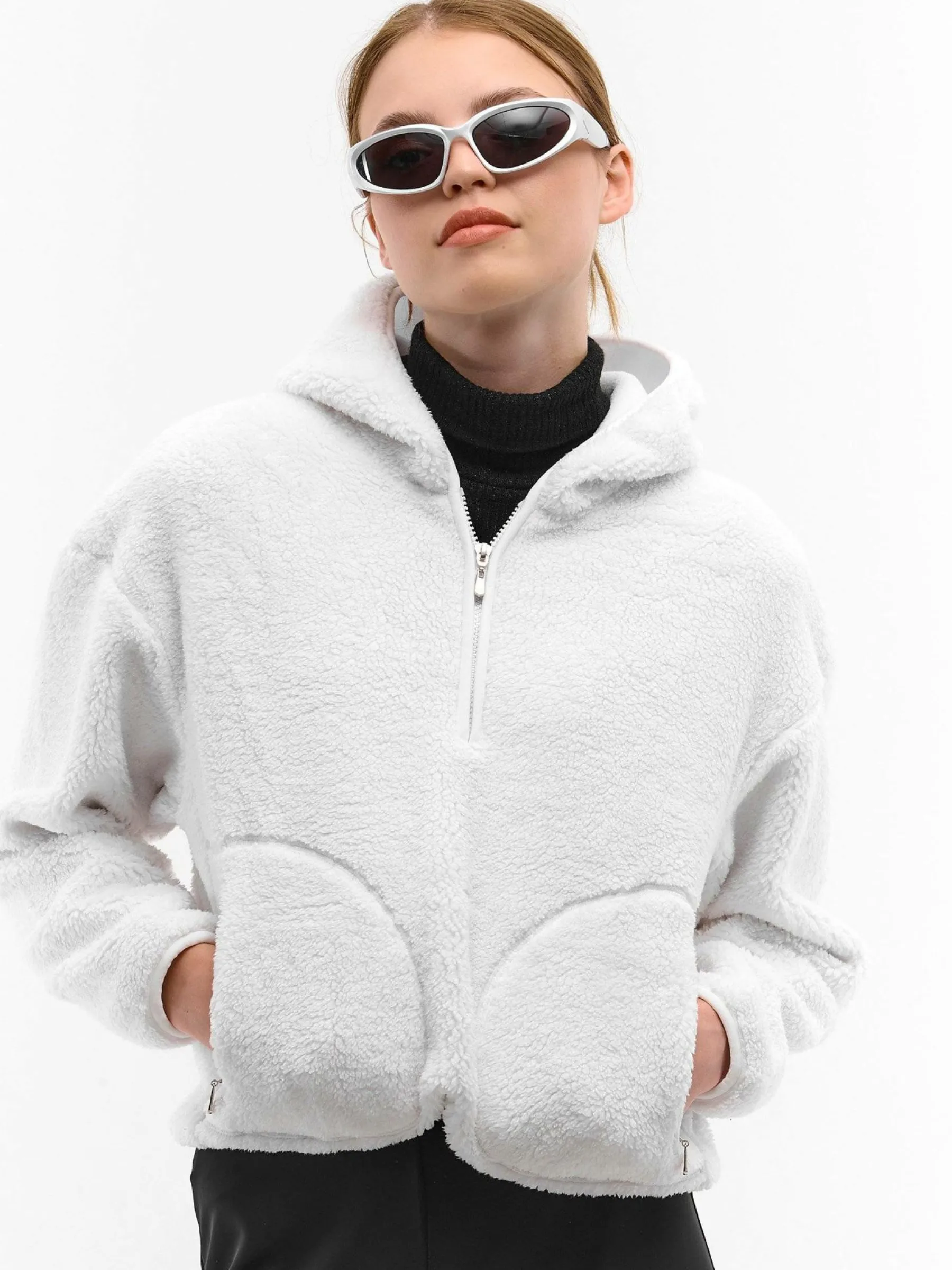 Kolor: białyKrój: podstawowyTyp: bluzaRekaw: długi rękawDługość: krótkiPattern style: pojedynczy kolorDetal: blu…