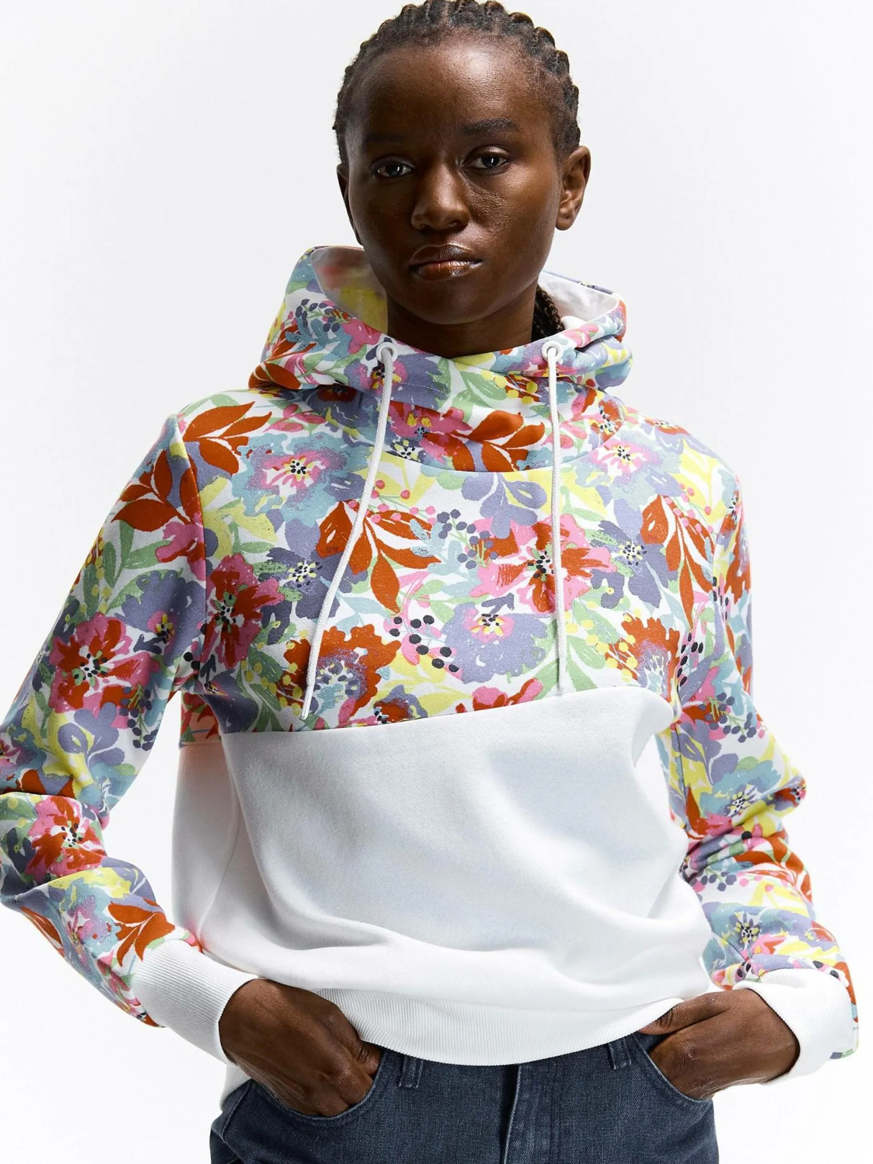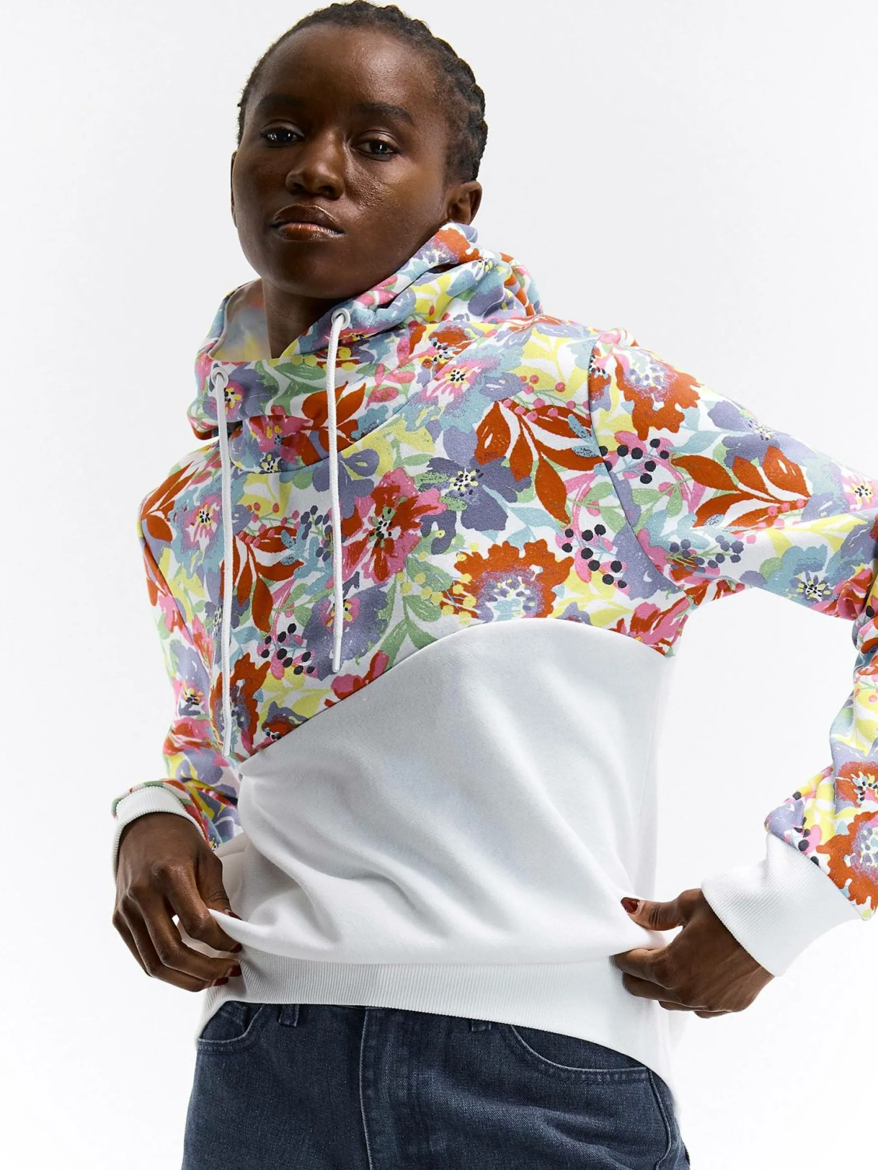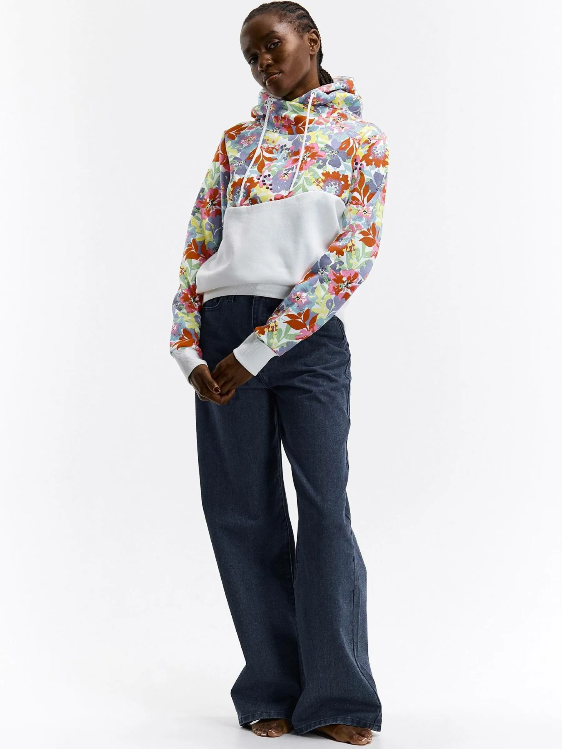 Kolor: białyKrój: regularTyp: bluzaRekaw: długi rękawDługość: krótkiPattern style: kwiatoweDetal: nad głową, b…
