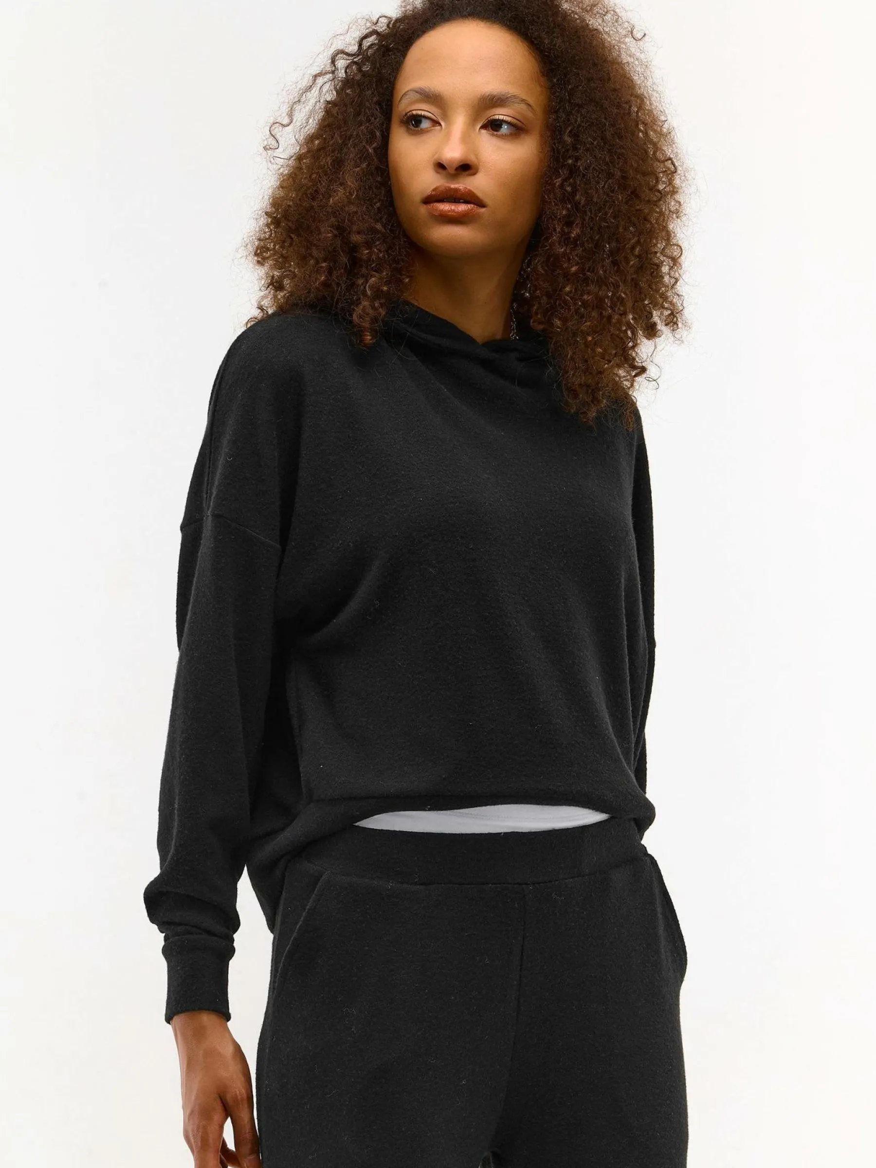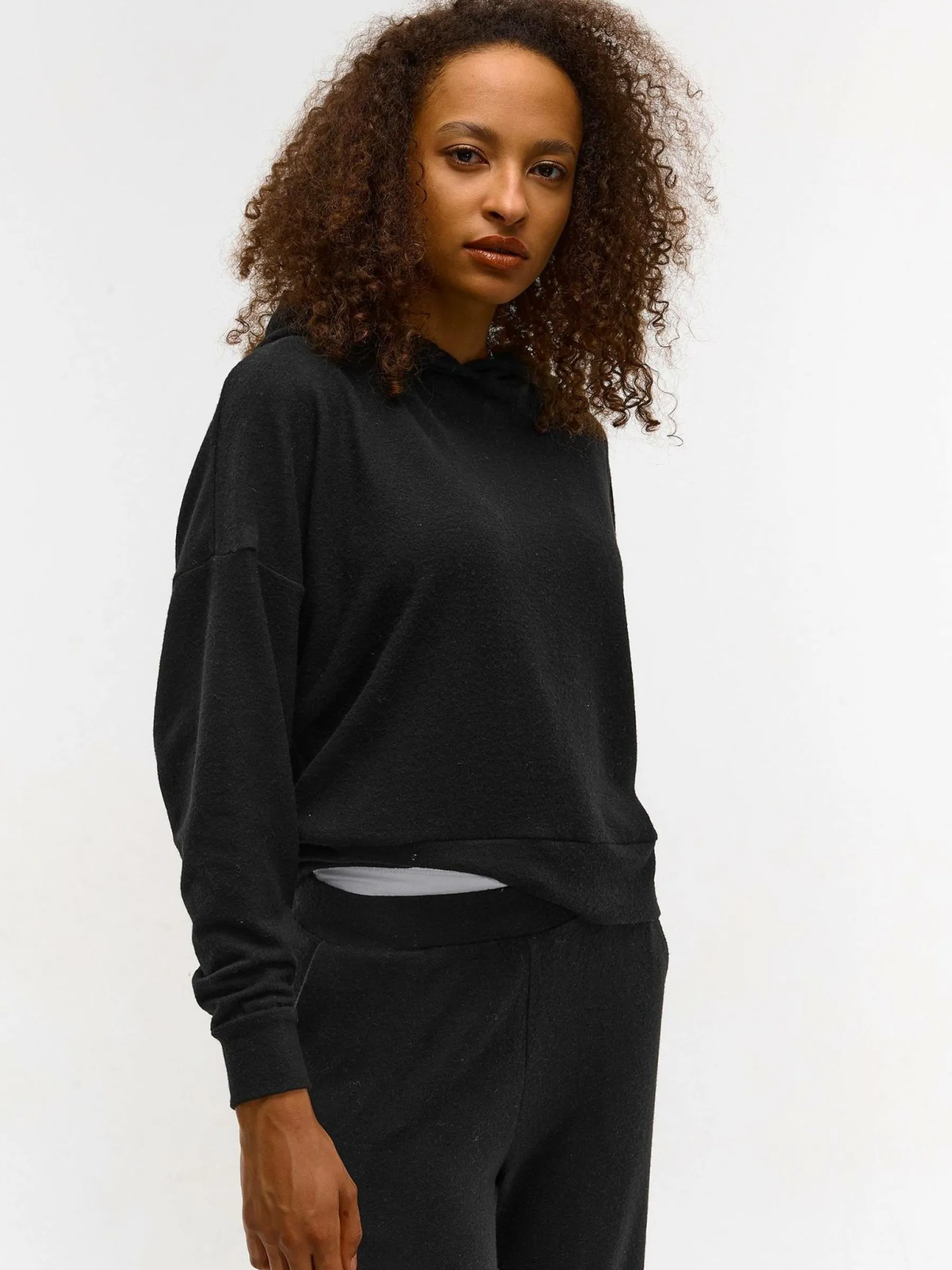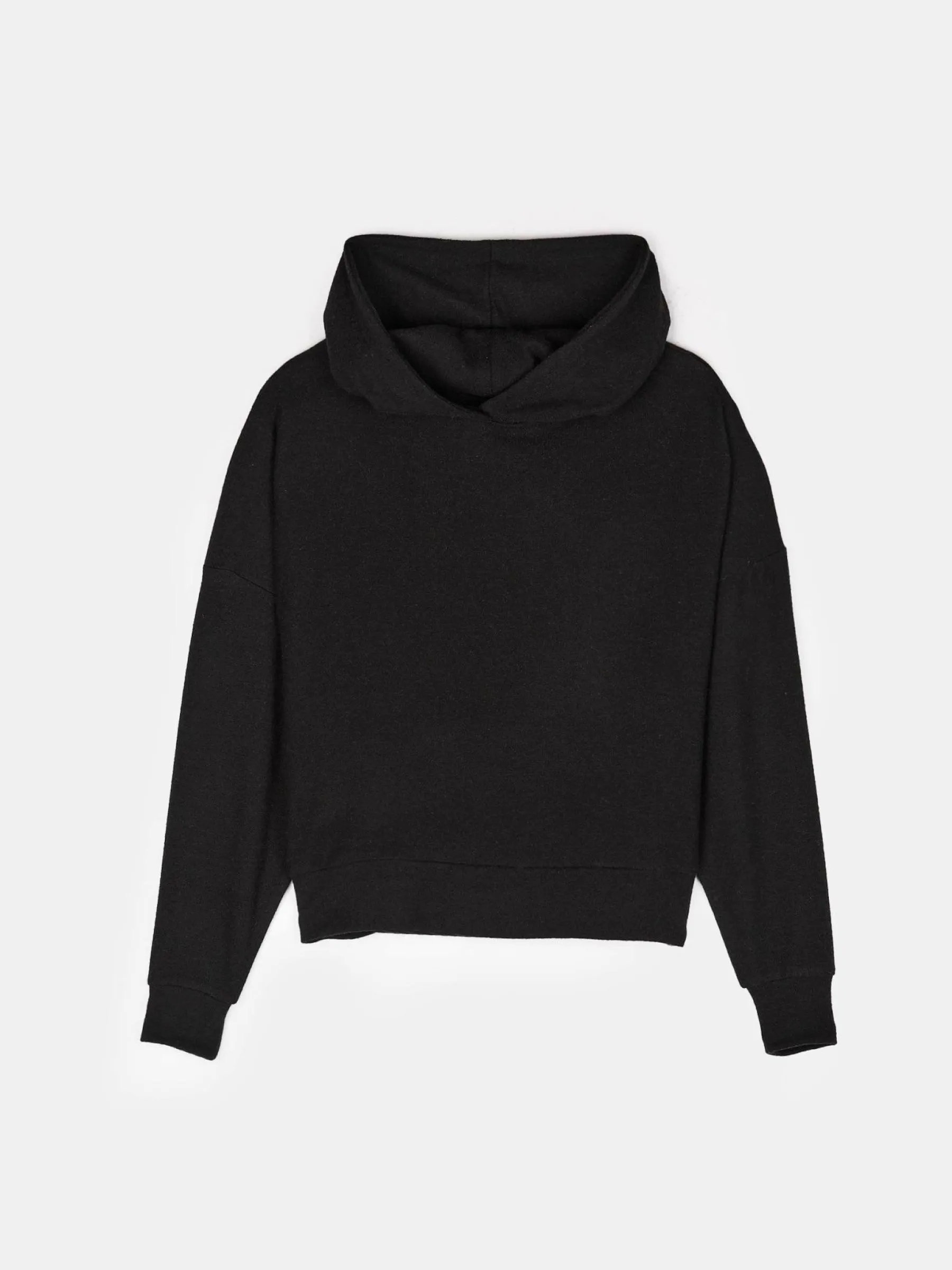 Kolor: czarnyKrój: oversizedTyp: bluzaRekaw: długi rękawDługość: krótkiPattern style: pojedynczy kolorDetal: bluz…