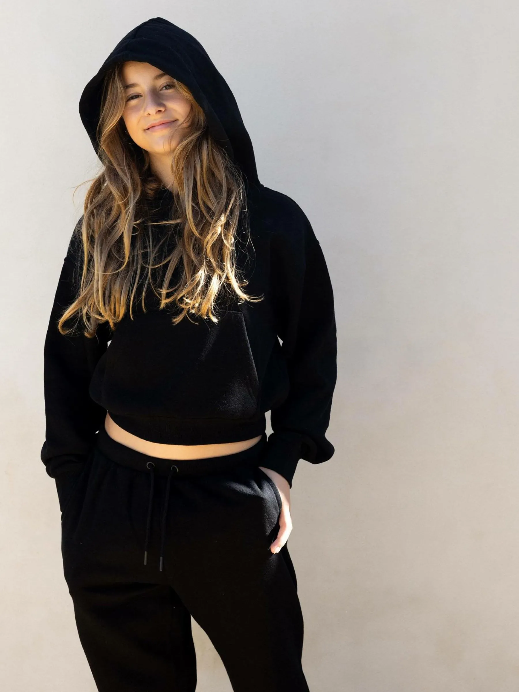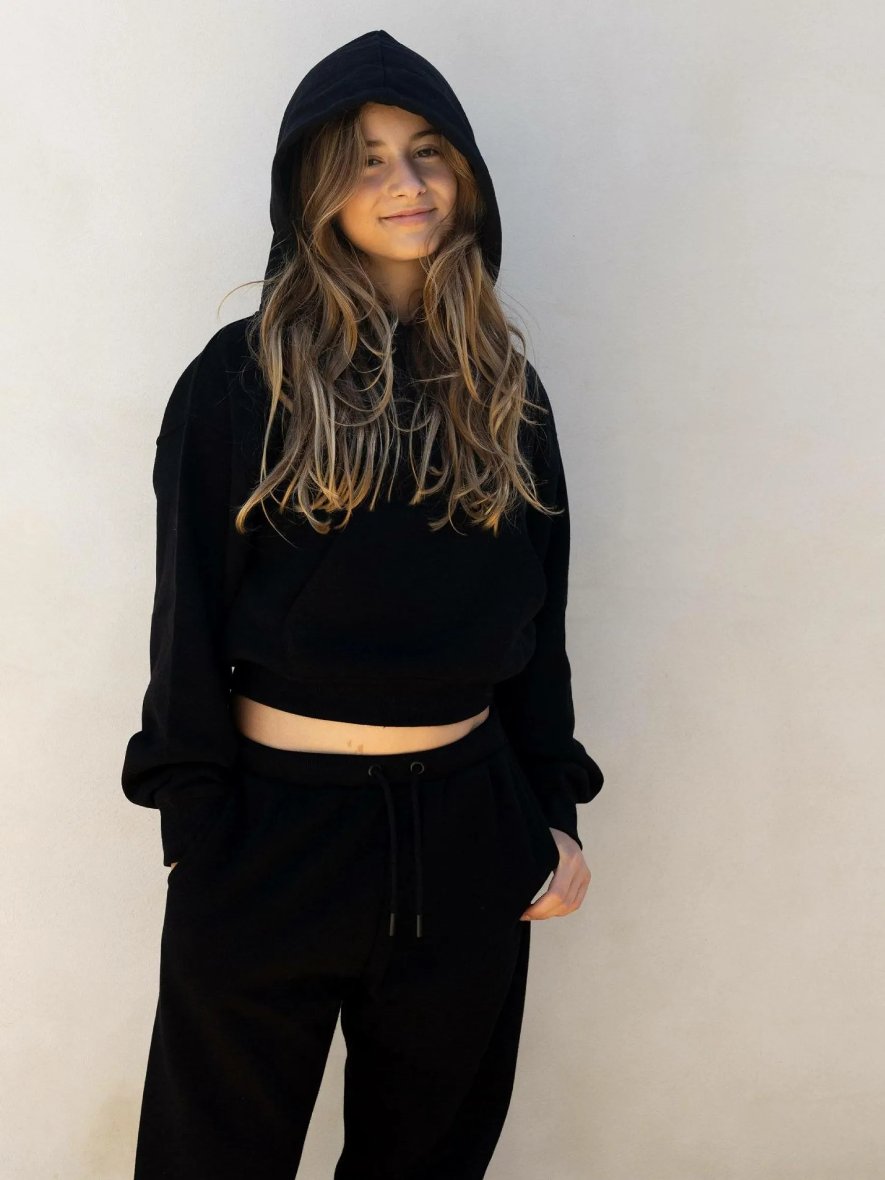 Kolor: czarnyKrój: regularTyp: bluzaRekaw: długi rękawDługość: krótki topPattern style: pojedynczy kolorDetal: na…
