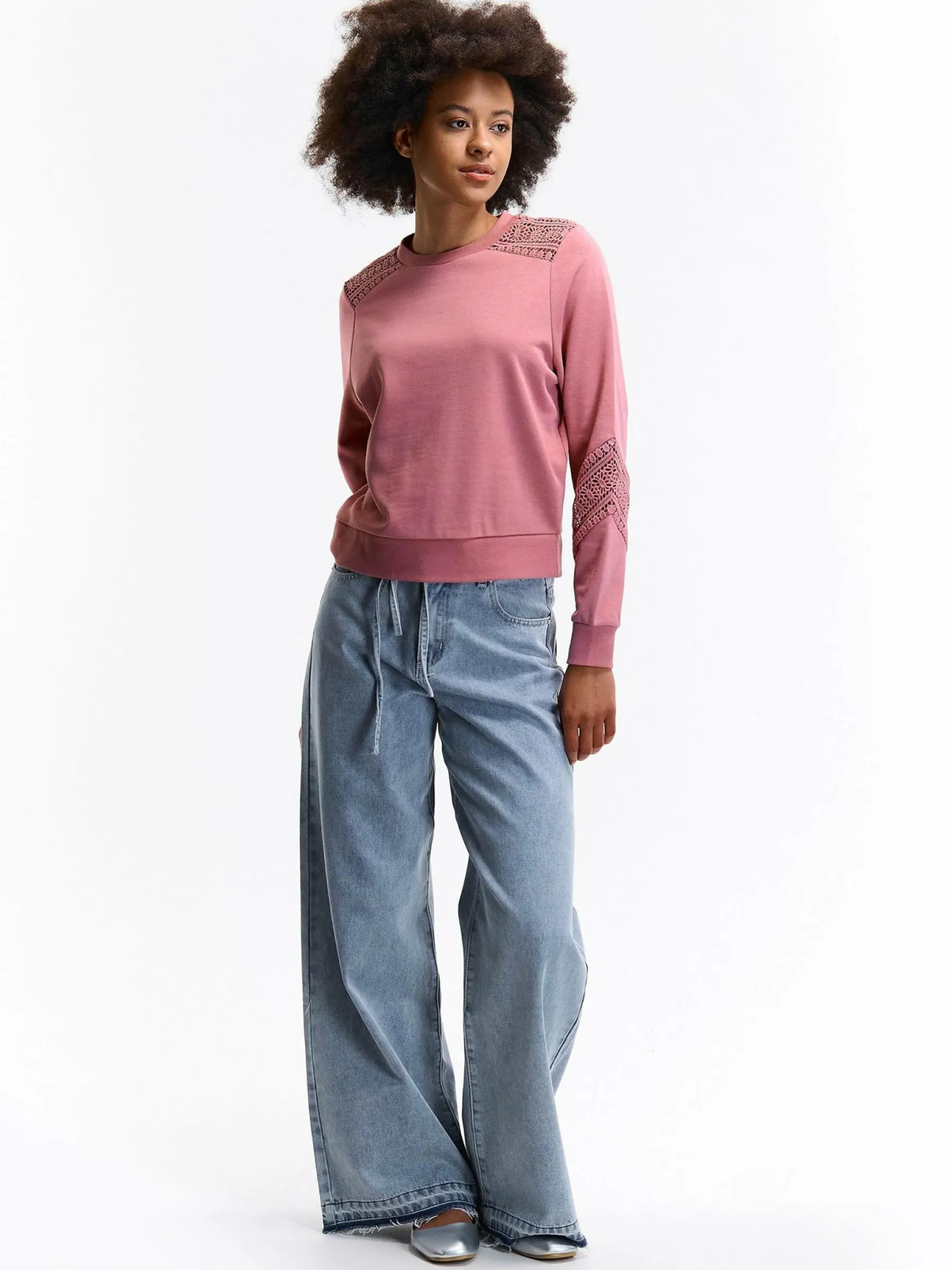 Kolor: różowyKrój: regularTyp: bluzaRekaw: długi rękawDługość: krótkiPattern style: pojedynczy kolor, szydełko…