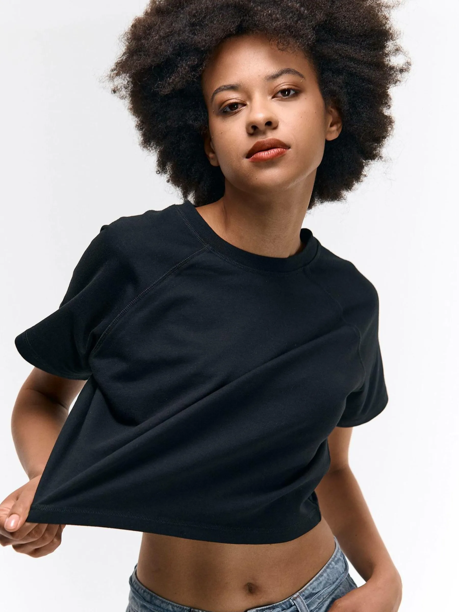 Kolor: czarnyKrój: regularTyp: bluza, koszulkaRekaw: krótki rękawDługość: krótki topPattern style: pojedynczy kol…