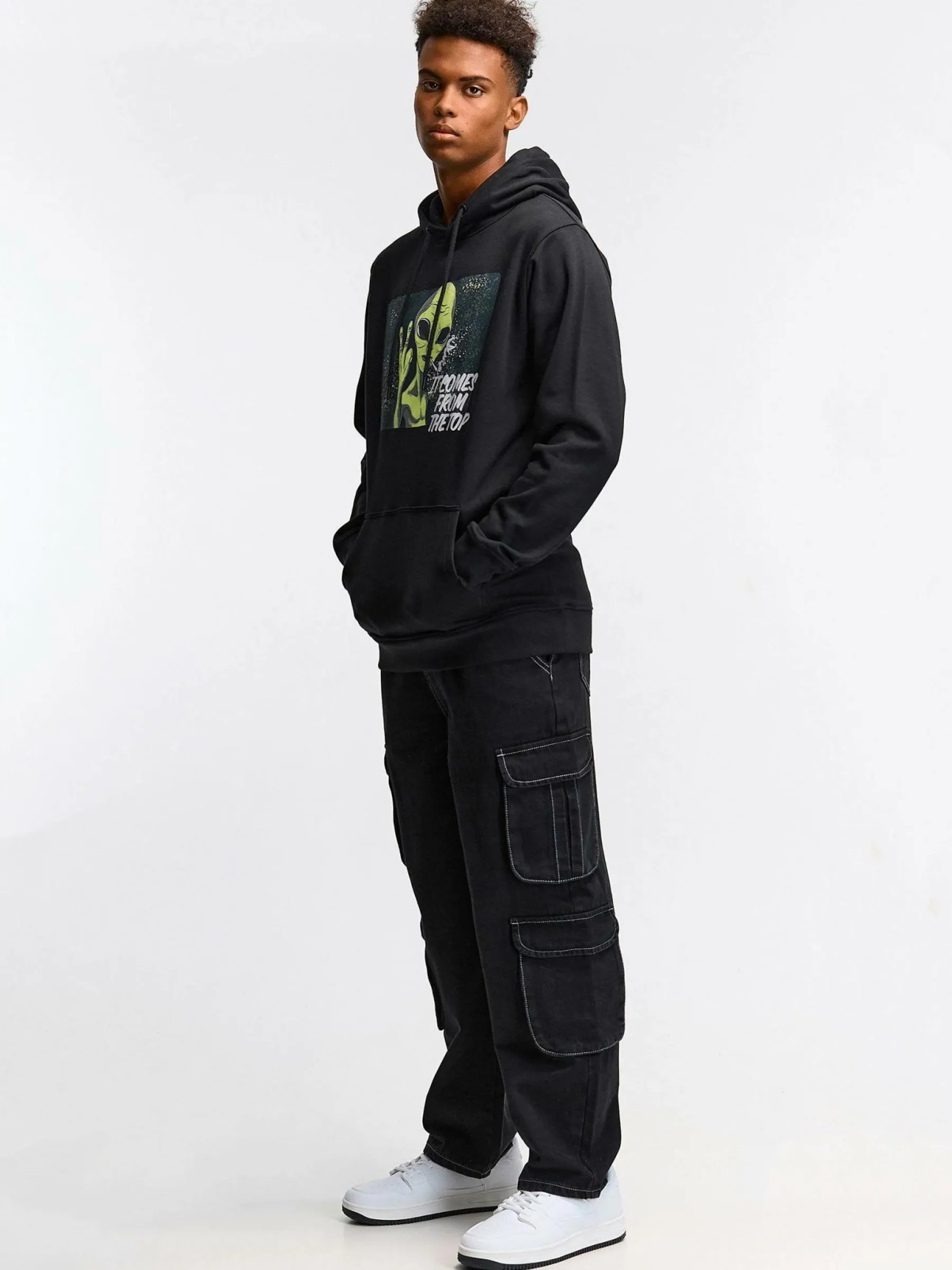 Kolor: czarnyKrój: podstawowyTyp: bluzaRekaw: długi rękawDługość: krótkiPattern style: z nadrukiemDetal: bluza z …
