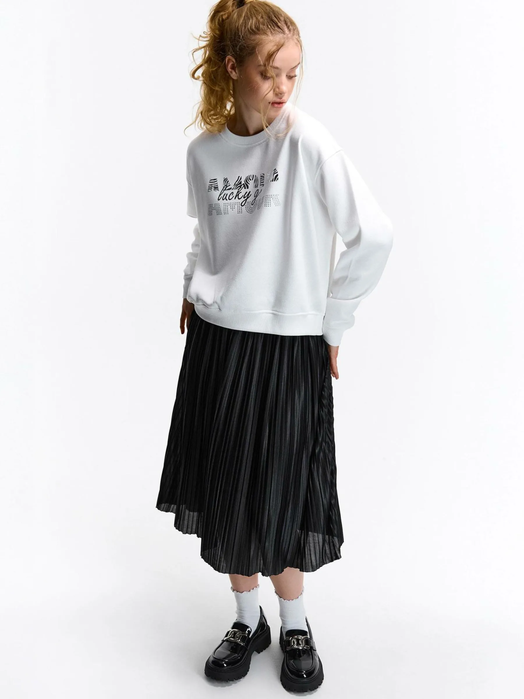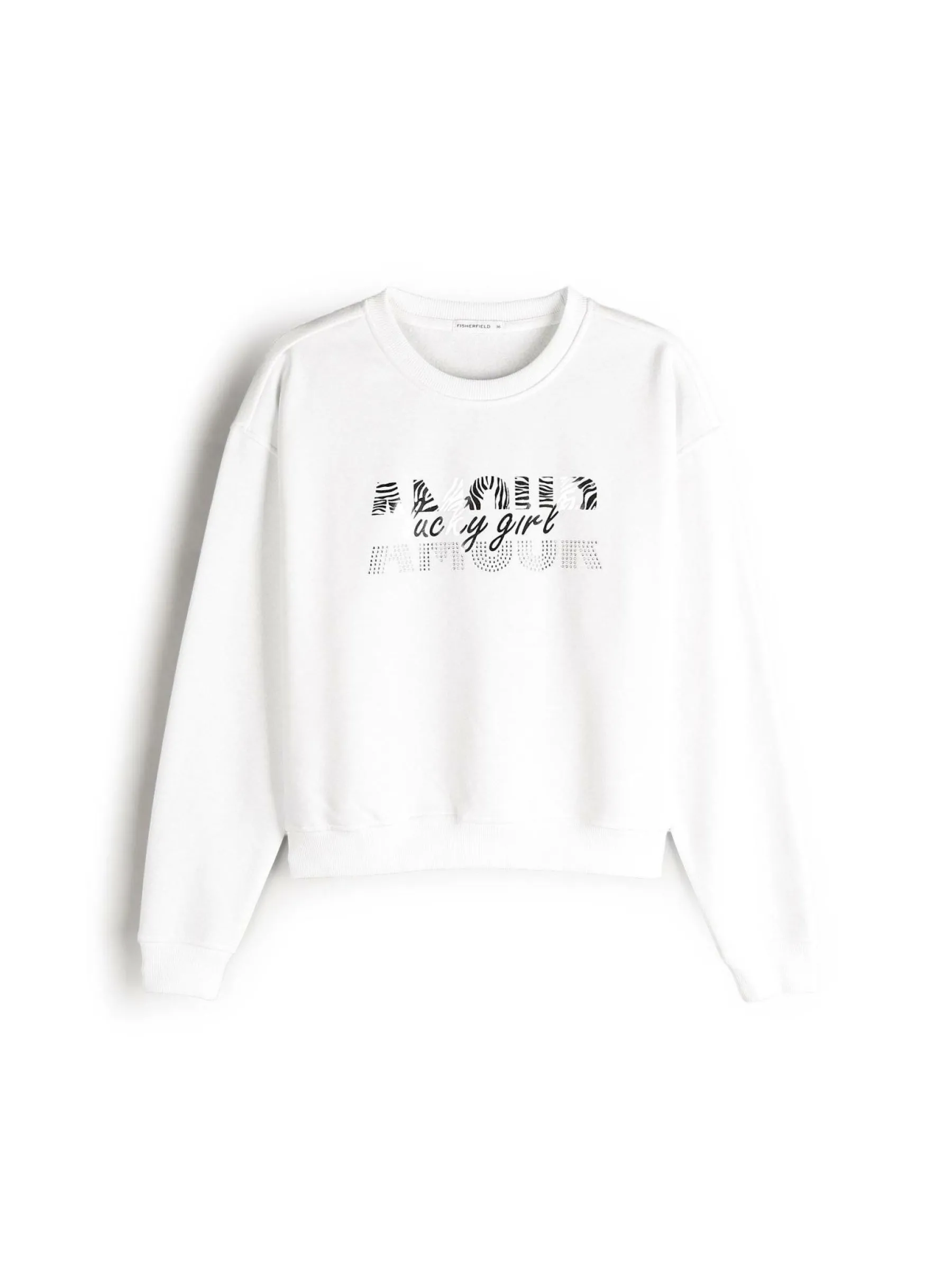 Kolor: białyKrój: regularTyp: bluzaRekaw: długi rękawDługość: krótkiPattern style: z nadrukiemDetal: nad głową…