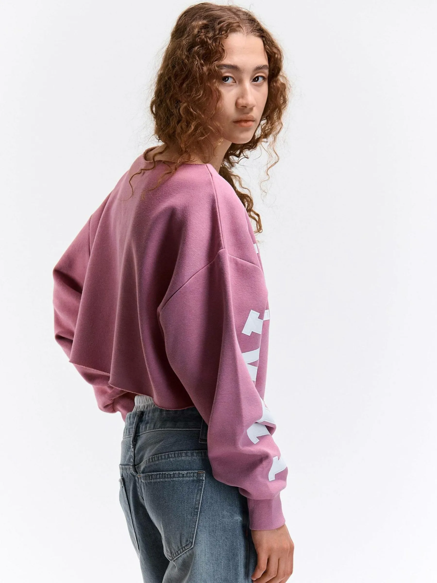Kolor: różowyKrój: oversizedTyp: bluzaRekaw: długi rękawDługość: krótki topPattern style: z nadrukiemDetal: nad…
