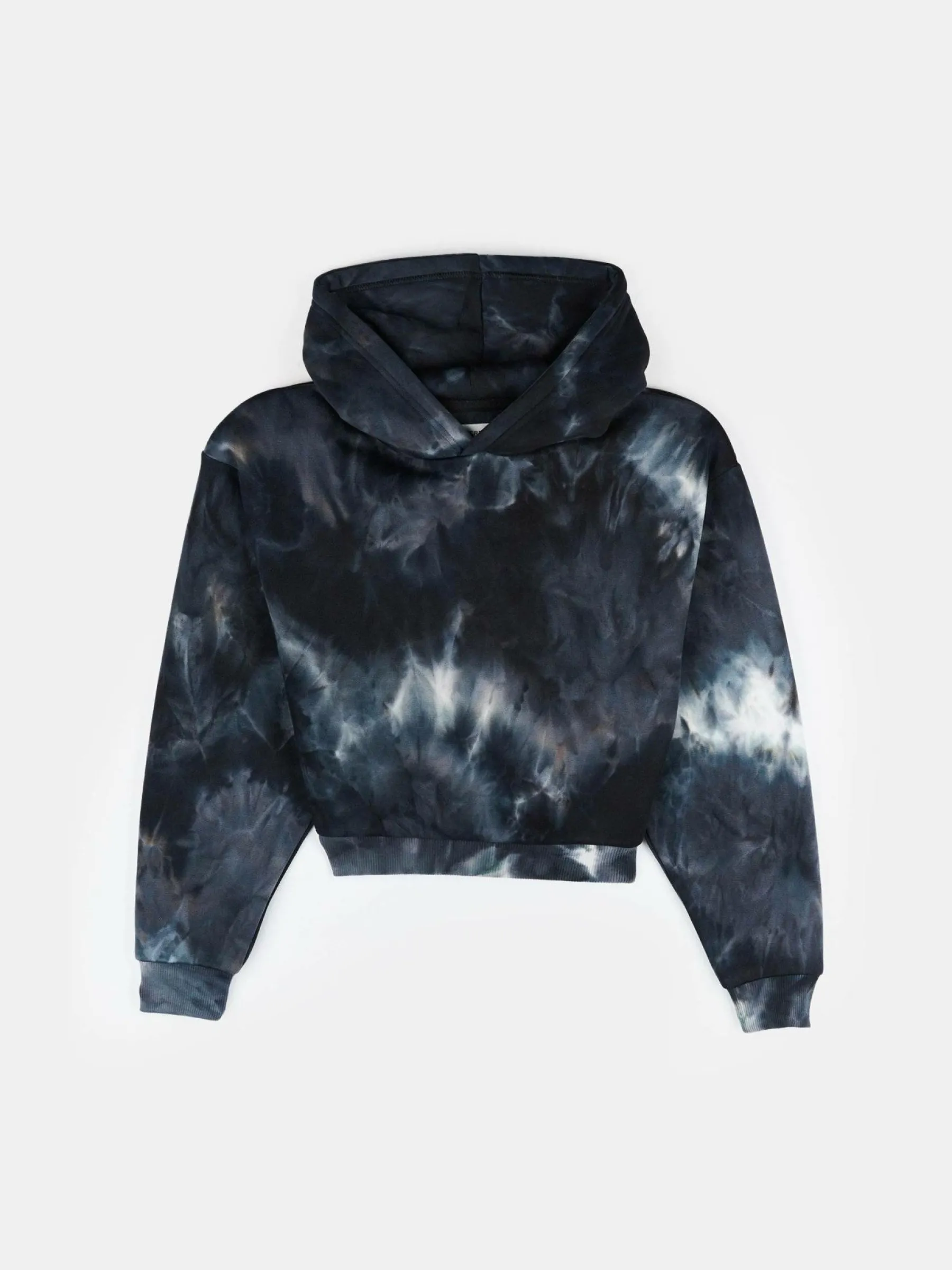 Kolor: czarnyKrój: podstawowyTyp: bluzaRekaw: długi rękawDługość: krótkiPattern style: tie dyeDetal: bluza z kapt…