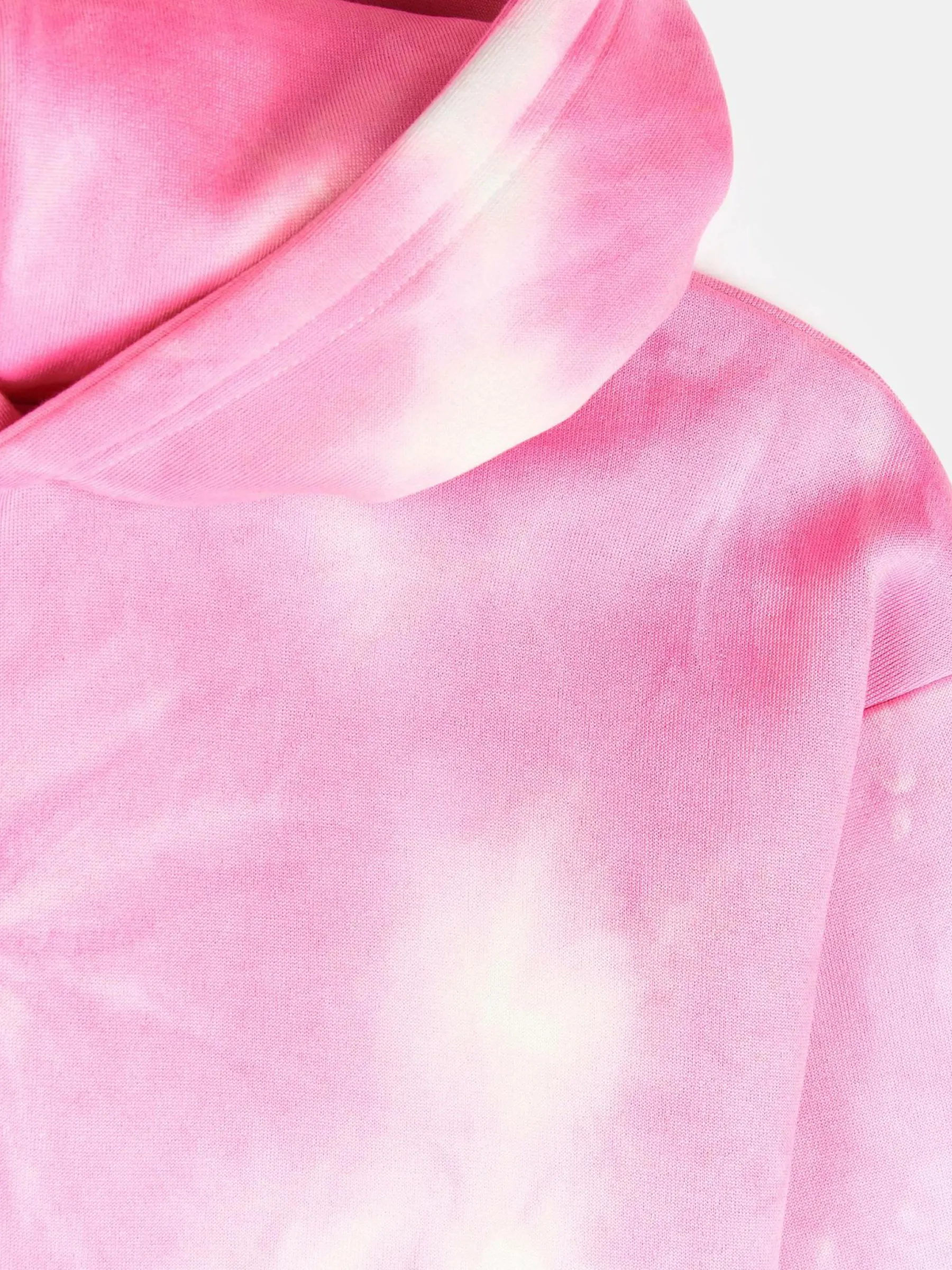 Kolor: różowyKrój: podstawowyTyp: bluzaRekaw: długi rękawDługość: krótkiPattern style: tie dyeDetal: bluza z ka…