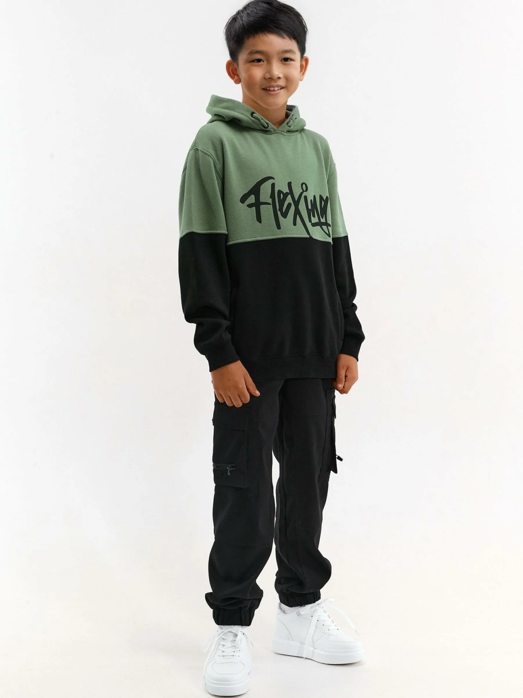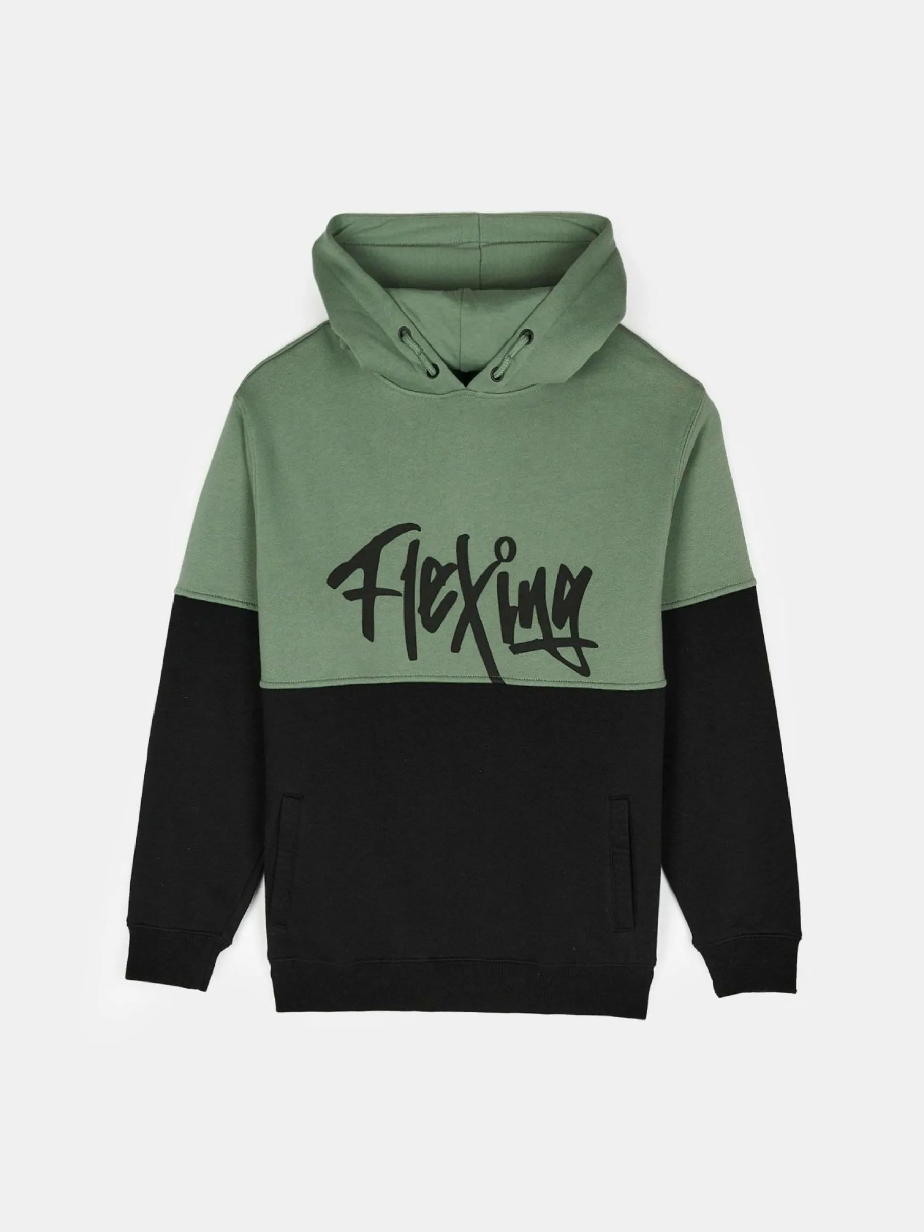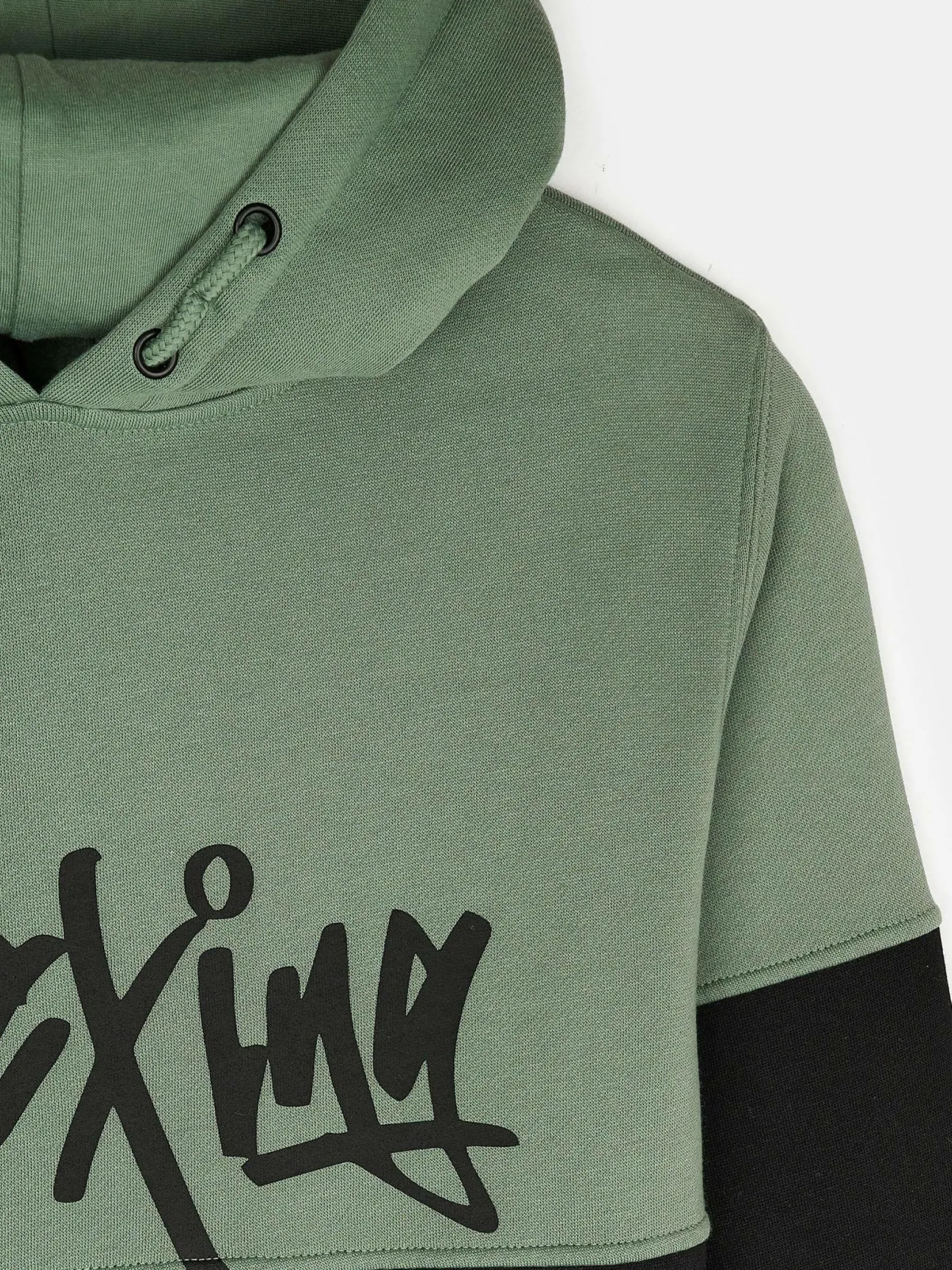 Kolor: szary, zielonyKrój: podstawowyTyp: bluzaRekaw: długi rękawDługość: krótkiPattern style: colour block, z na…
