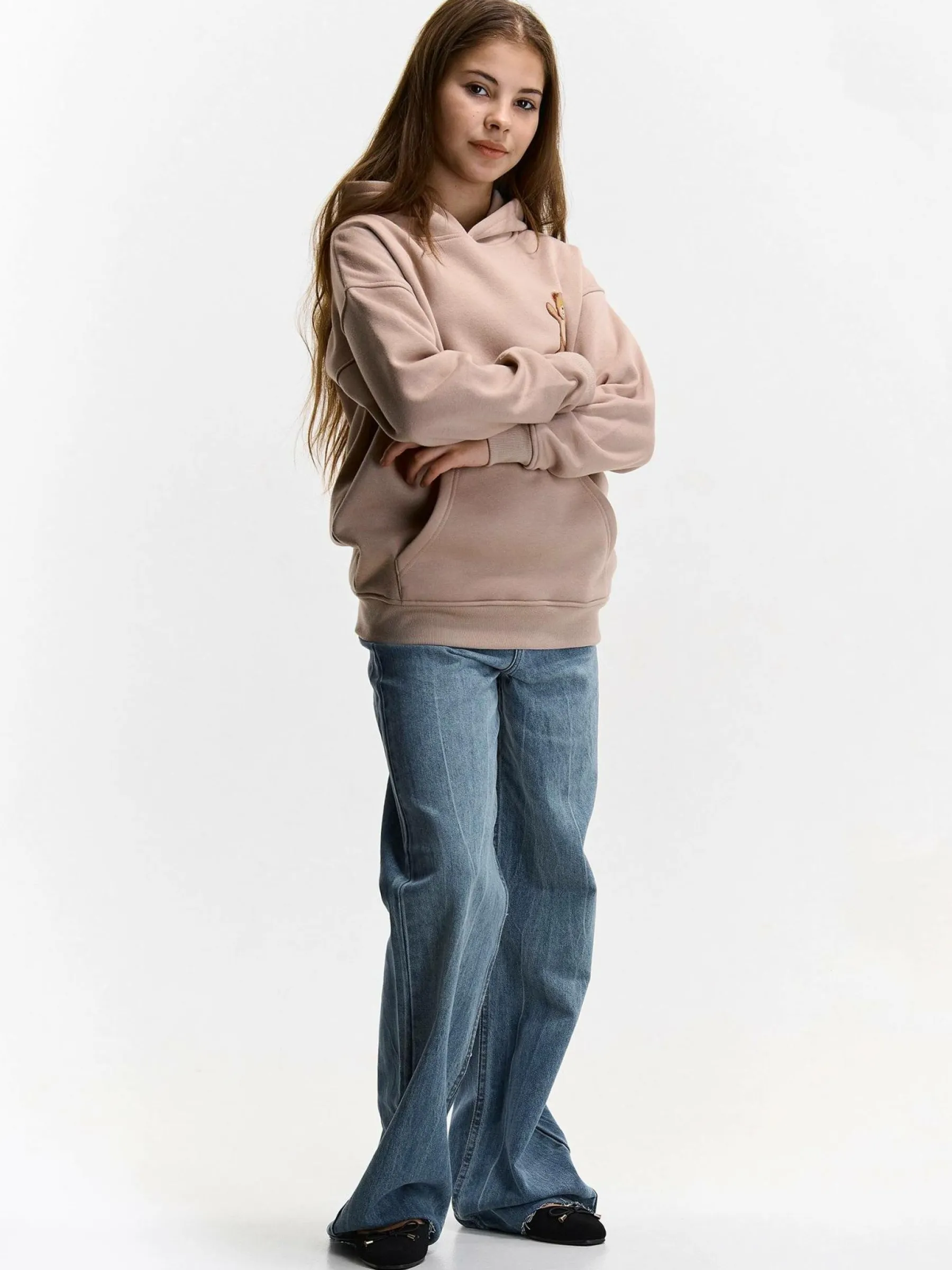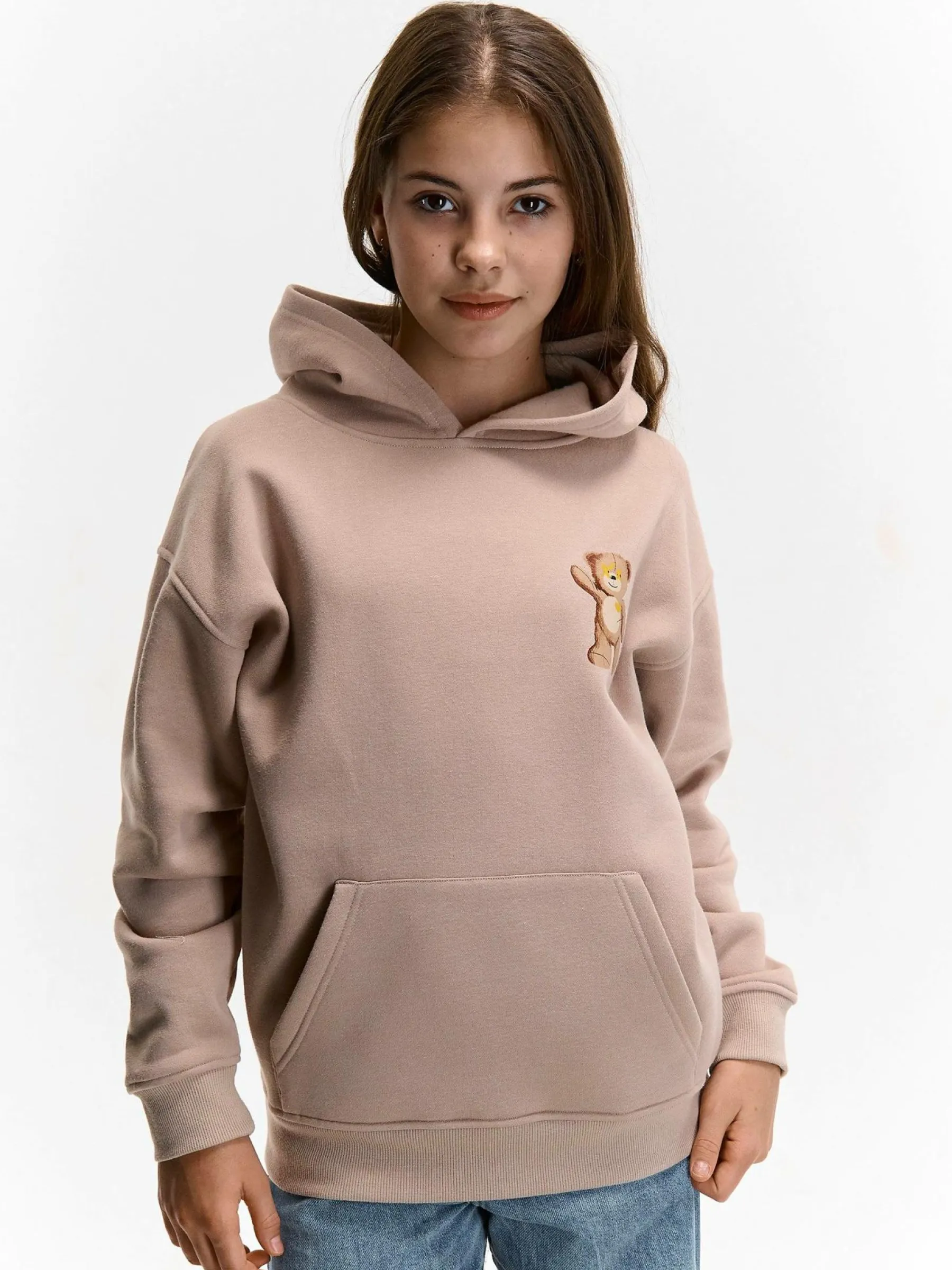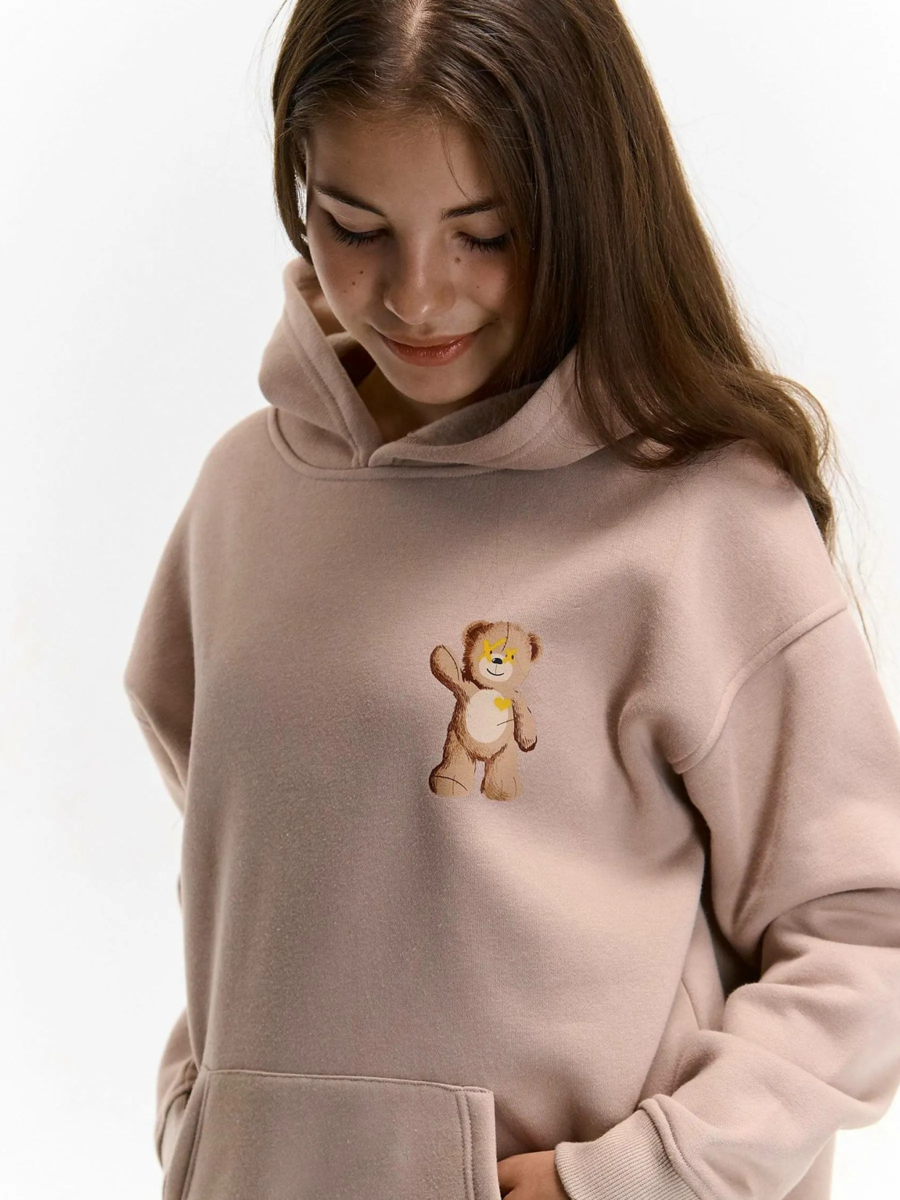 Kolor: beżowyKrój: podstawowyTyp: bluzaRekaw: długi rękawDługość: krótkiPattern style: z nadrukiemDetal: bluza z…