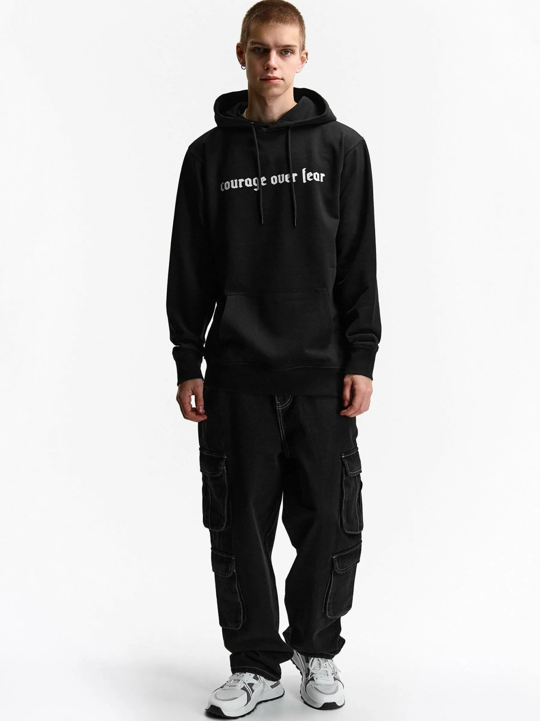 Kolor: czarnyKrój: podstawowyTyp: bluzaRekaw: długi rękawDługość: krótkiPattern style: z nadrukiemDetal: bluza z …