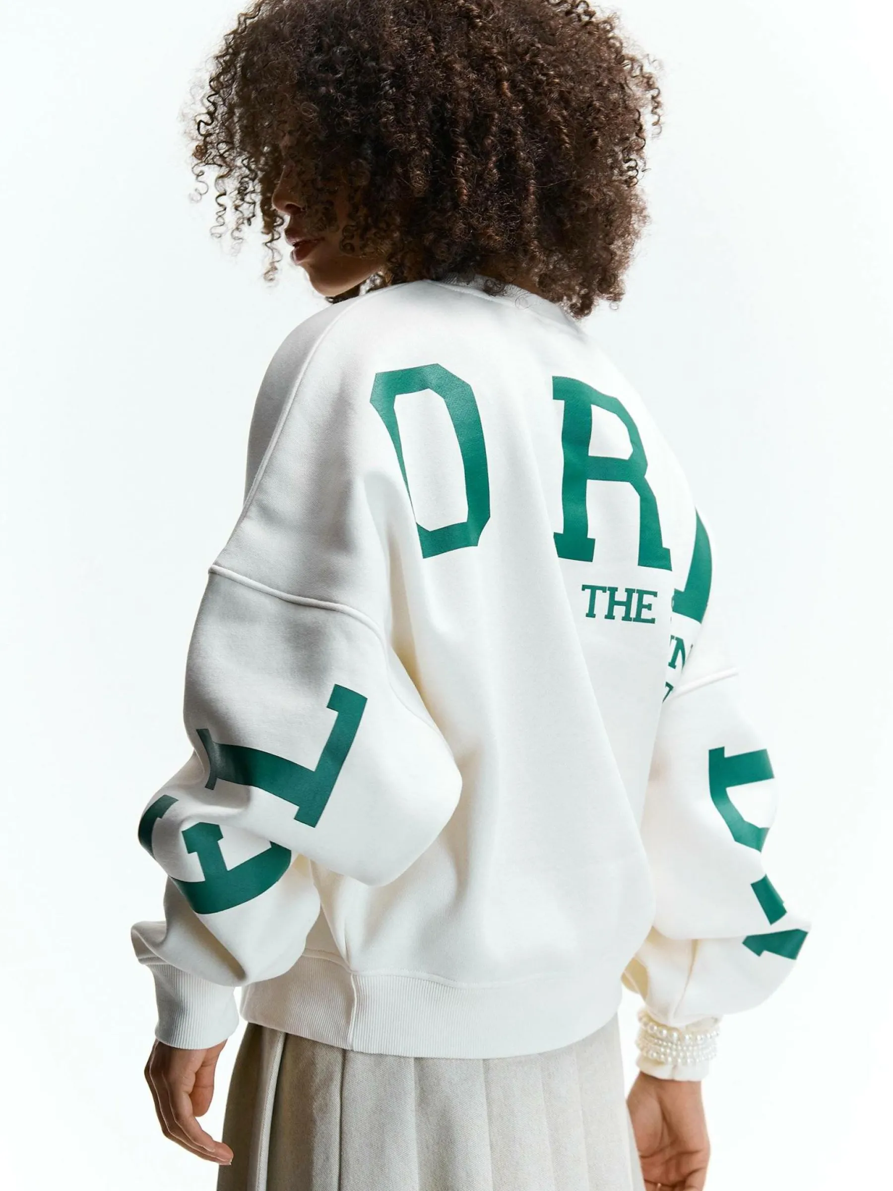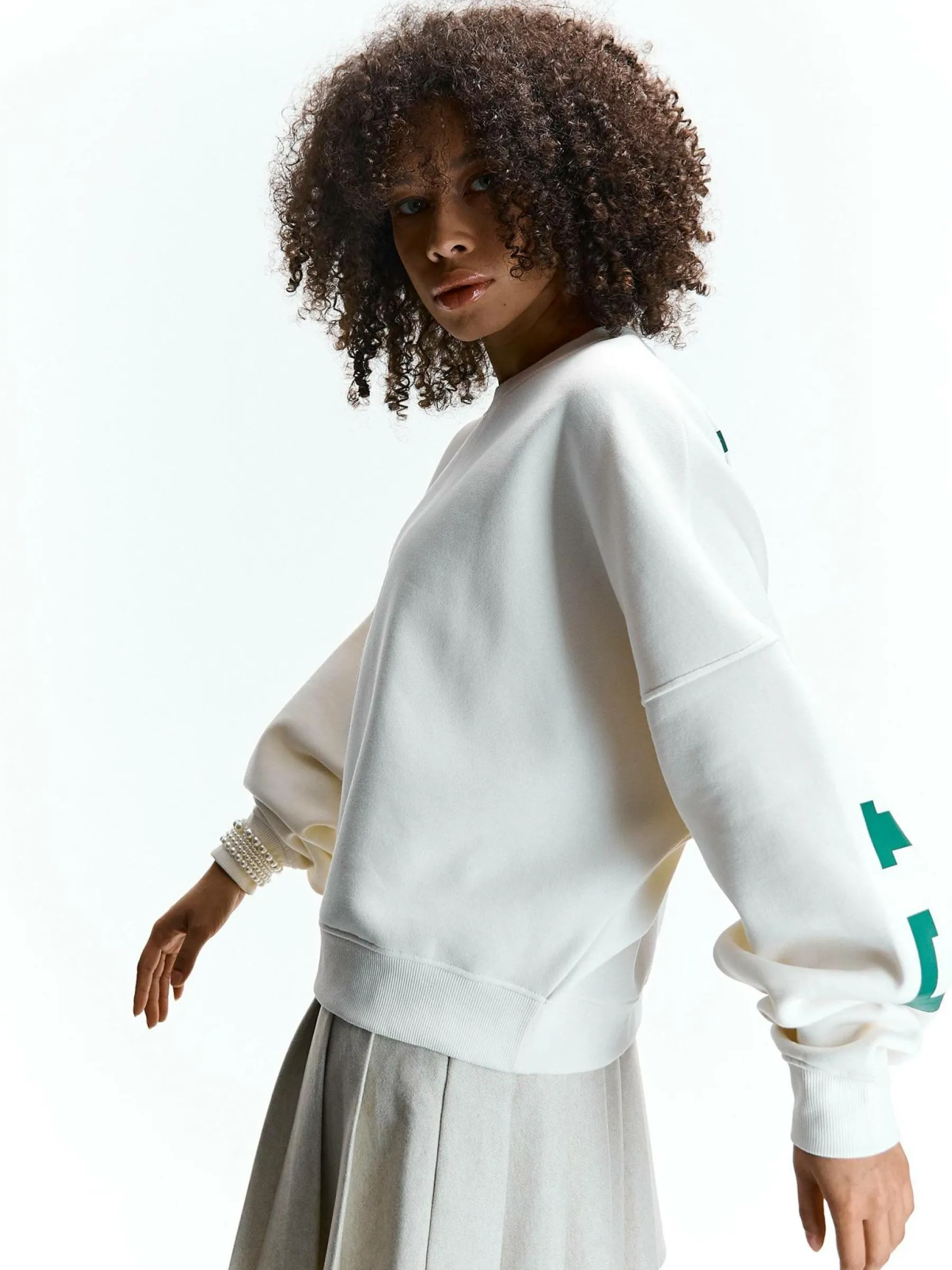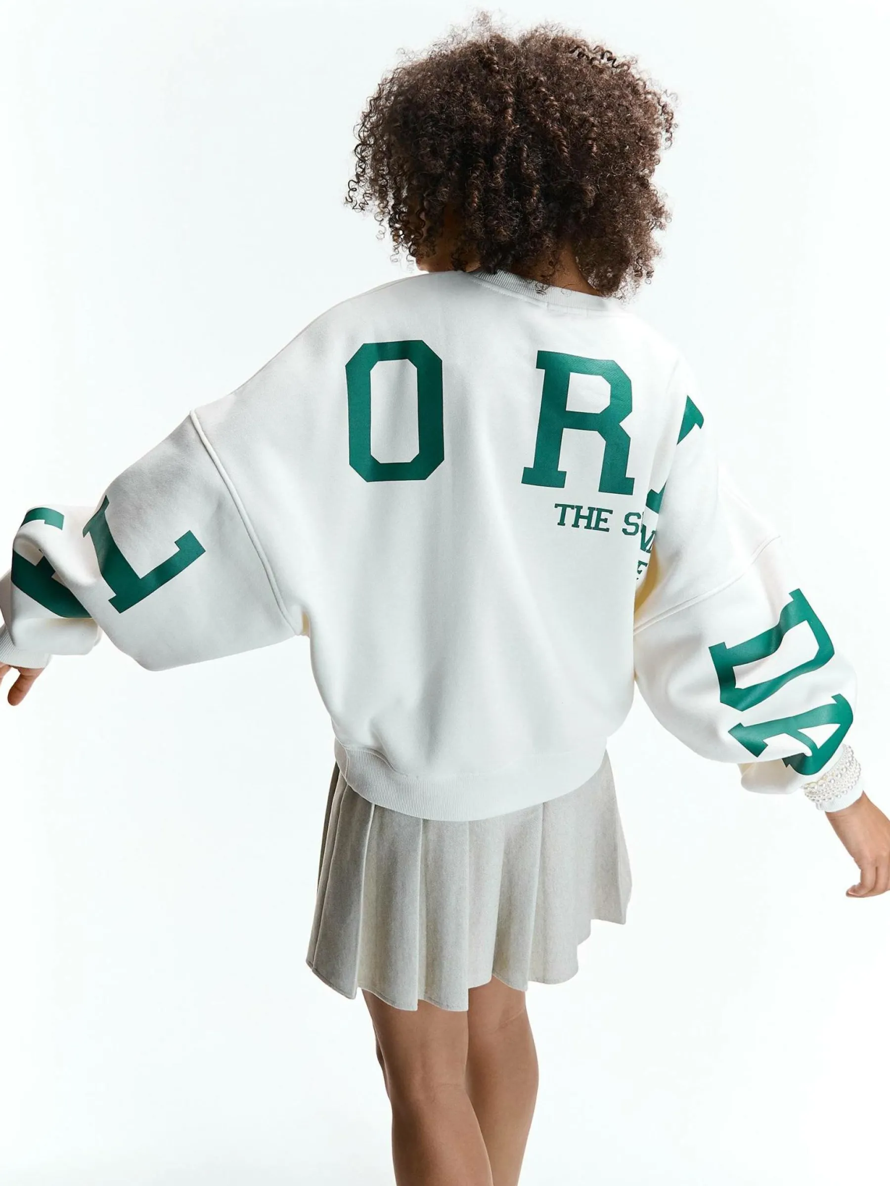 Kolor: białyKrój: oversizedTyp: bluzaRekaw: długi rękawDługość: krótkiPattern style: z napisemDetal: nad głową…
