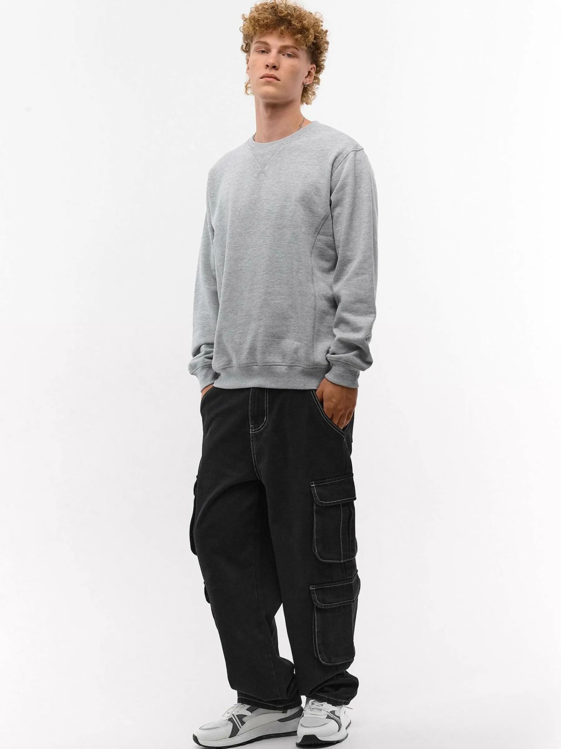 Kolor: szaryKrój: regularTyp: bluzaRekaw: długi rękawDługość: krótkiPattern style: pojedynczy kolorDetal: nad gł…