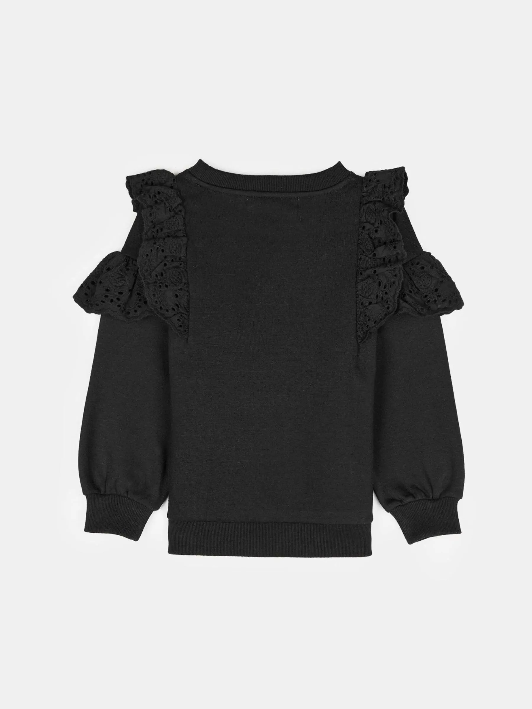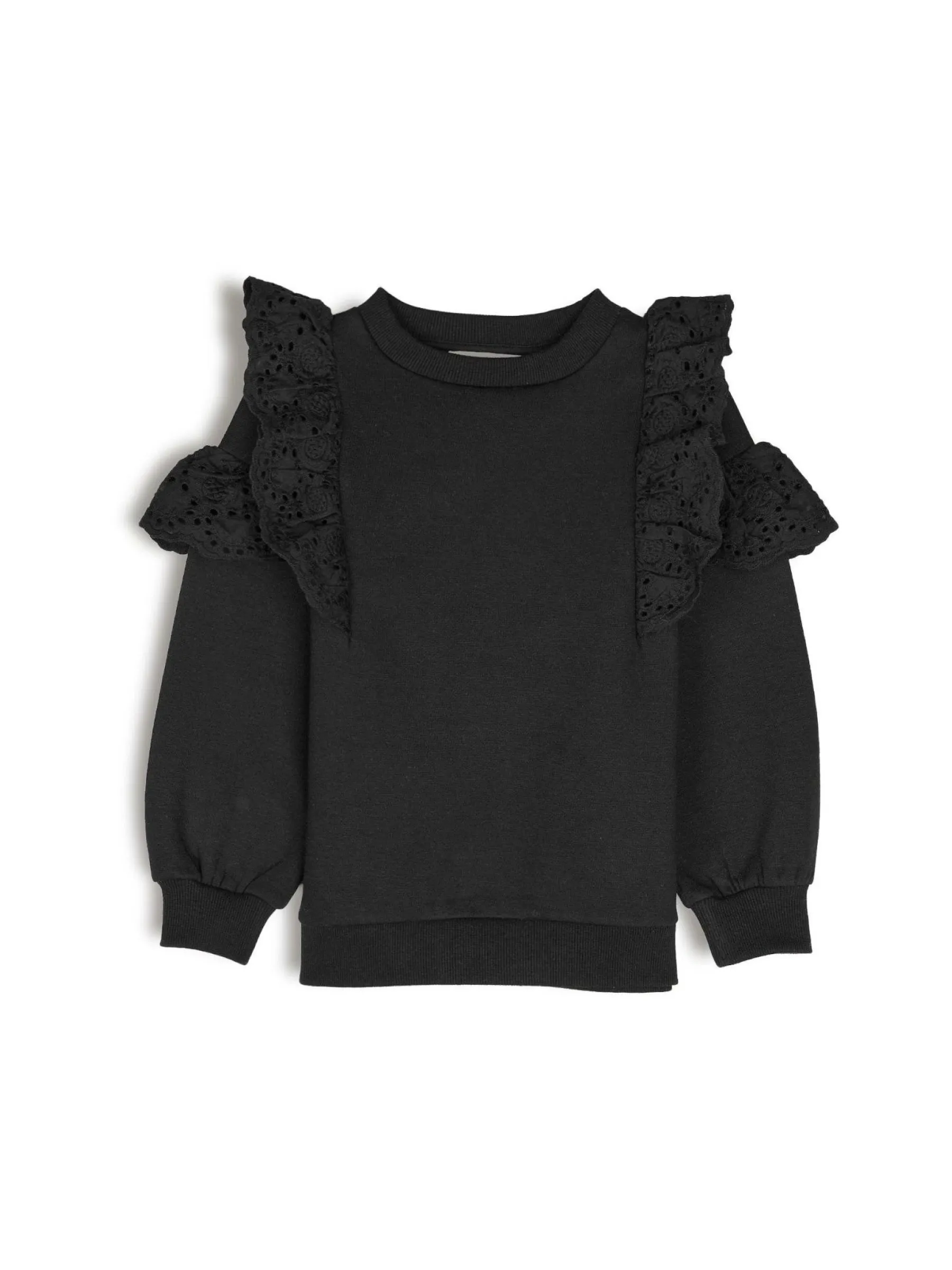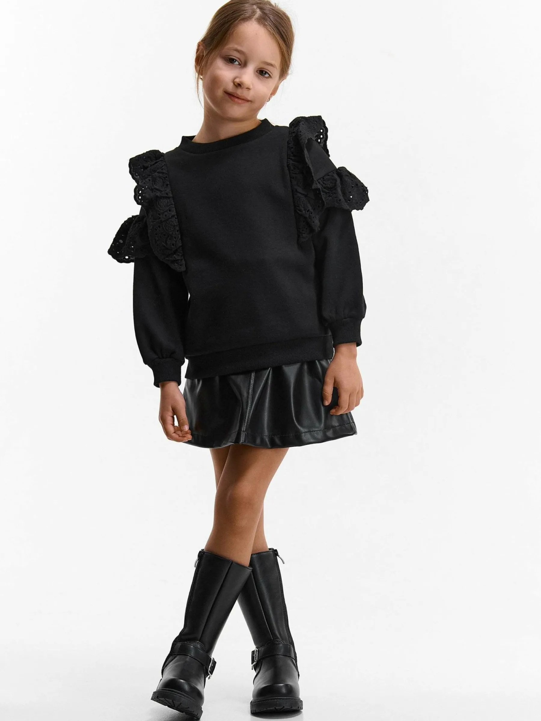 Kolor: czarnyKrój: z falbanąTyp: bluzaRekaw: długi rękawDługość: krótkiPattern style: pojedynczy kolorDetal: nad…