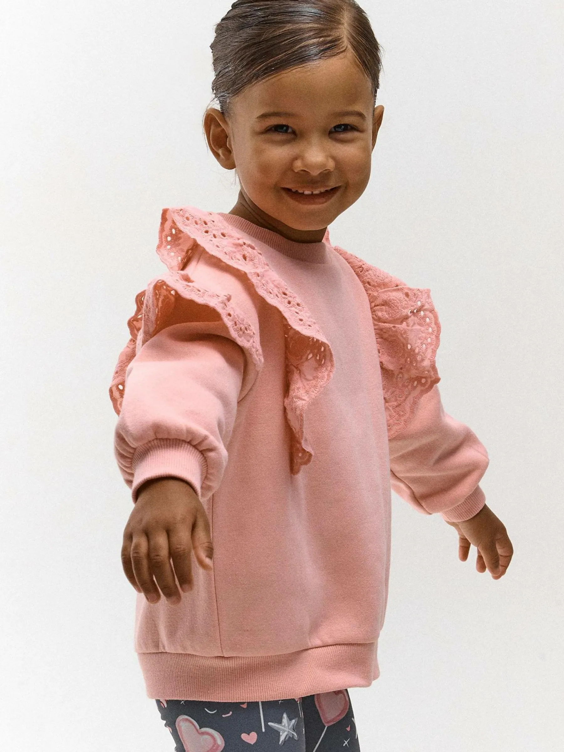 Kolor: różowyKrój: z falbanąTyp: bluzaRekaw: długi rękawDługość: krótkiPattern style: pojedynczy kolorDetal: n…