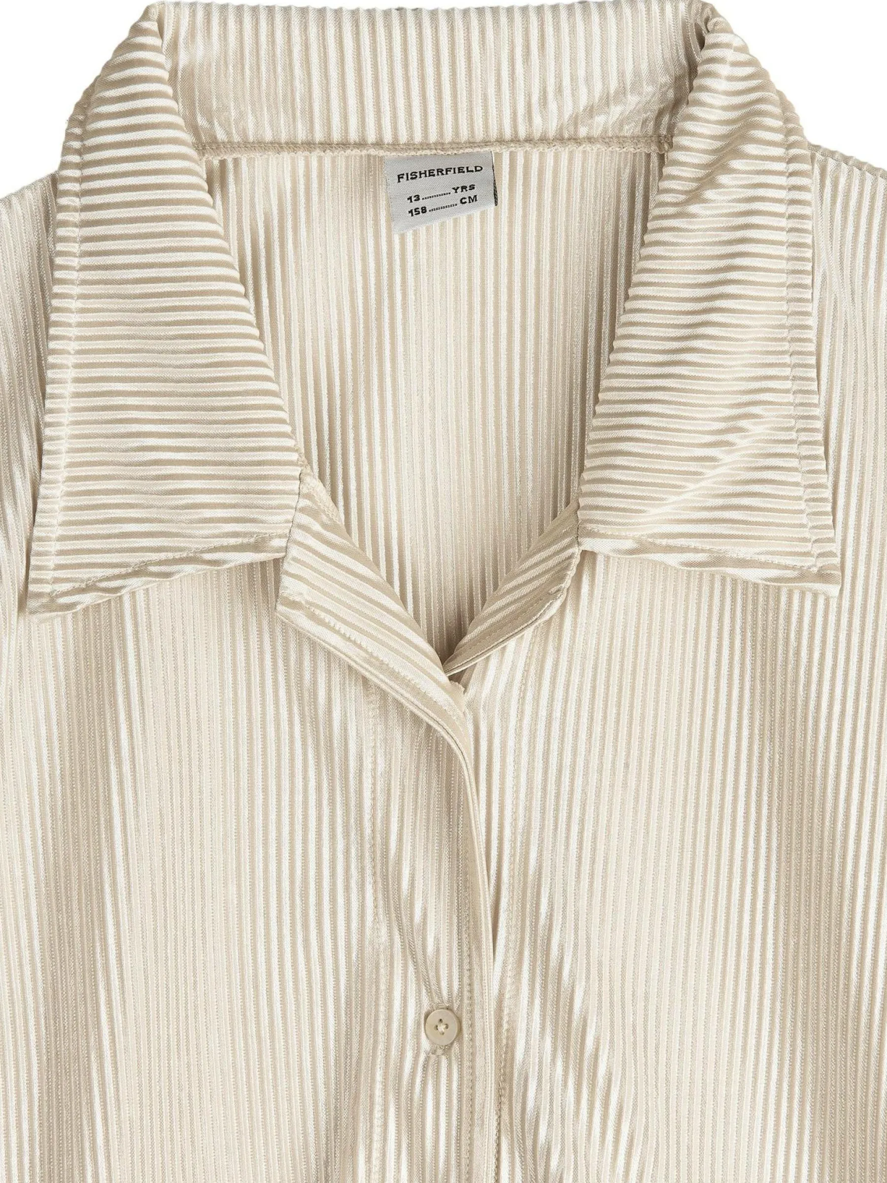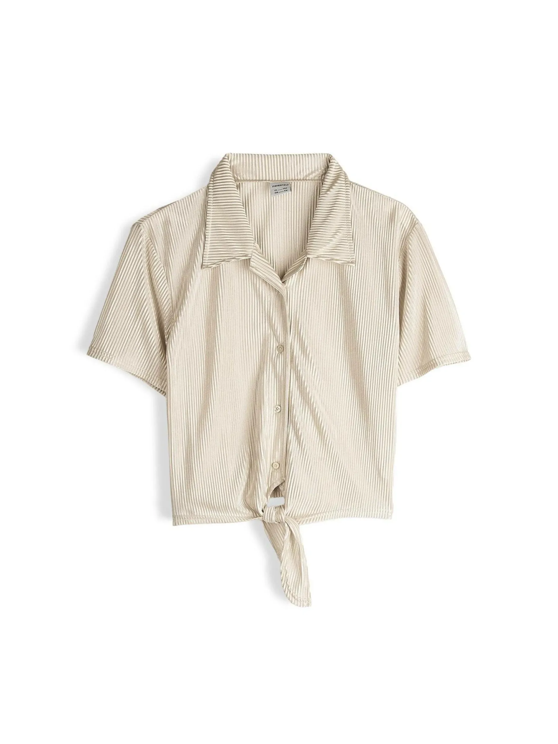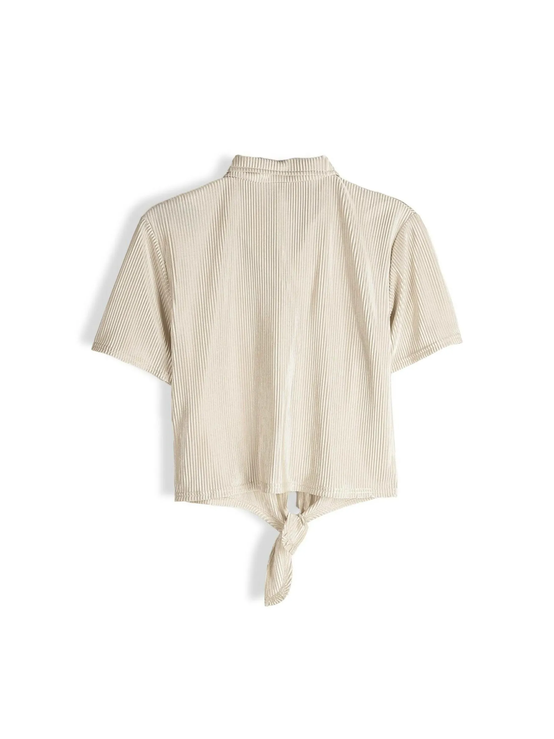 Kolor: beżowyKrój: regularTyp: bluzkaRekaw: krótki rękawDługość: krótki topPattern style: pojedynczy kolor, żeb…