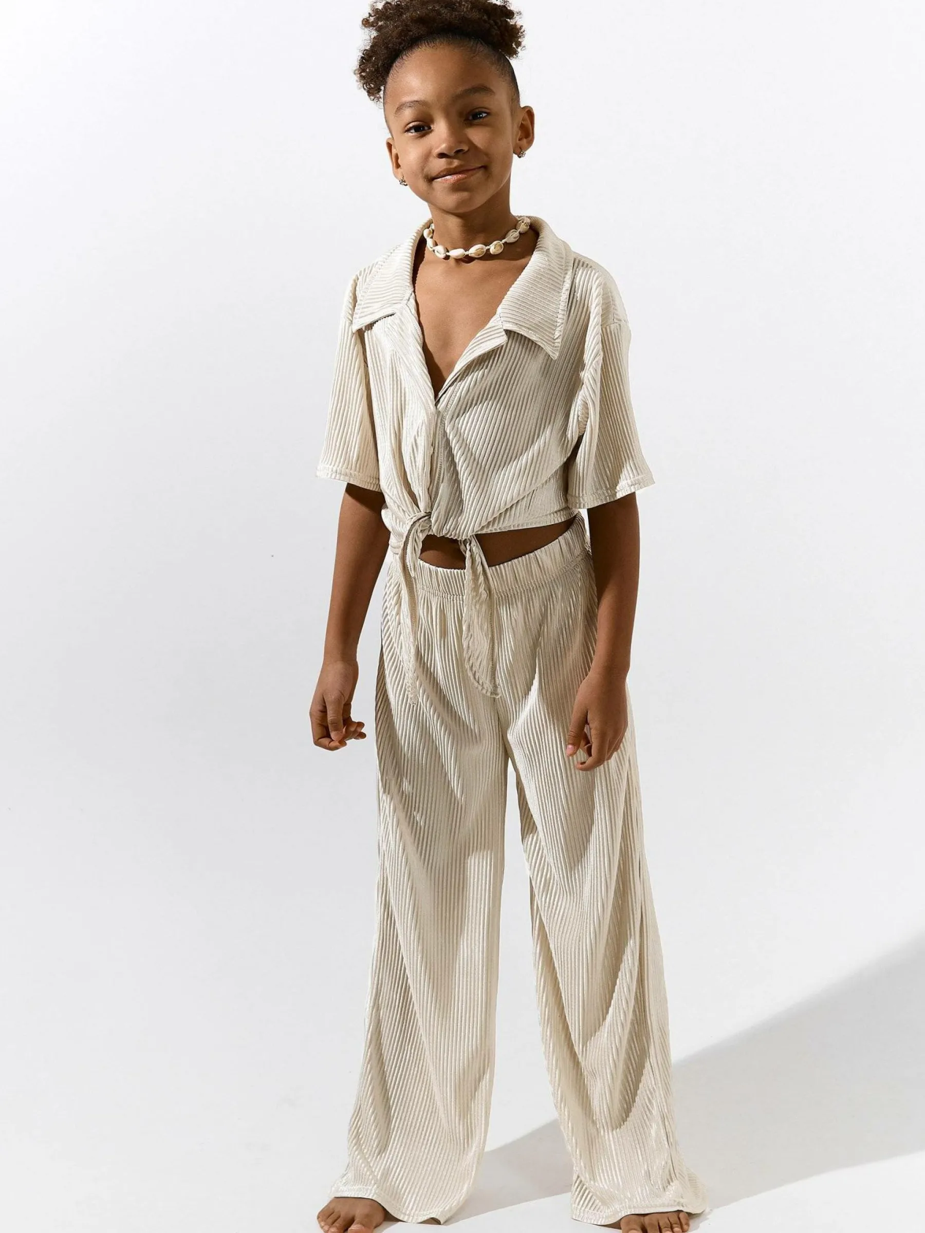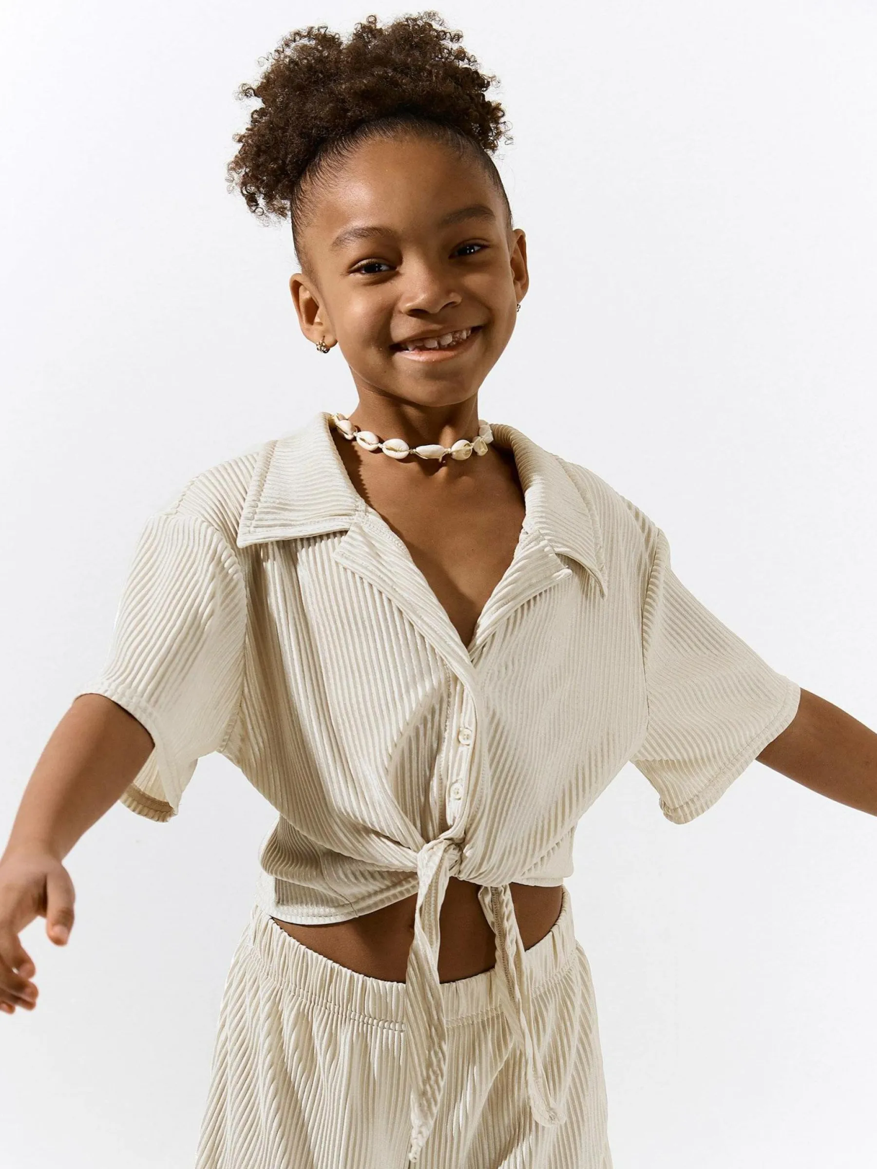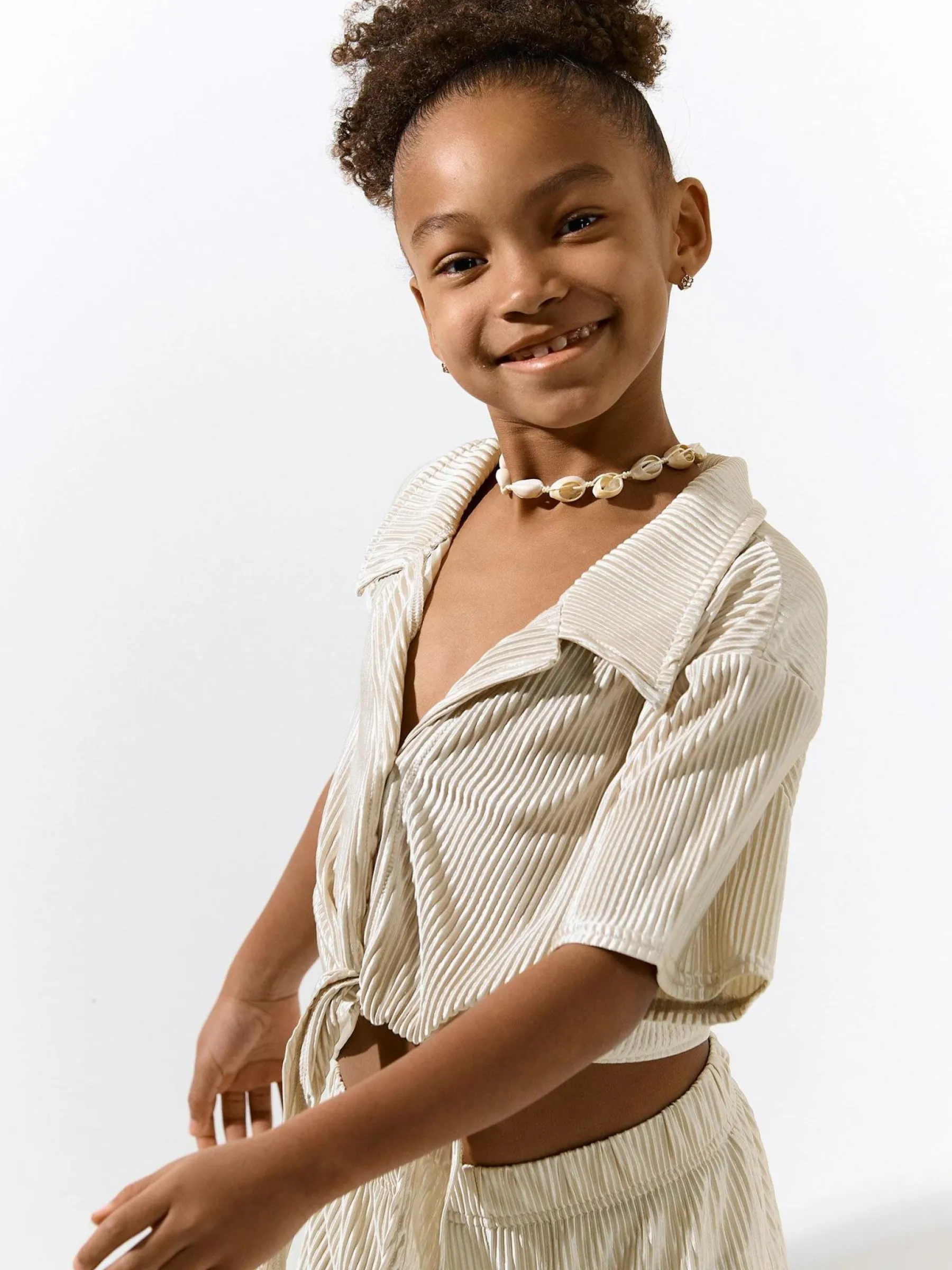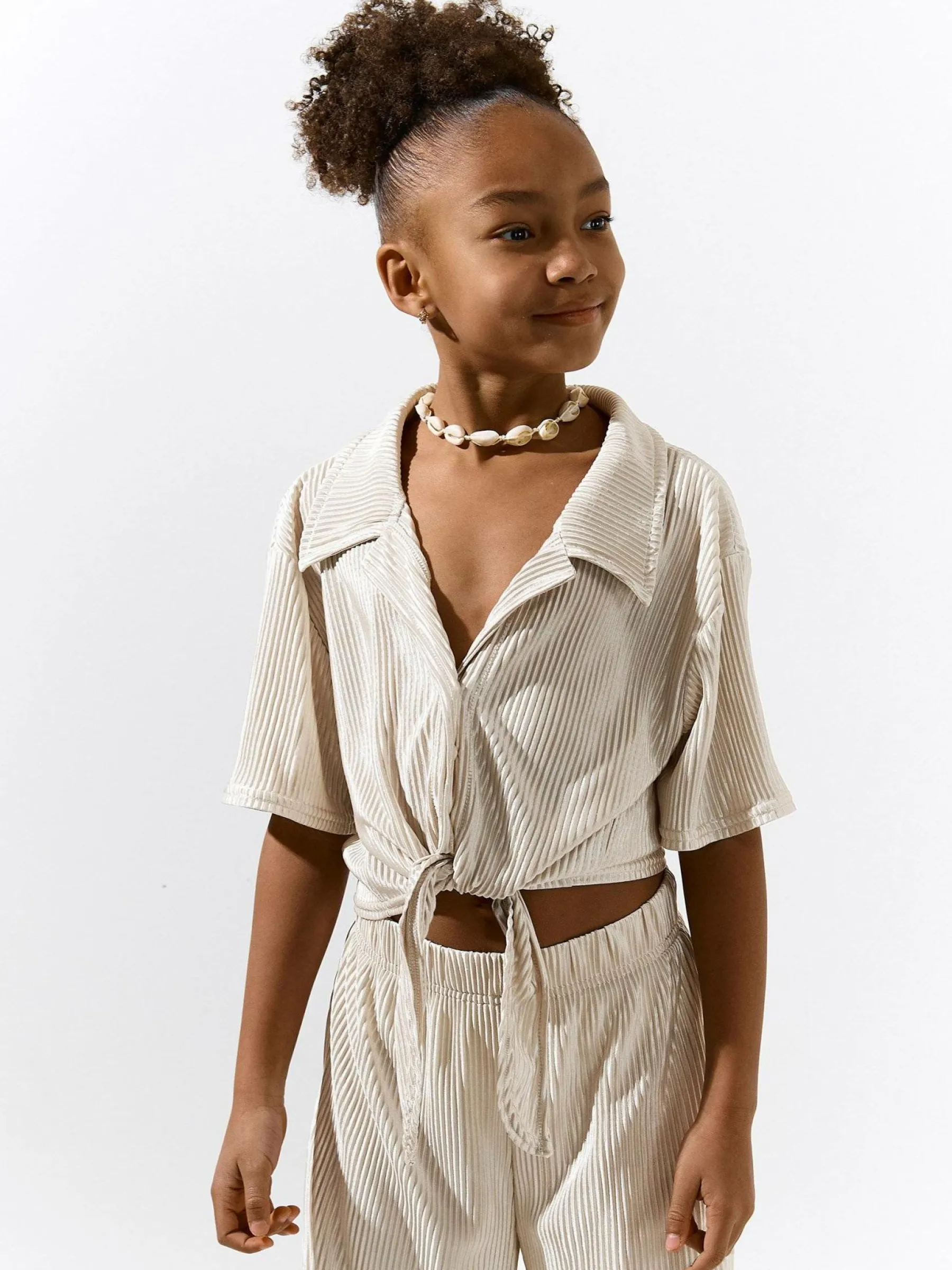 Kolor: beżowyKrój: regularTyp: bluzkaRekaw: krótki rękawDługość: krótki topPattern style: pojedynczy kolor, żeb…