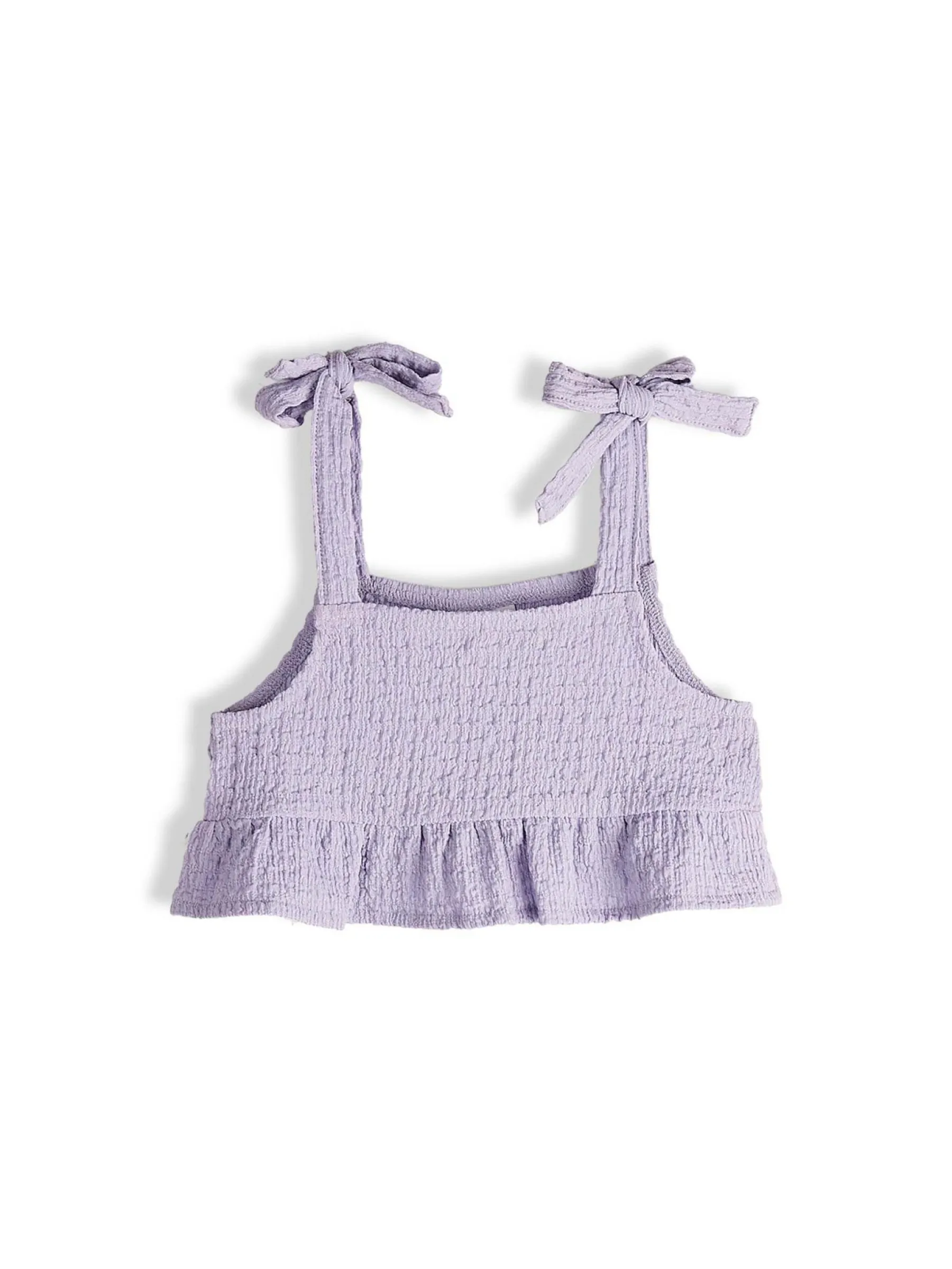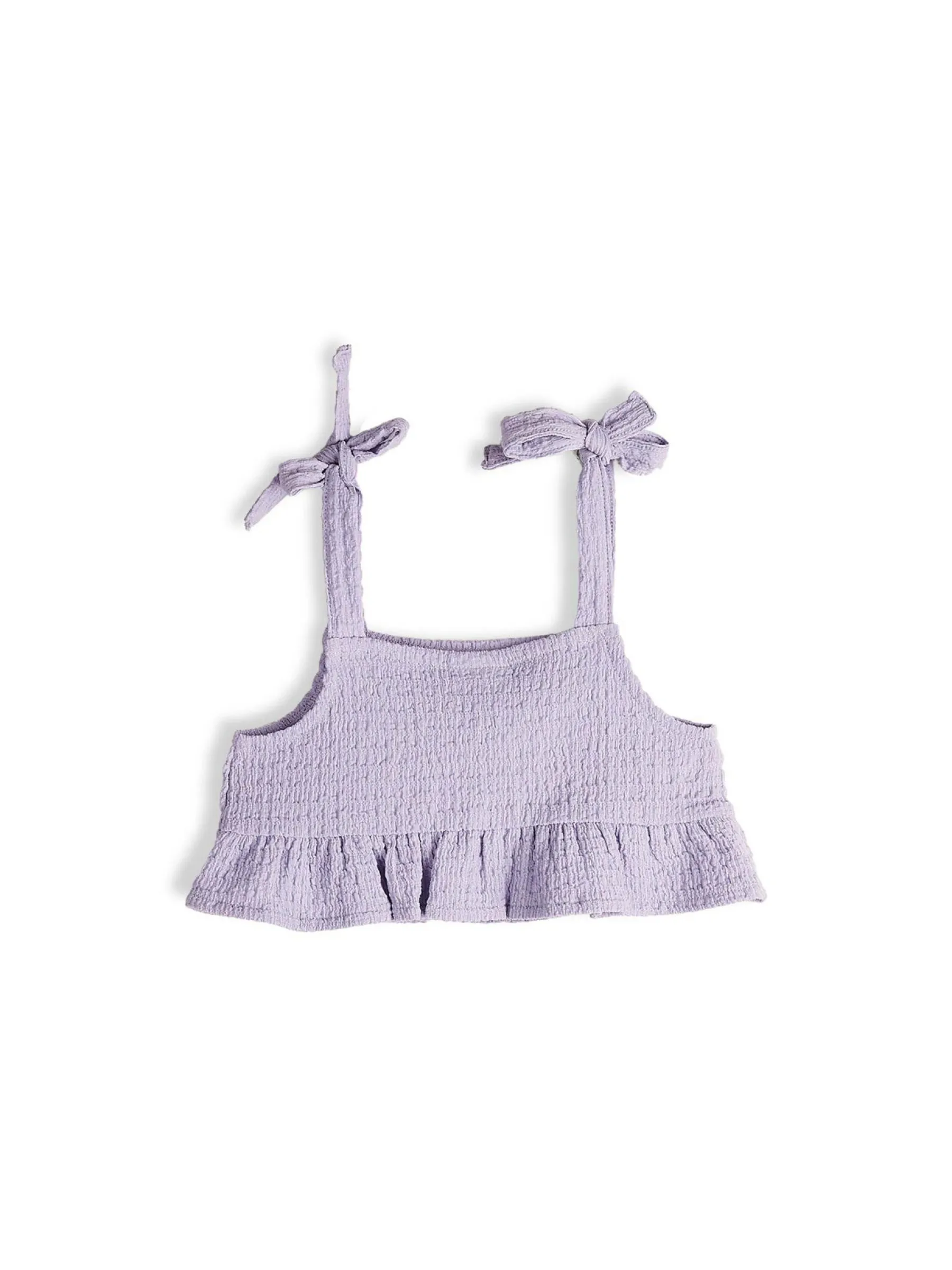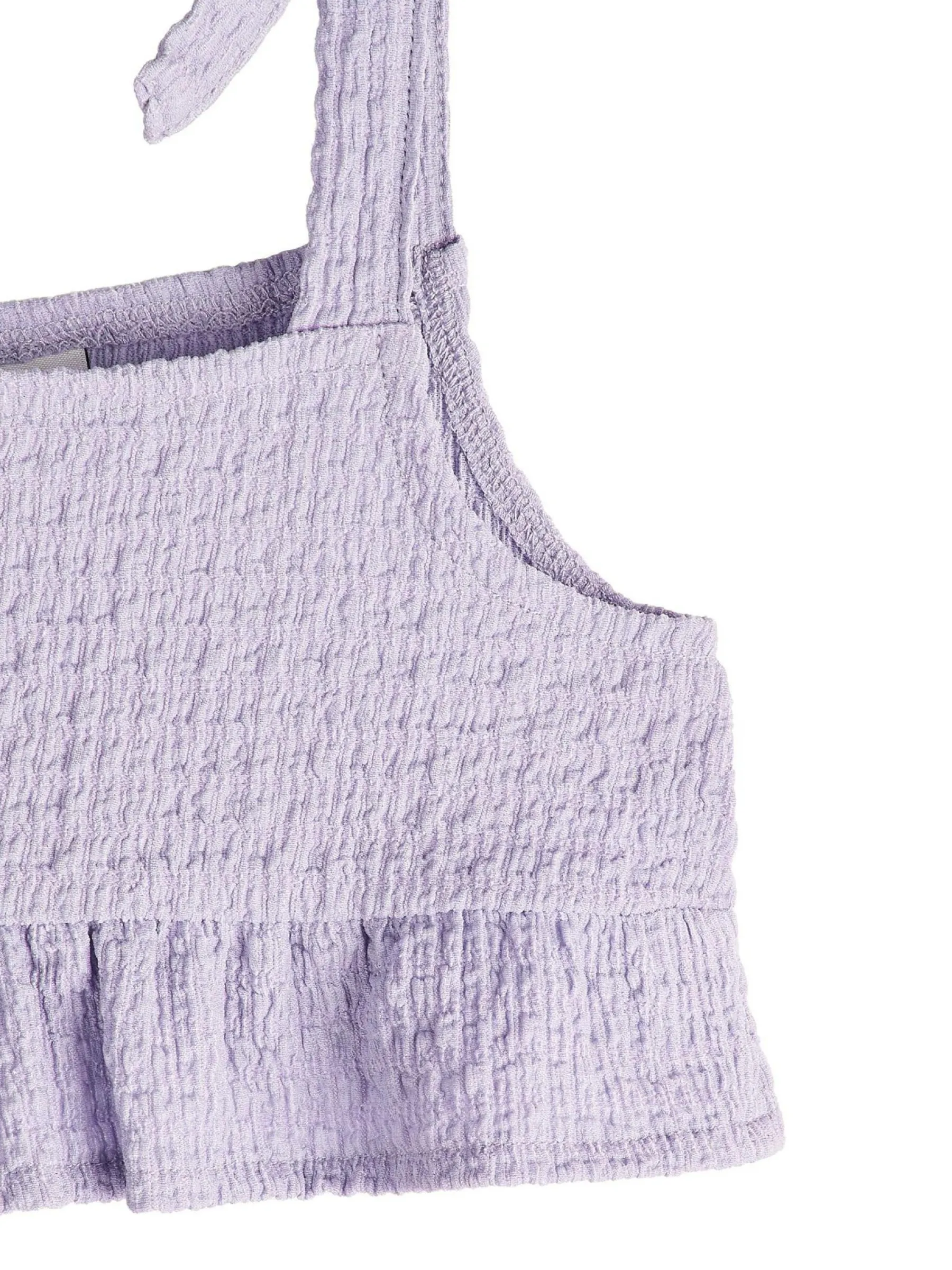 Kolor: purpurowyKrój: z falbanąTyp: top, bluzkaRekaw: bez rękawówDługość: krótki topPattern style: pojedynczy ko…