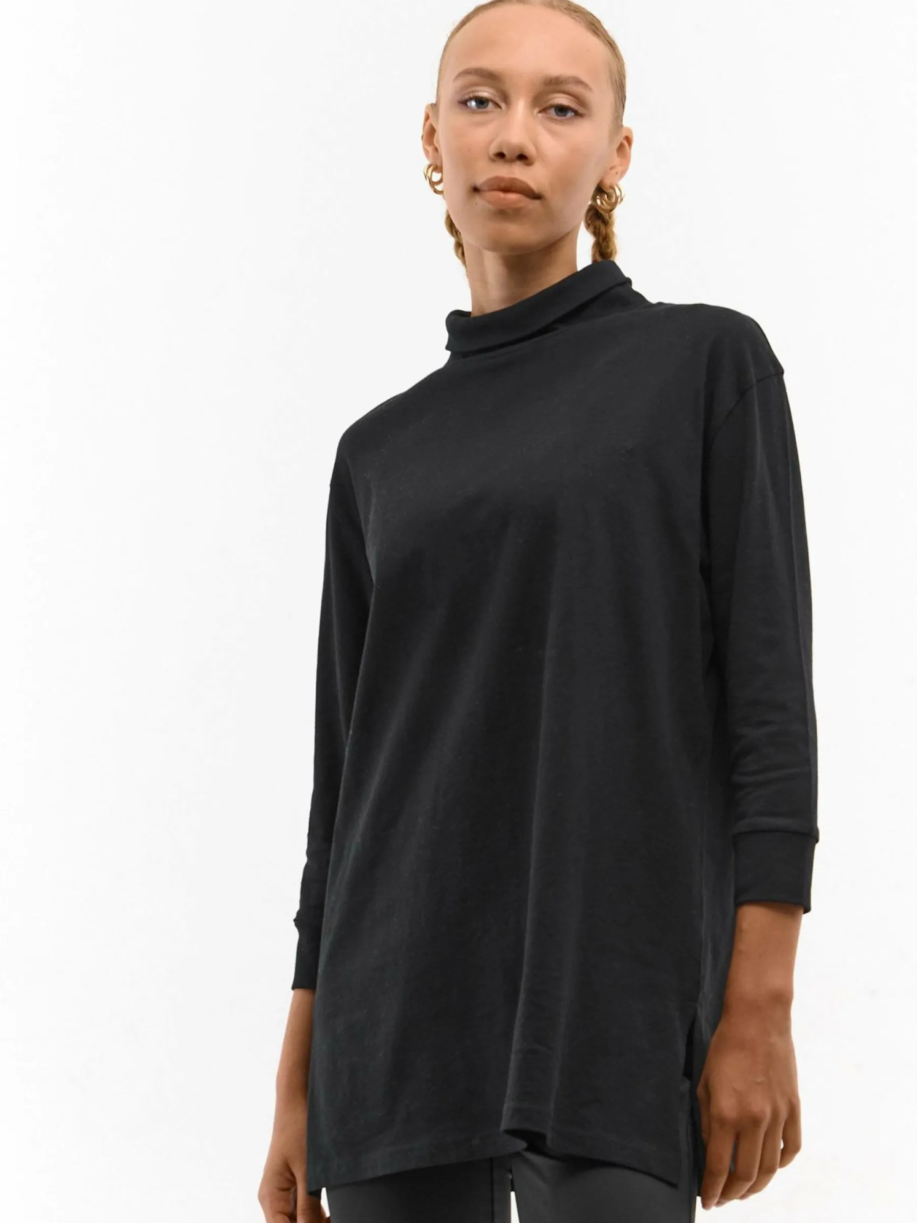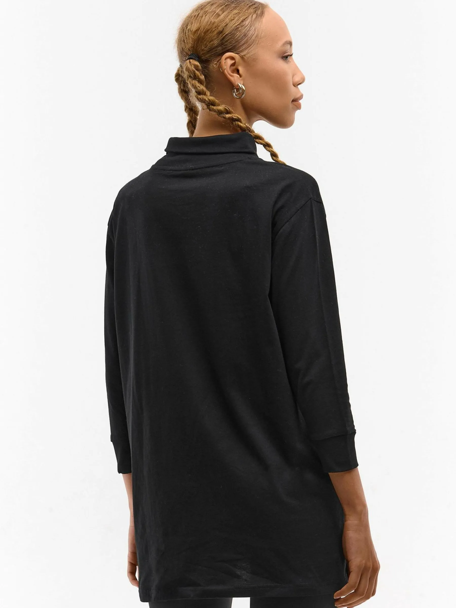 Kolor: czarnyKrój: regularTyp: topRekaw: rękaw 3/4Długość: dlugiePattern style: pojedynczy kolorDetal: nad głowąM…