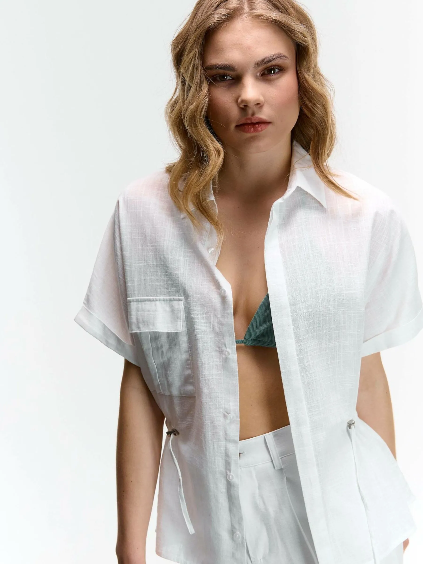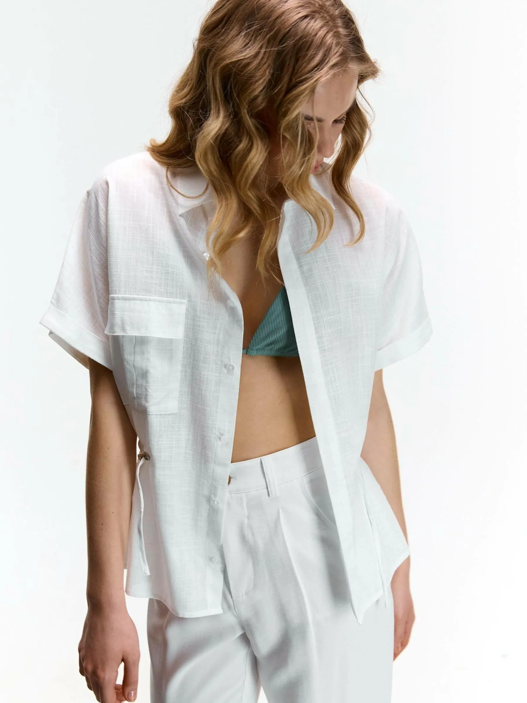 Kolor: białyKrój: podstawowyTyp: bluzkaRekaw: krótki rękawDługość: krótkiPattern style: pojedynczy kolorDetal: n…