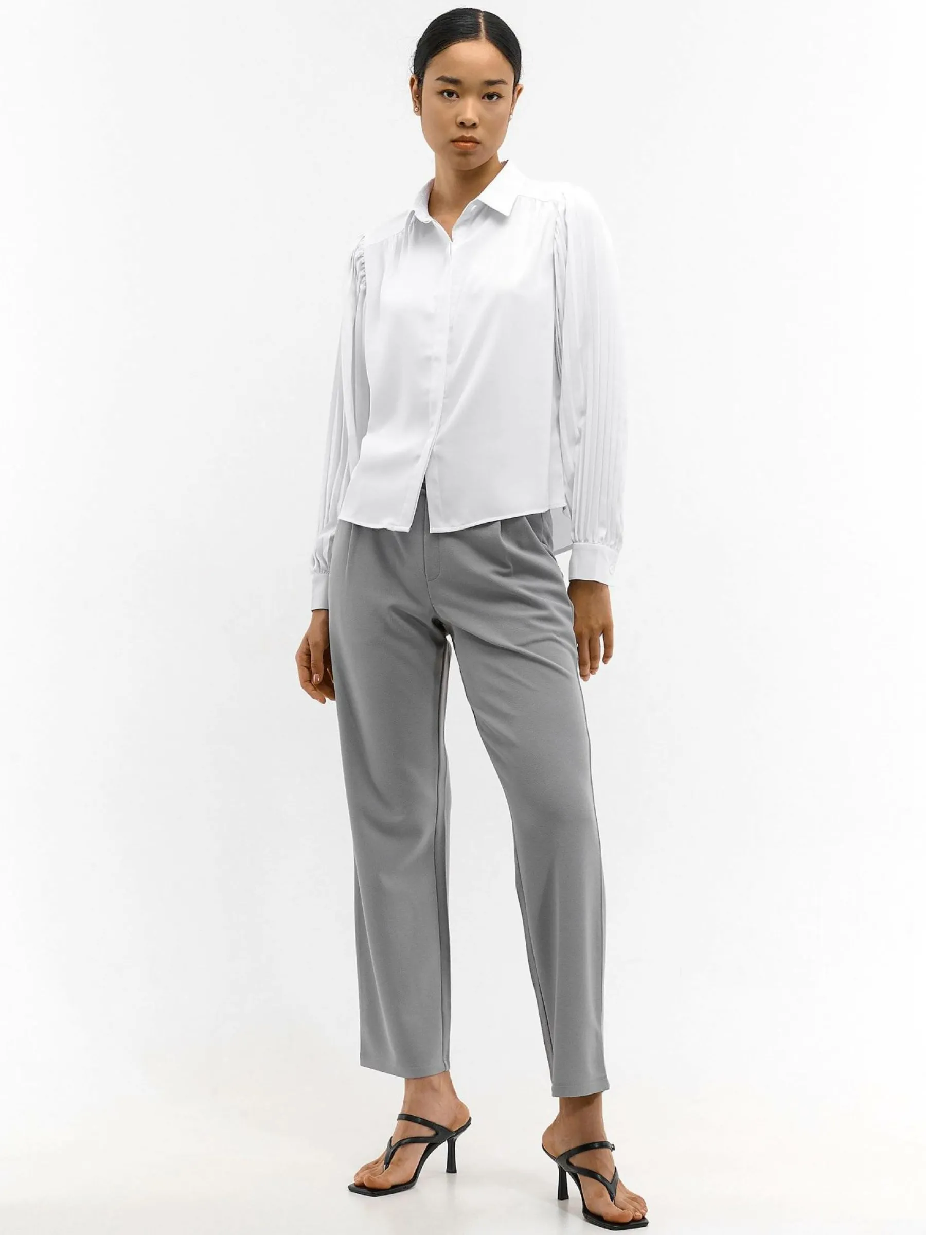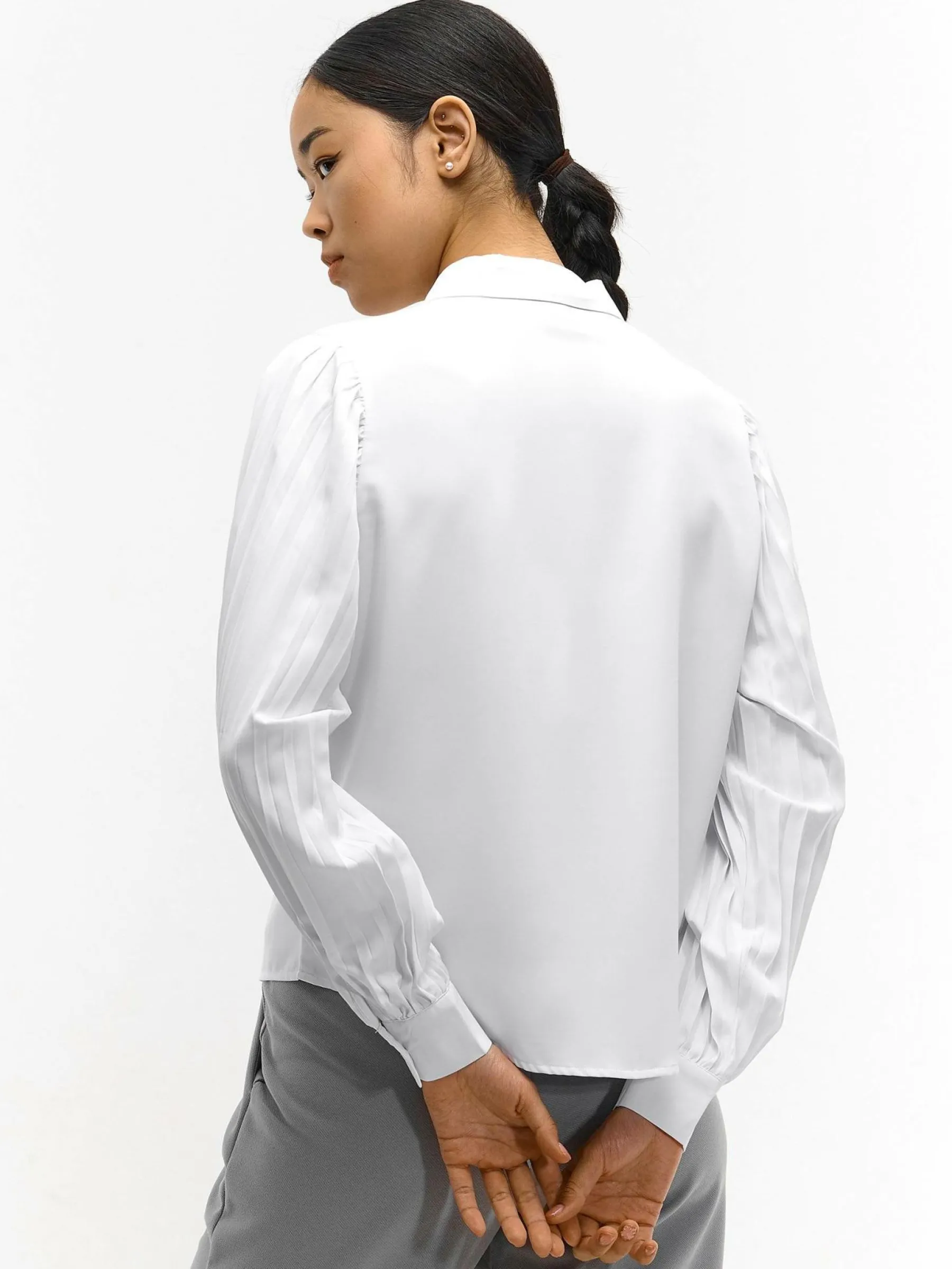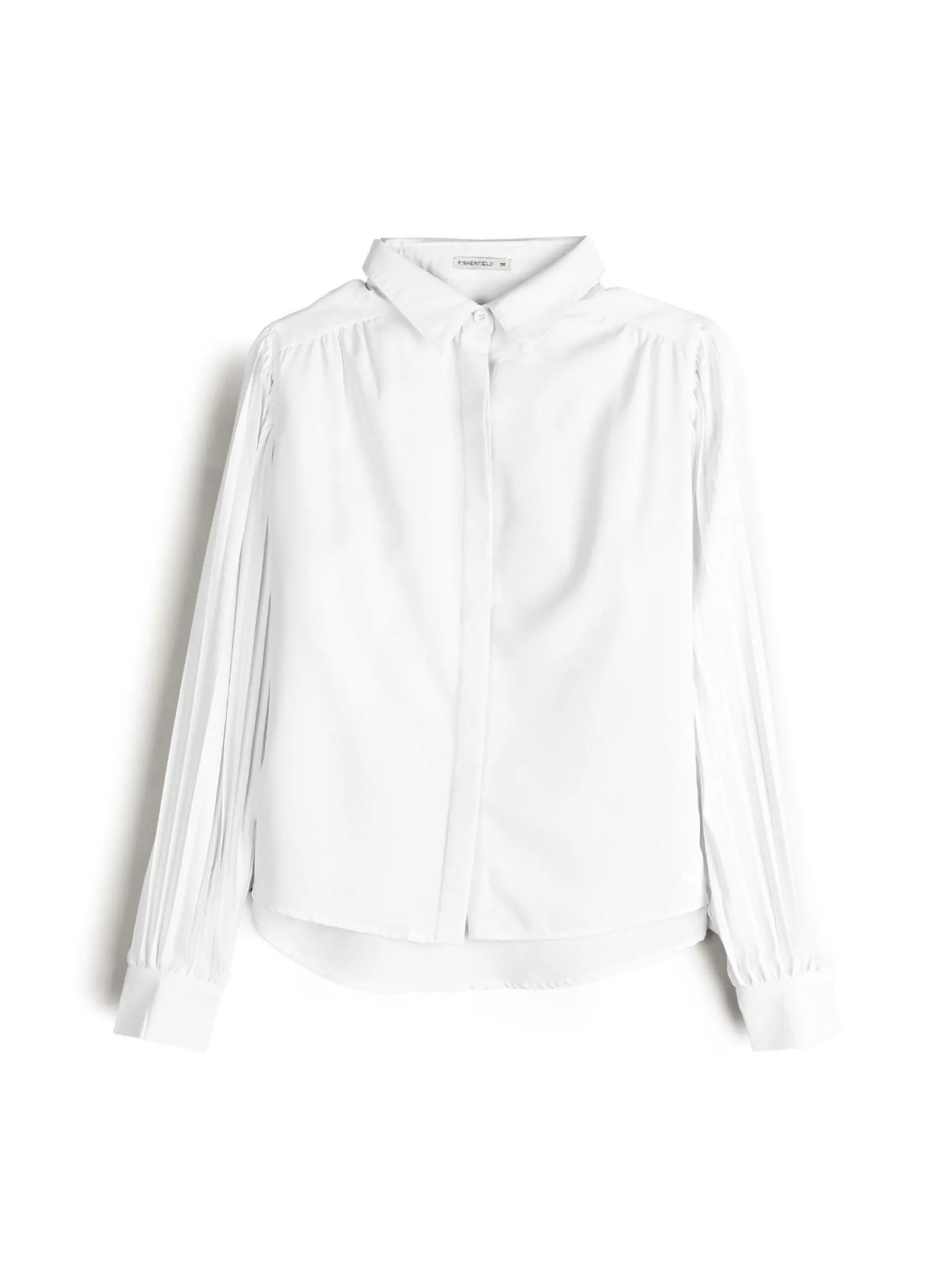 Kolor: białyKrój: podstawowyTyp: bluzkaRekaw: długi rękawDługość: krótkiPattern style: pojedynczy kolorDetal: na…