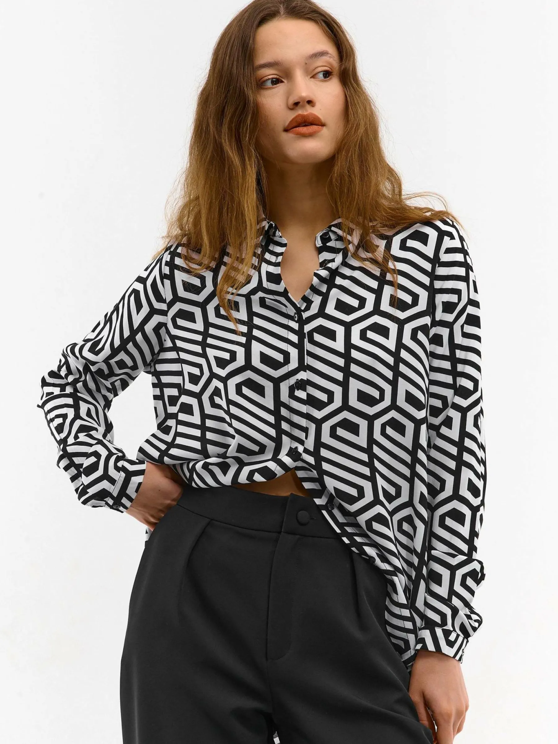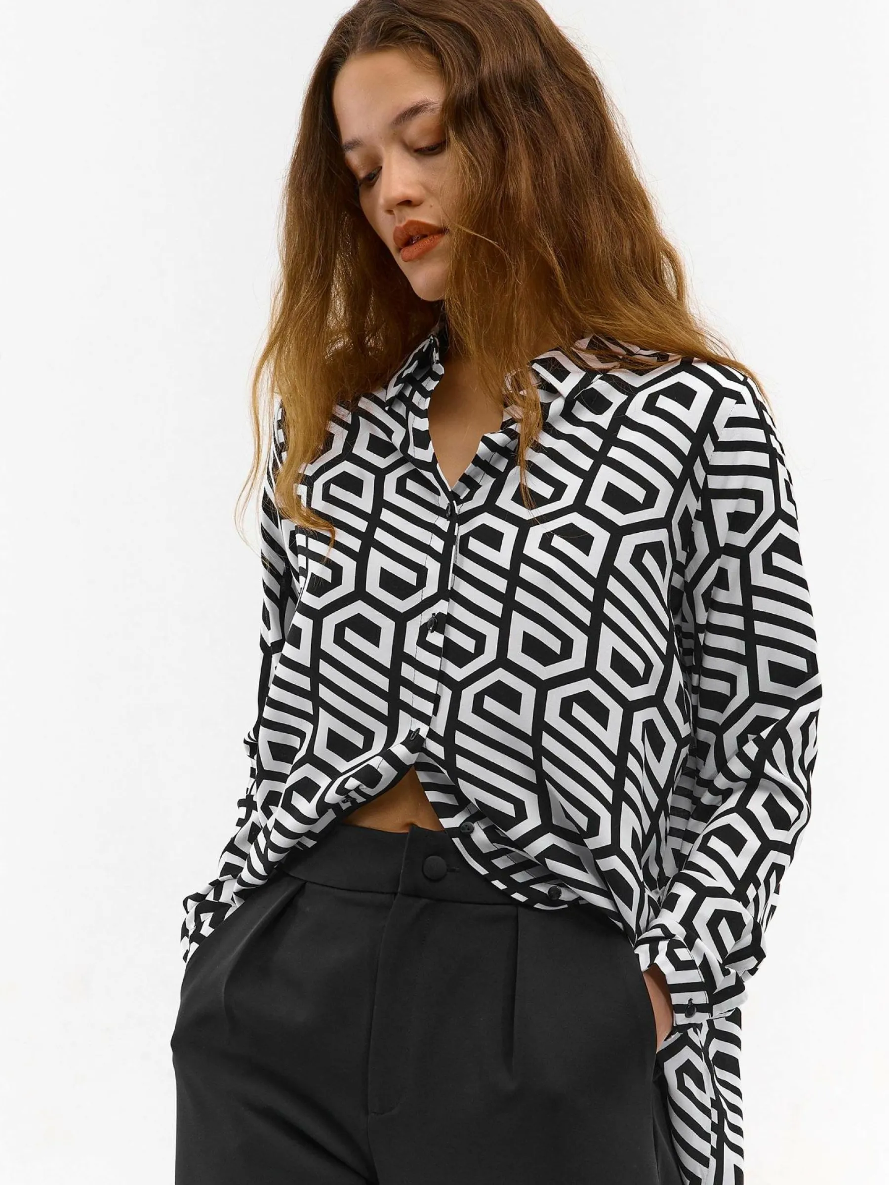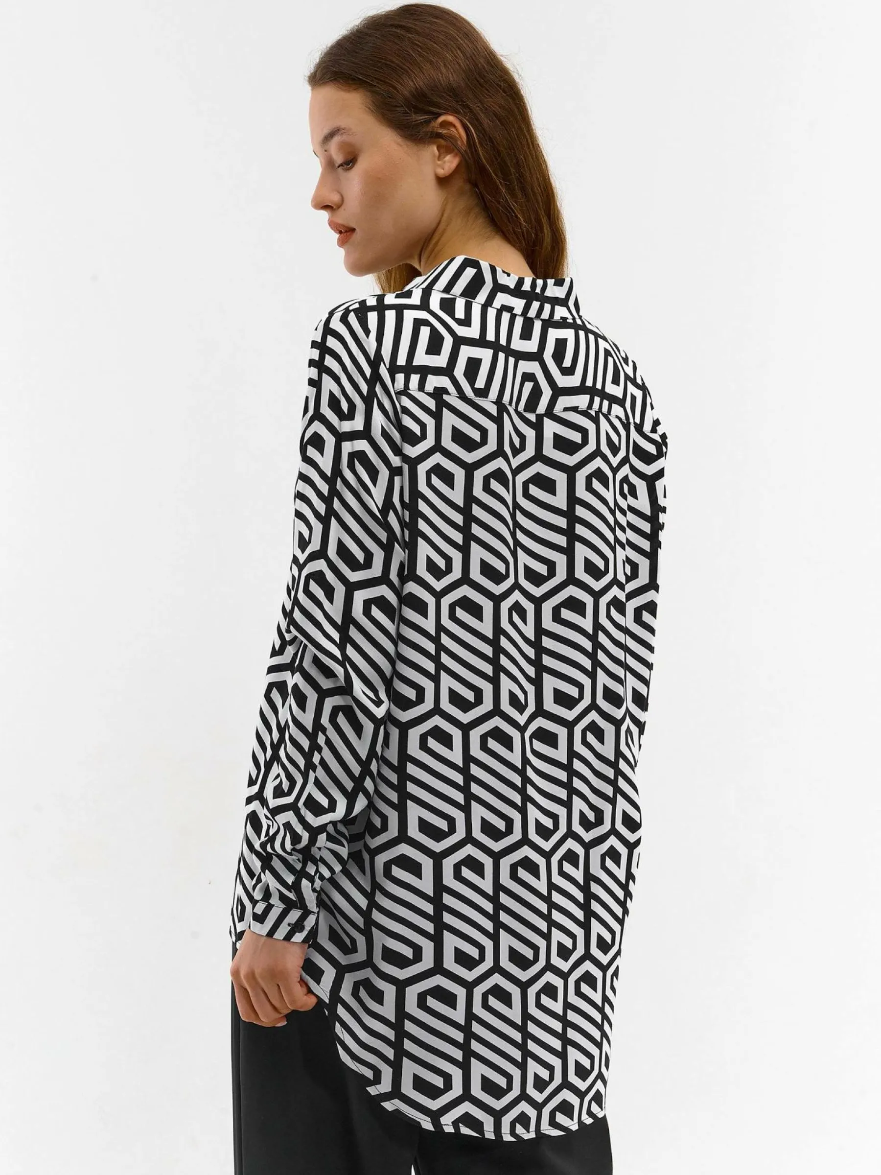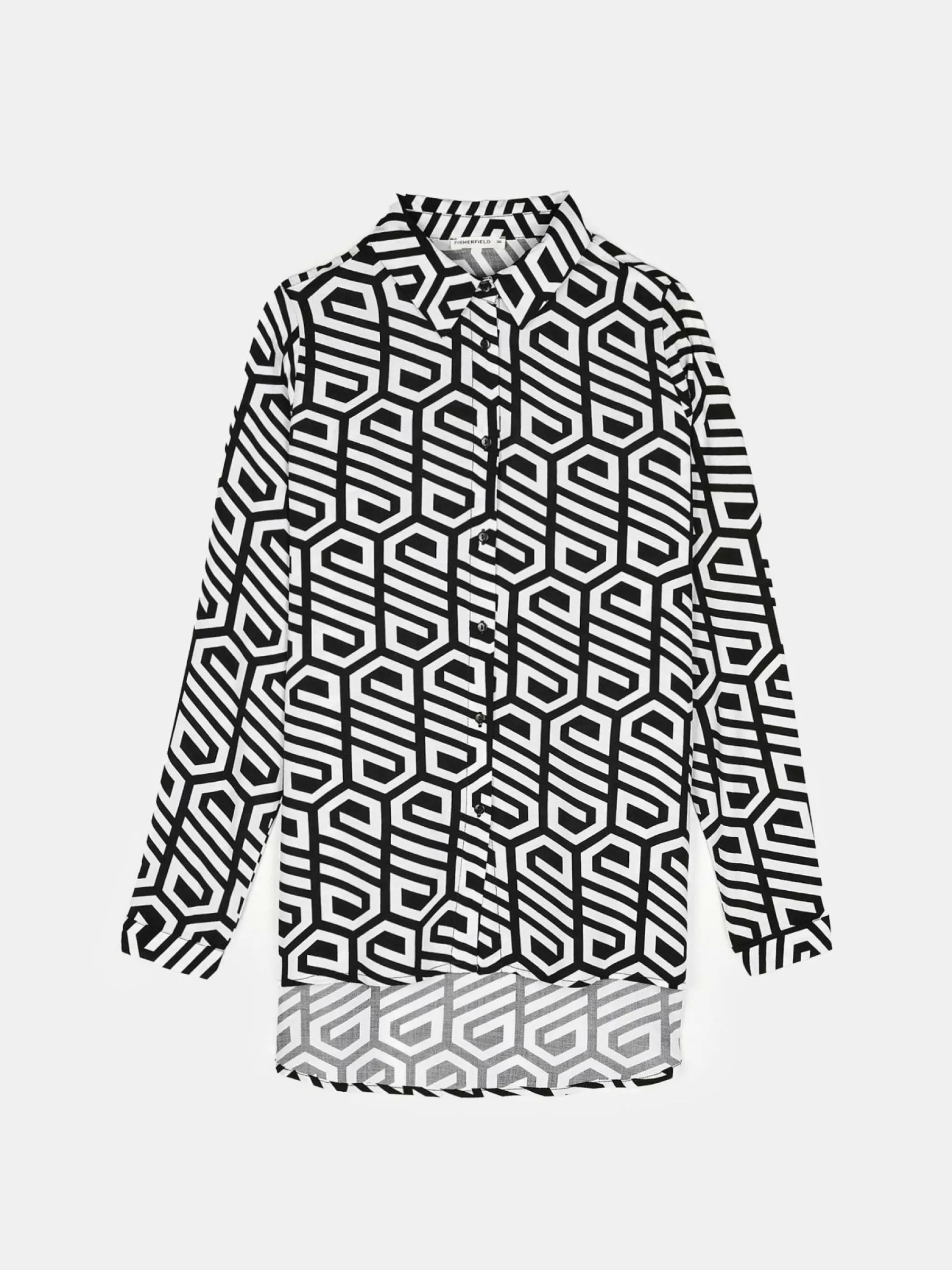 Kolor: białyKrój: asymetryczneTyp: bluzkaRekaw: długi rękawDługość: dlugiePattern style: wzorzysteDetal: na guzik…