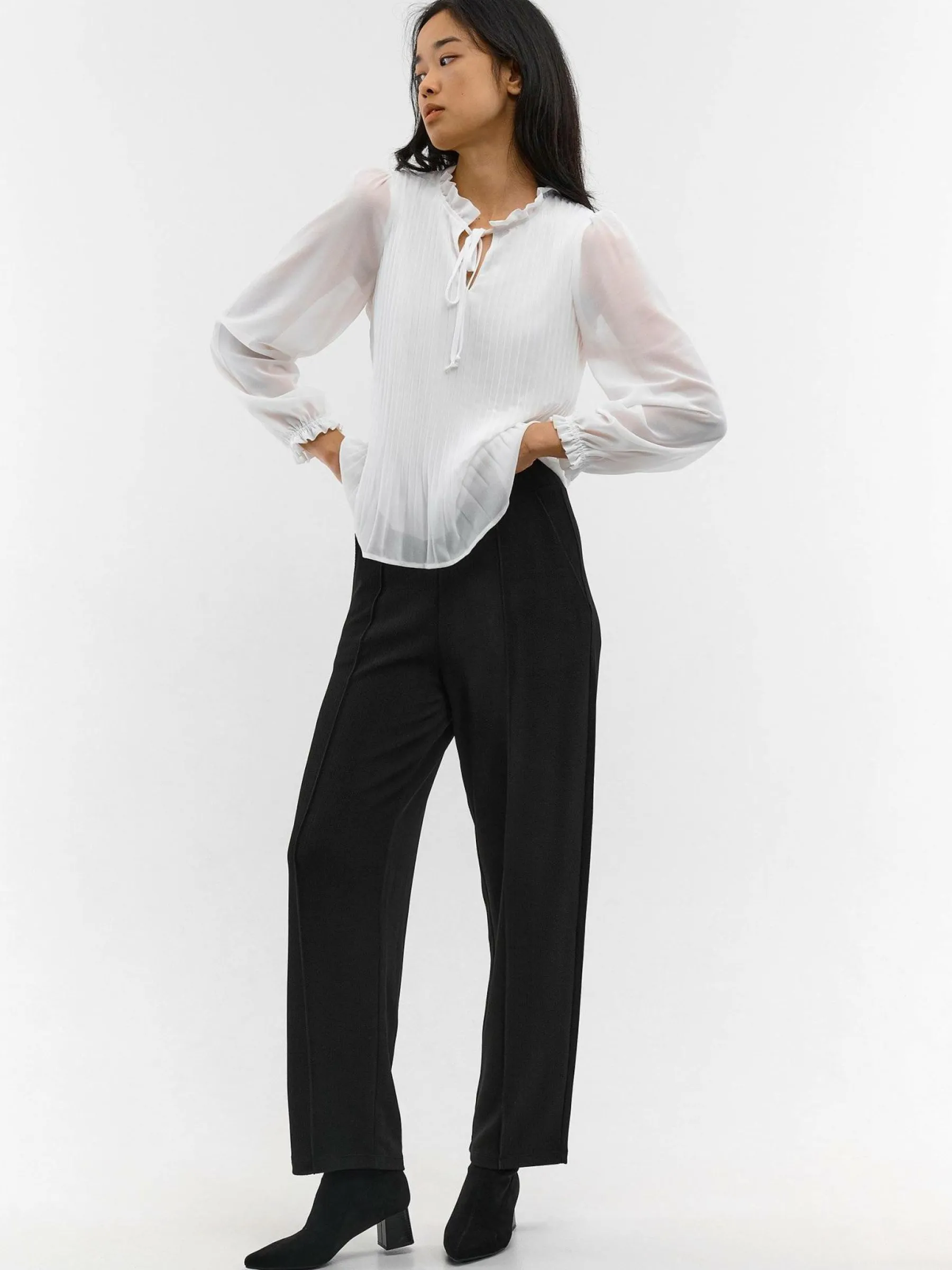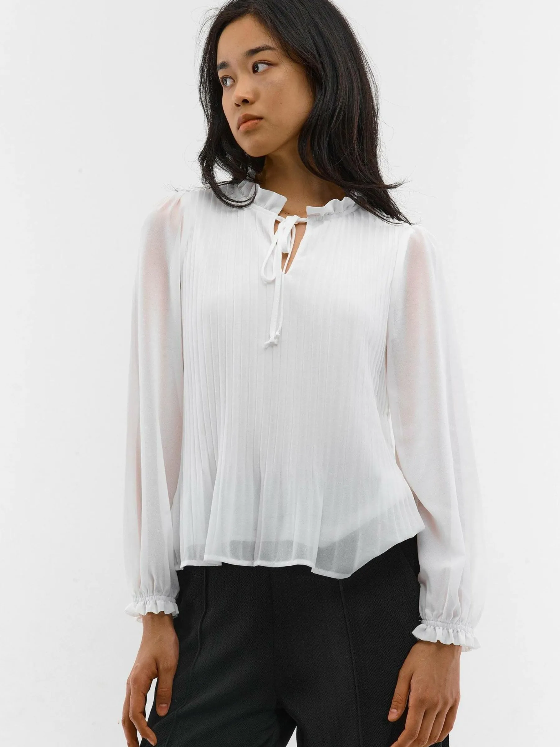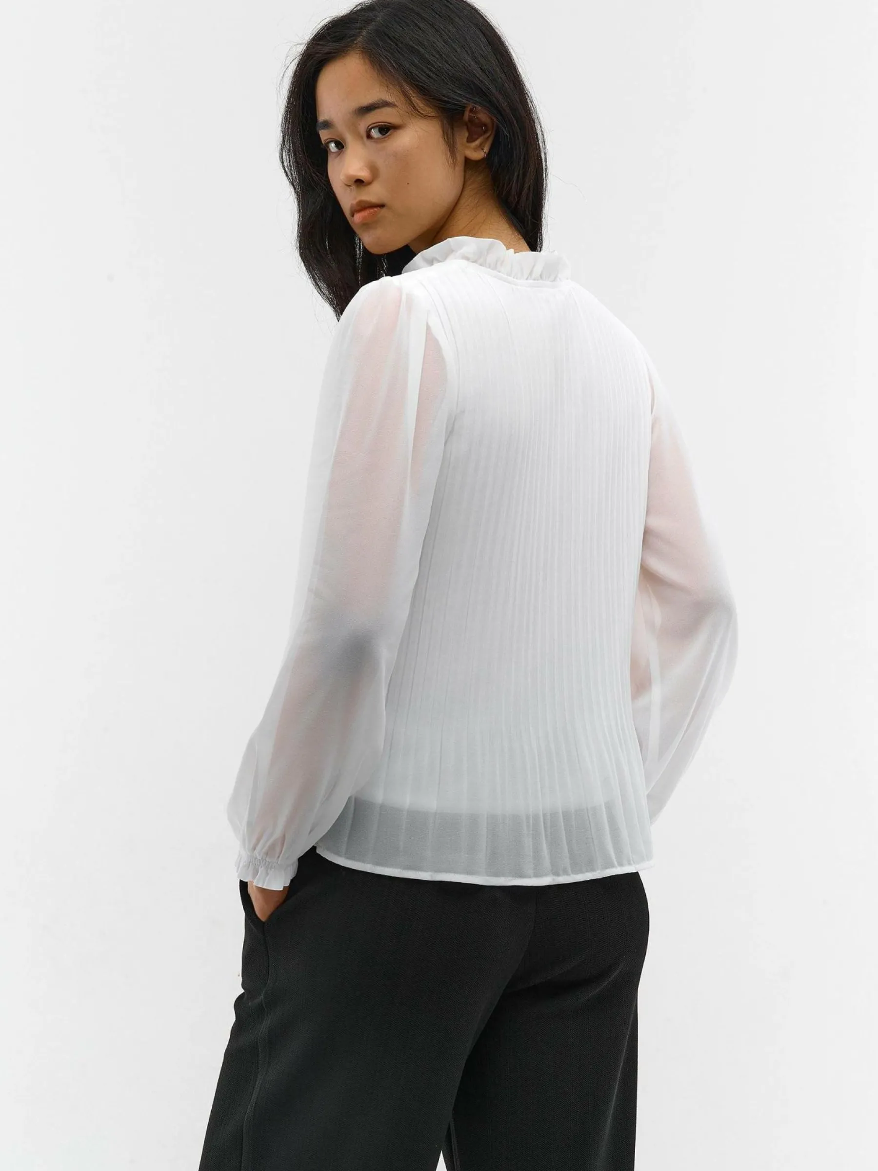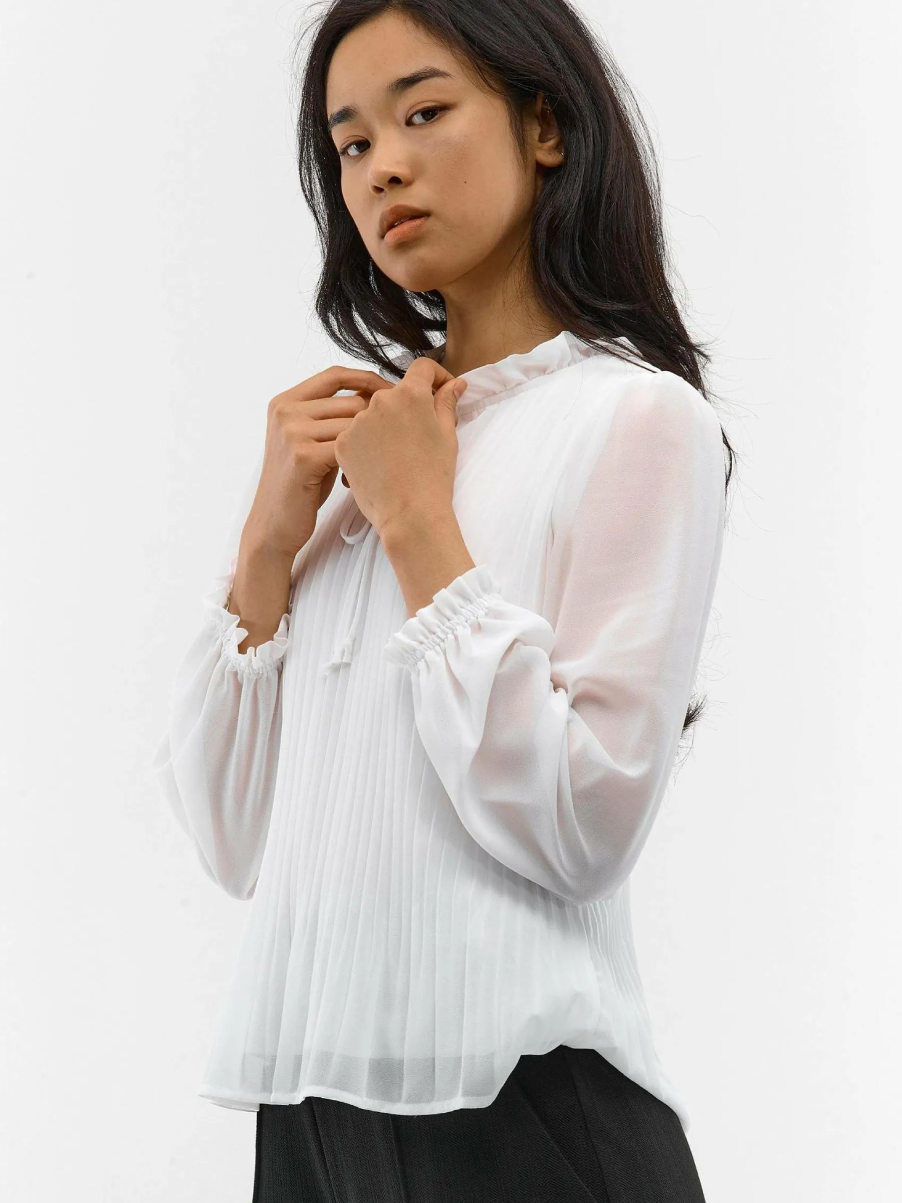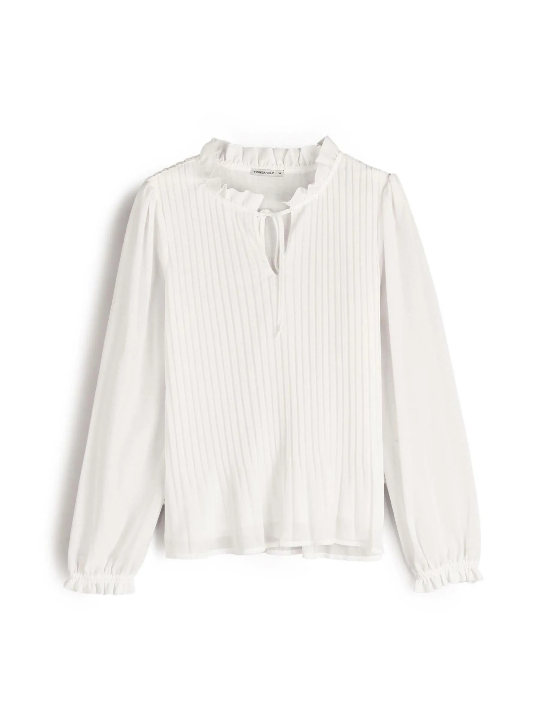 Kolor: białyKrój: plisowaneTyp: bluzkaRekaw: długi rękawDługość: krótkiPattern style: pojedynczy kolorDetal: nad…
