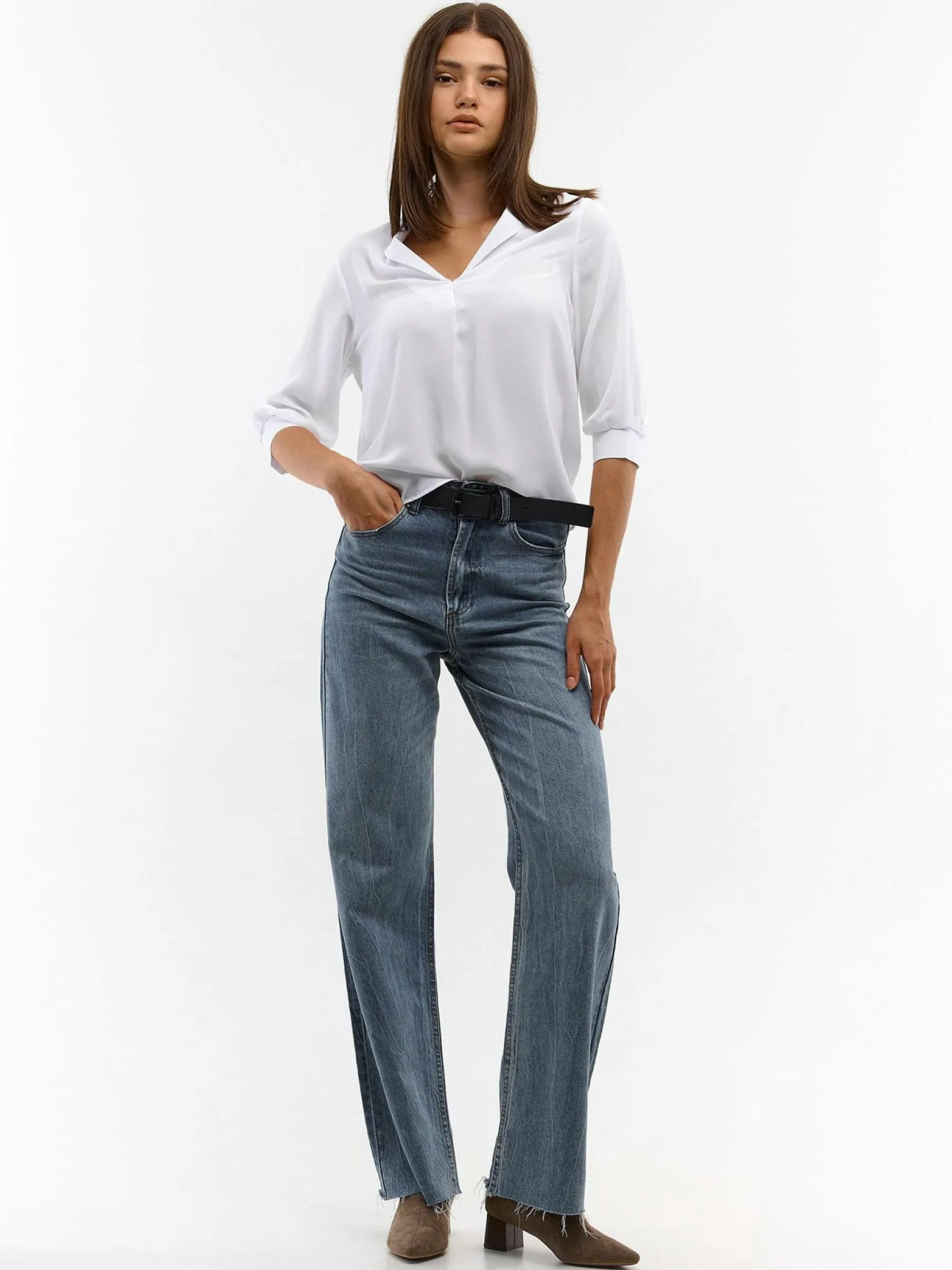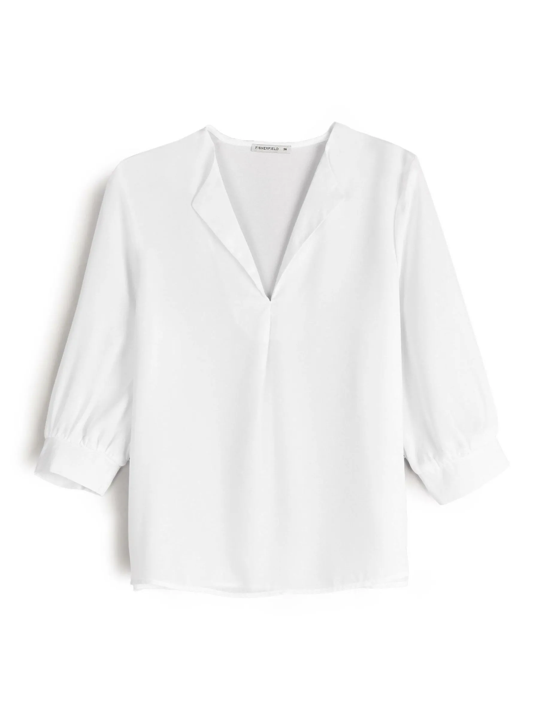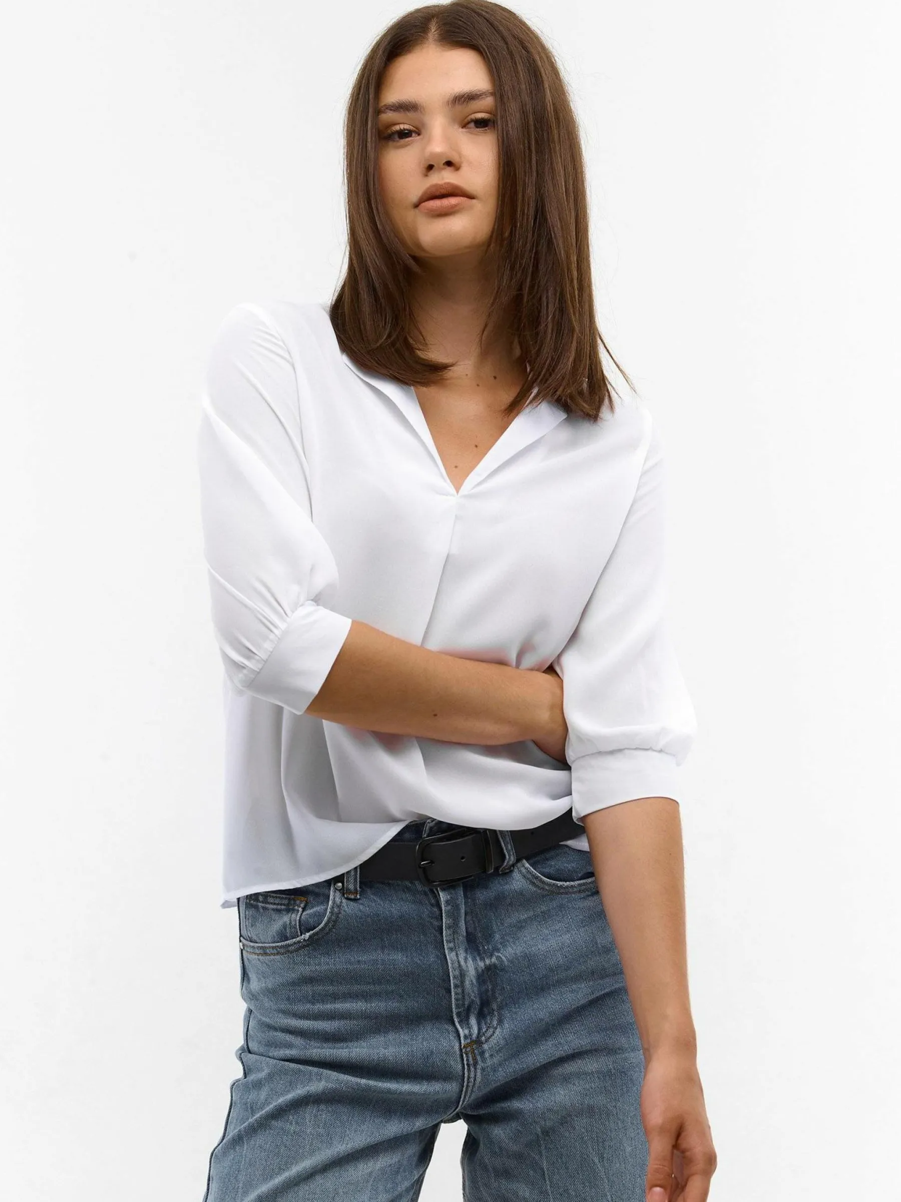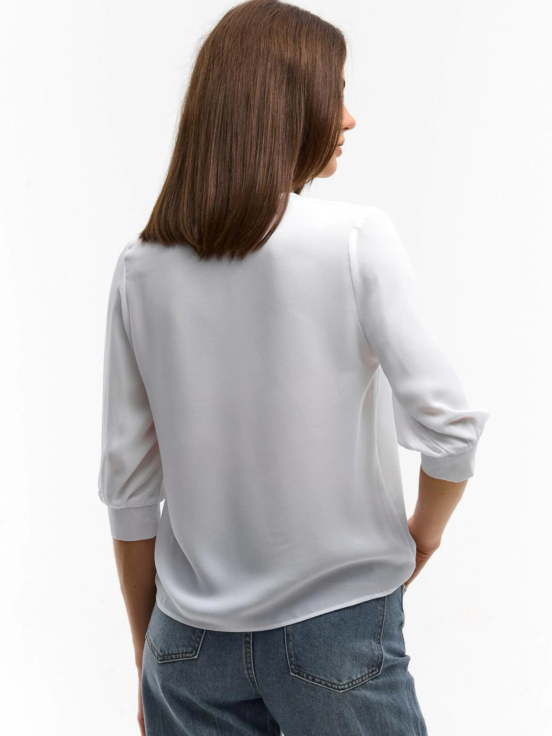 Kolor: białyKrój: regularTyp: bluzkaRekaw: rękaw 3/4Długość: krótkiPattern style: pojedynczy kolorDetal: nad gło…