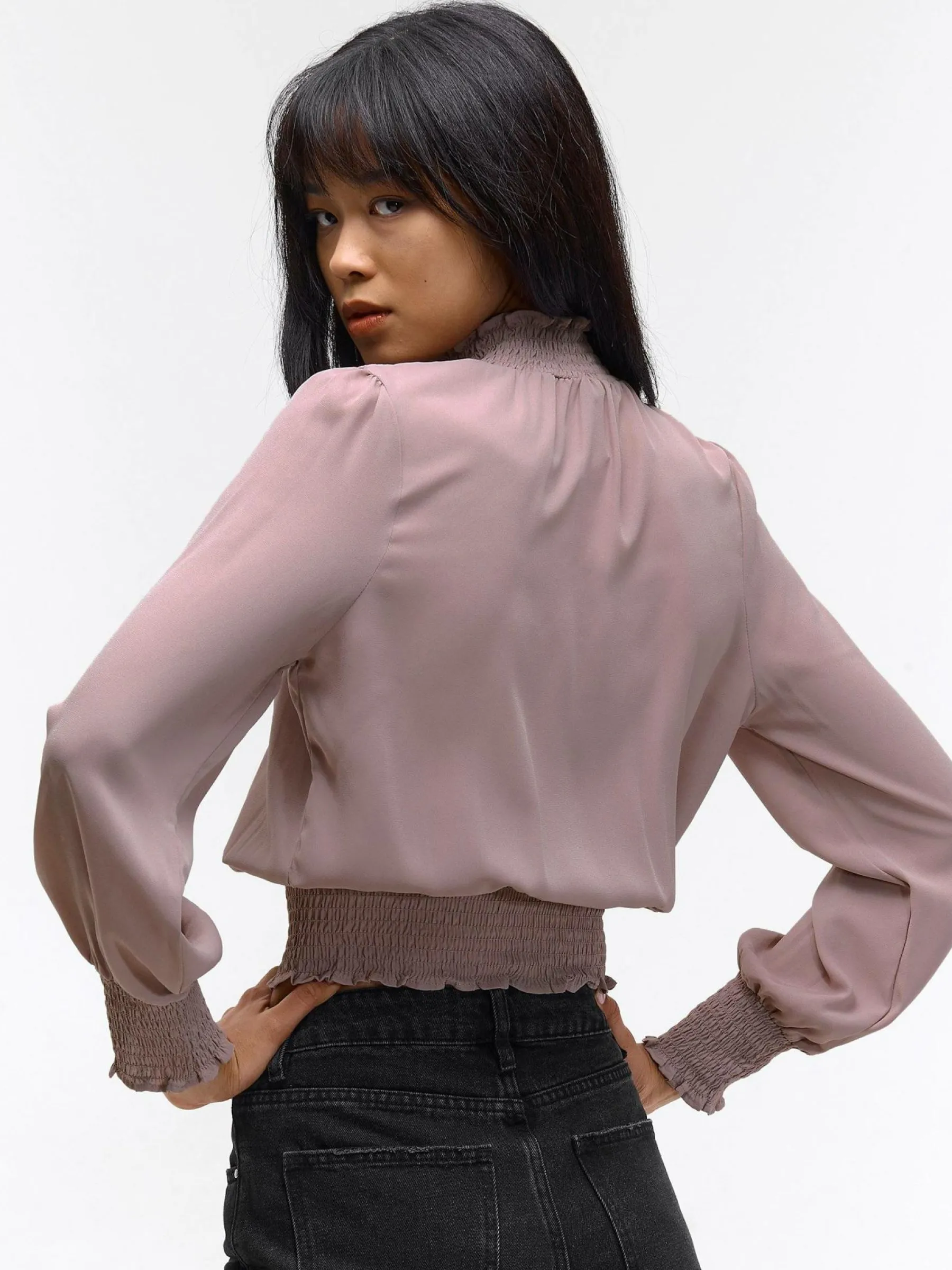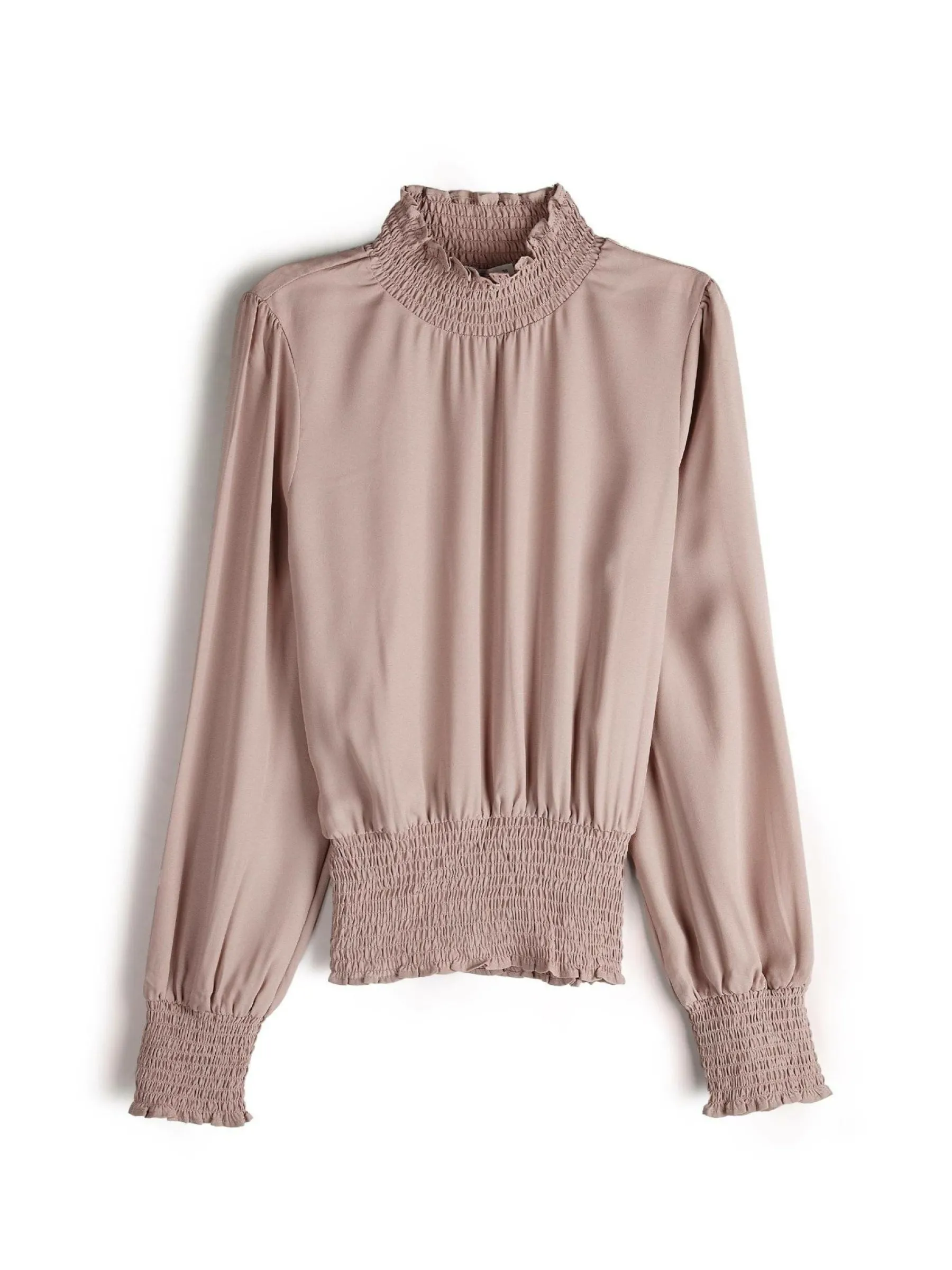 Zdjęcia z modelką mogą nie odpowiadać rzeczywistemu kolorowi produktu.Kolor: różowyKrój: z marszczeniemTyp: bluzk…