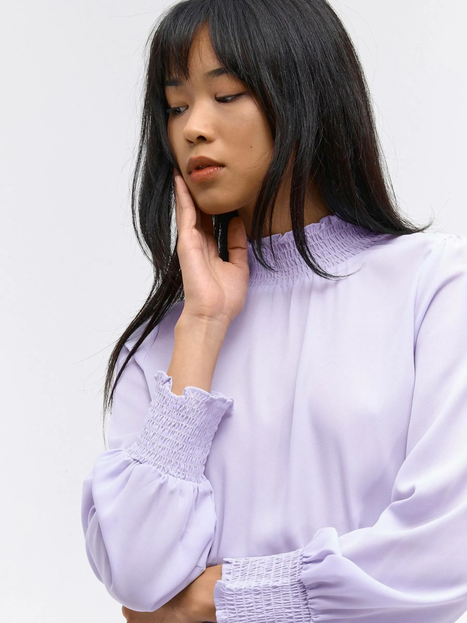 Kolor: purpurowyKrój: z marszczeniemTyp: bluzka, topRekaw: długi rękawDługość: krótkiPattern style: pojedynczy ko…
