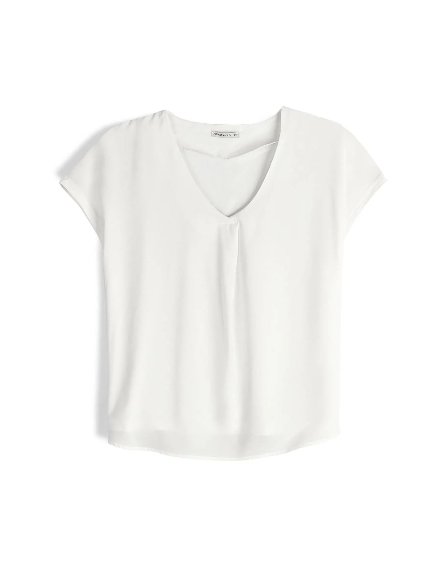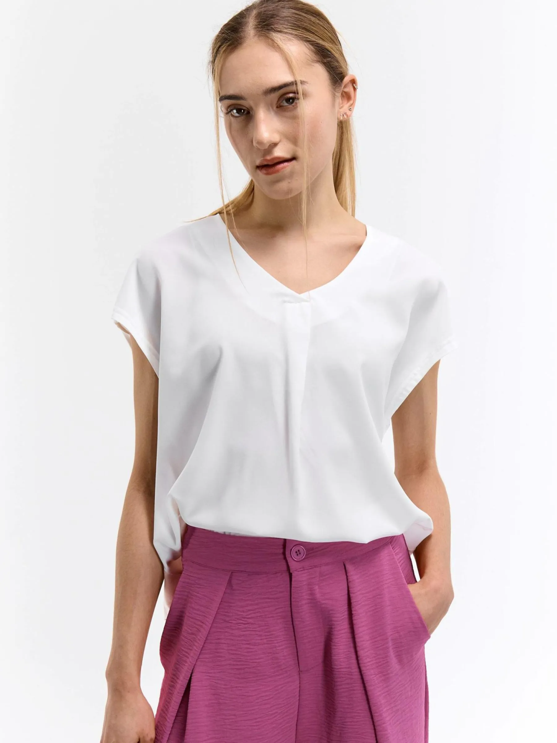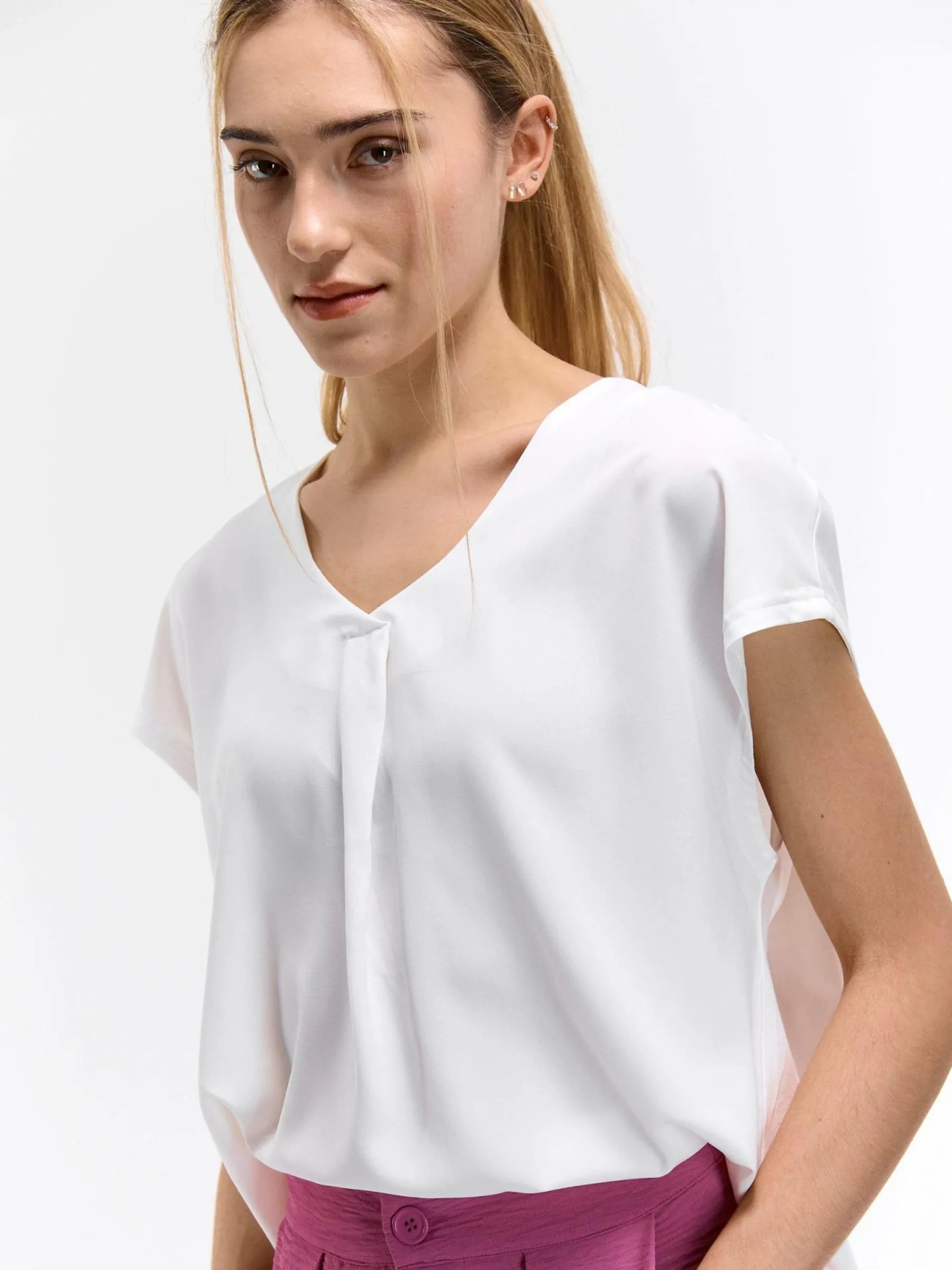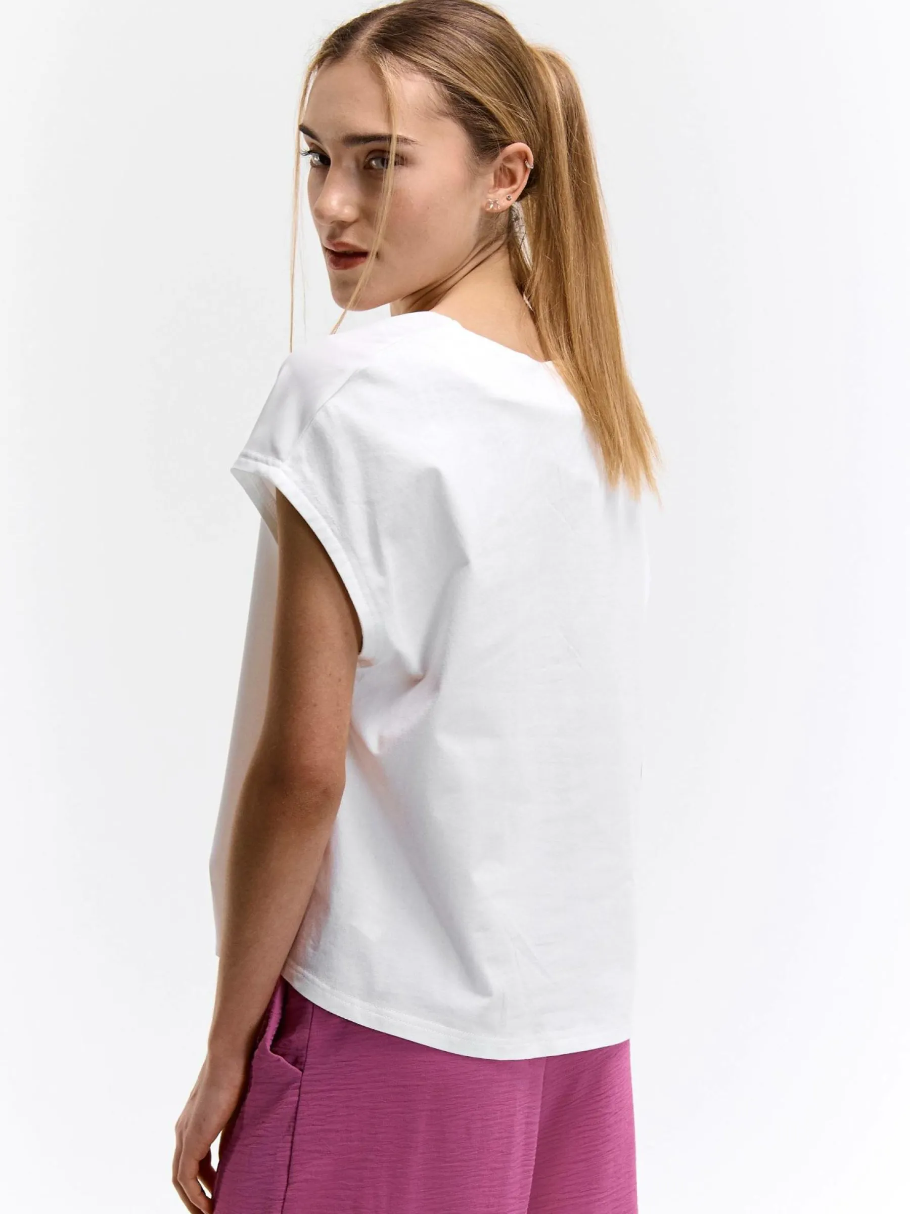 Kolor: białyKrój: regularTyp: top, bluzkaRekaw: krótki rękawDługość: krótkiPattern style: pojedynczy kolorDetal:…