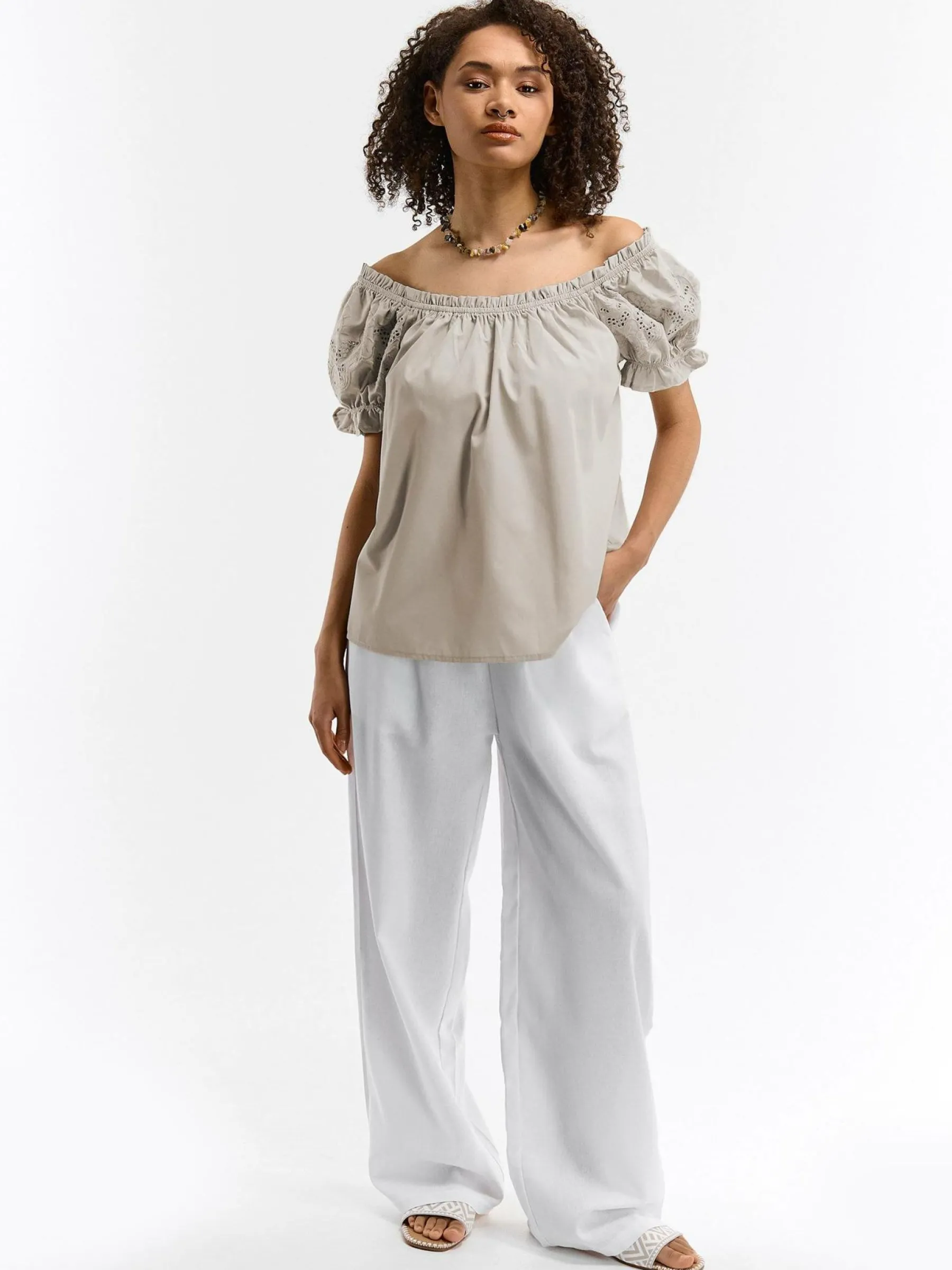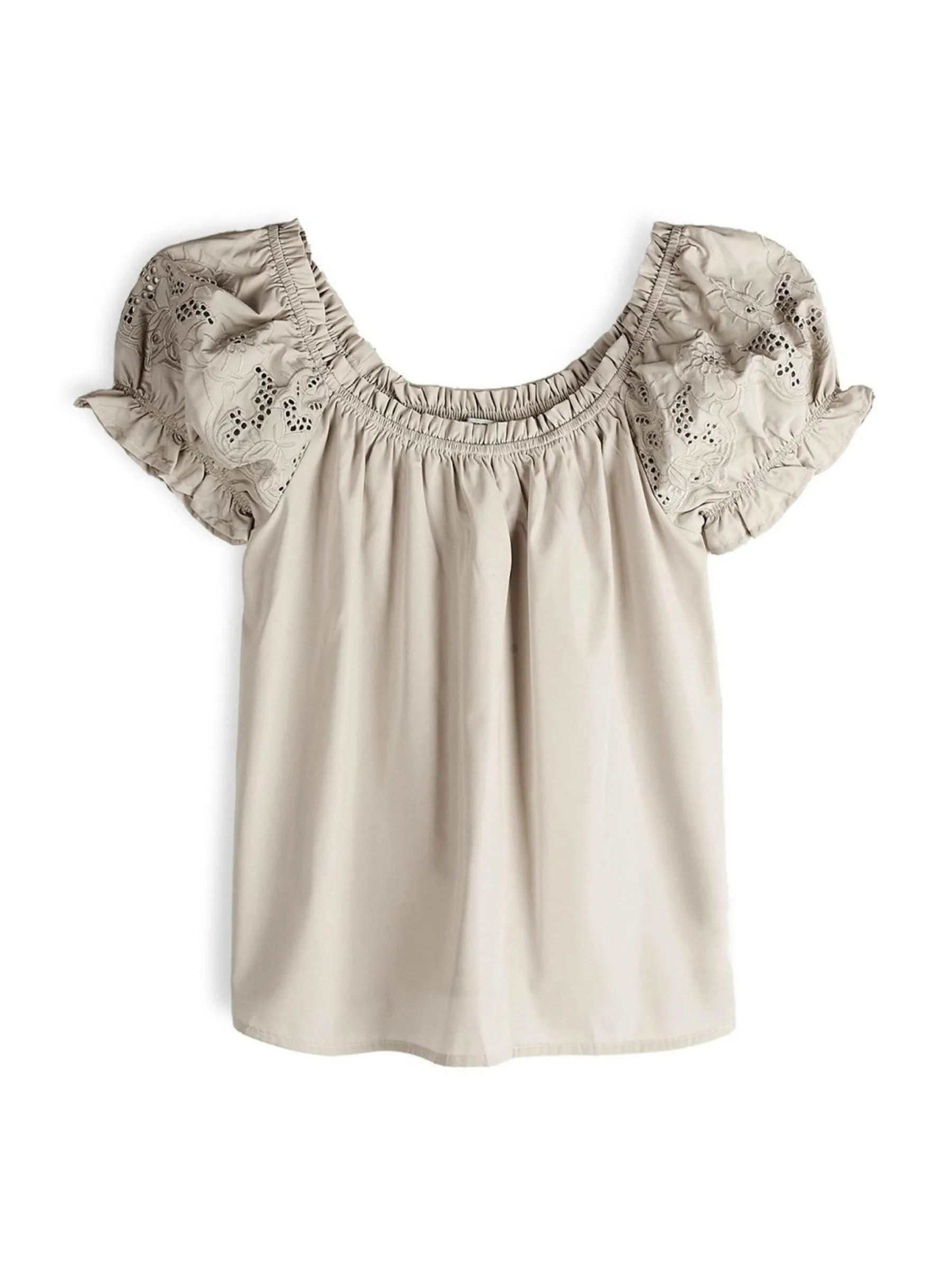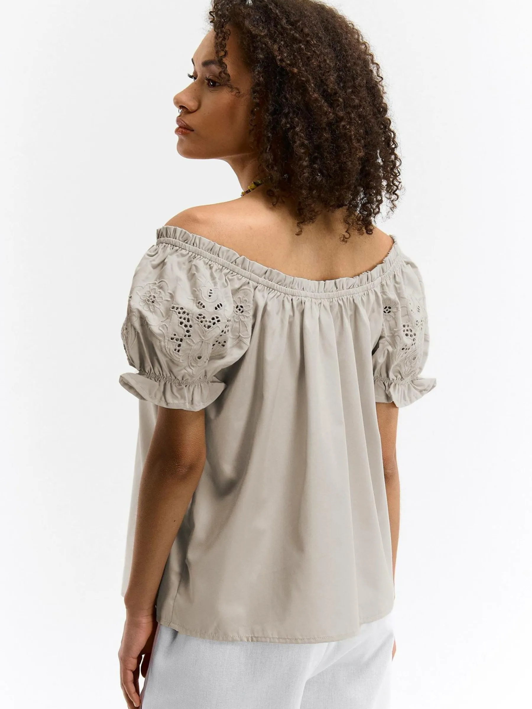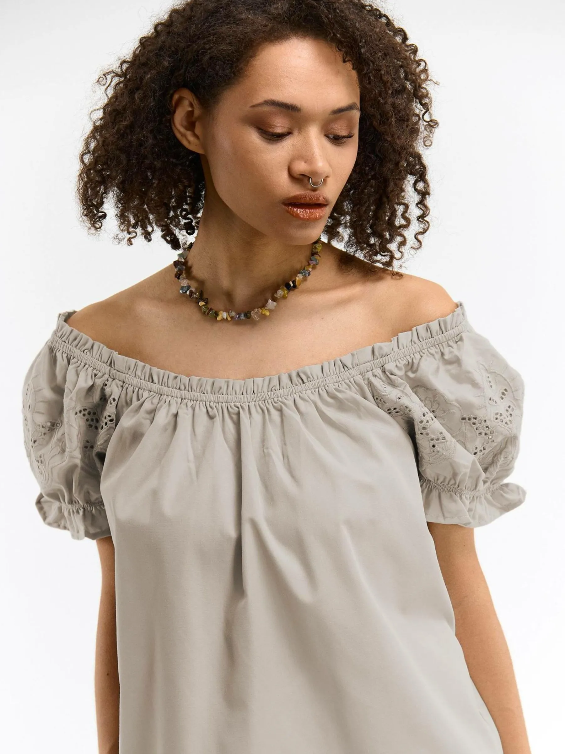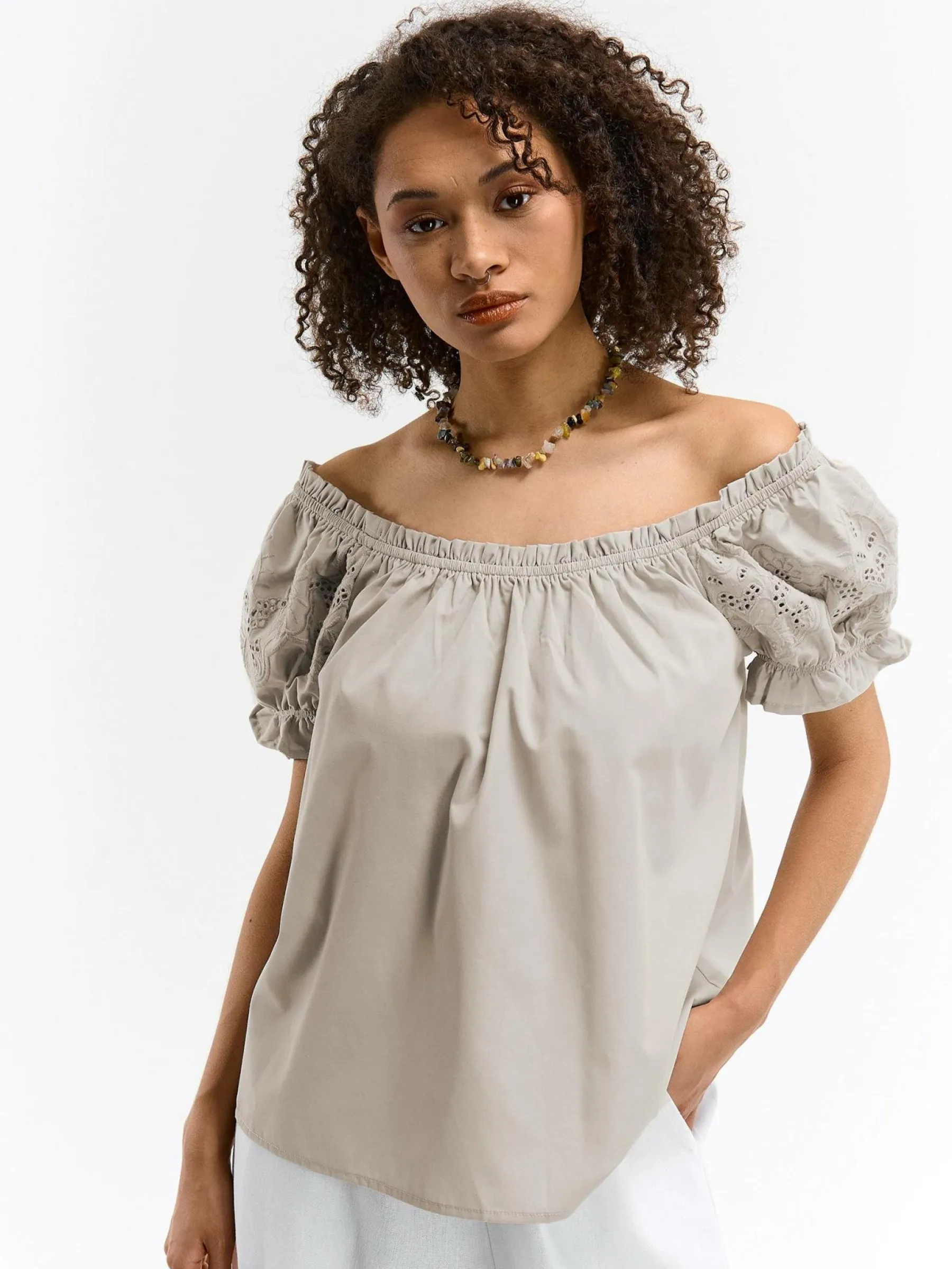 Kolor: beżowyKrój: z marszczeniemTyp: top, bluzkaRekaw: krótki rękawDługość: krótkiPattern style: pojedynczy kol…